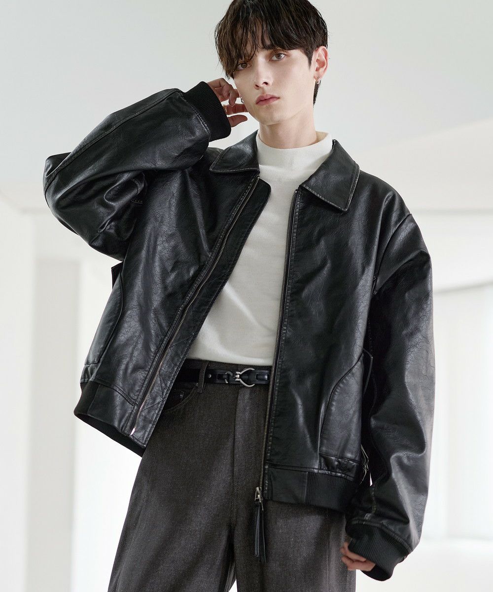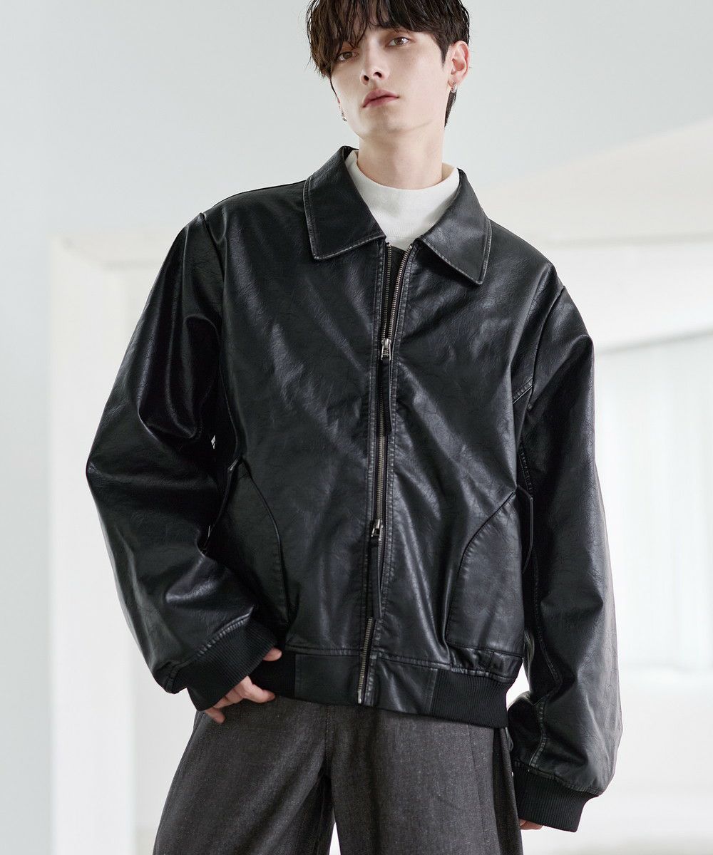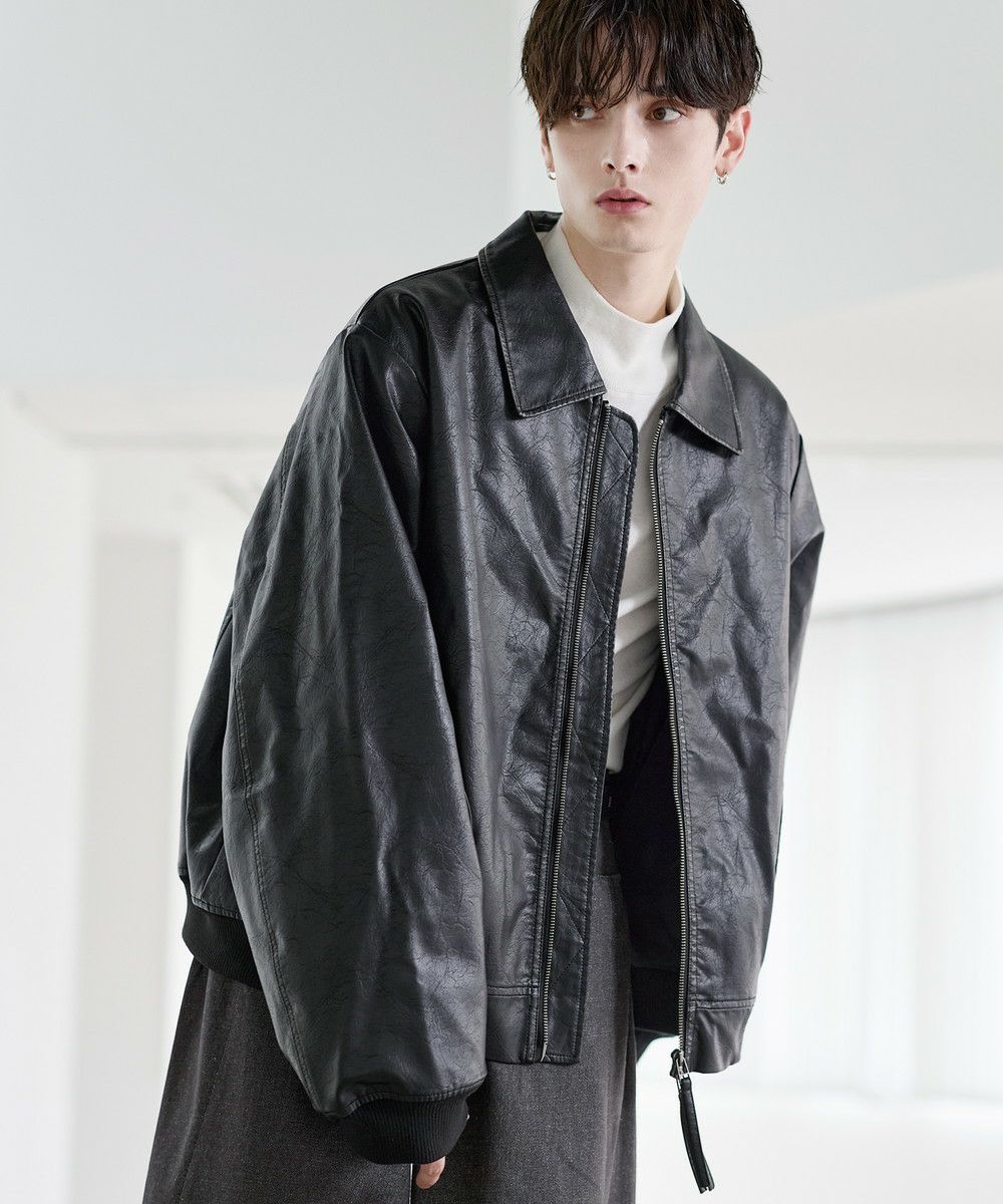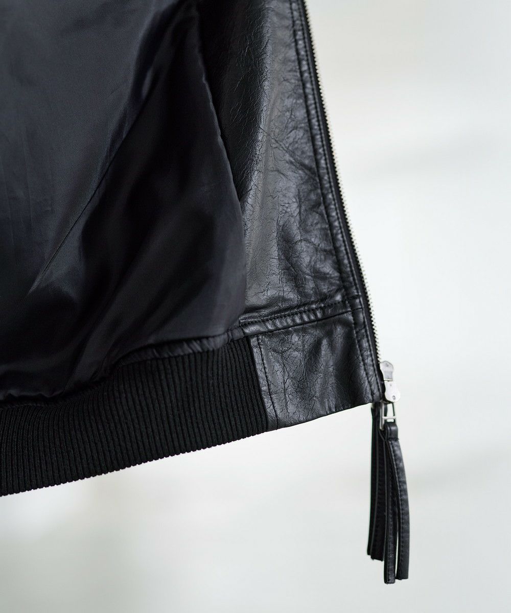 ヴィンテージ加工PU合皮ショート丈ブルゾン