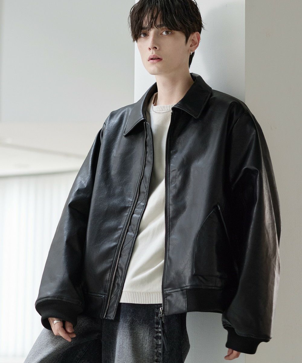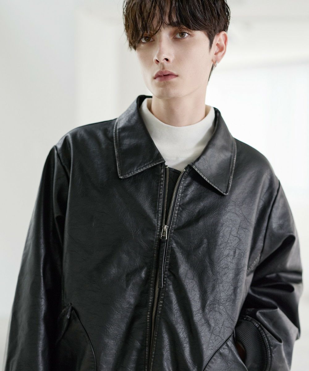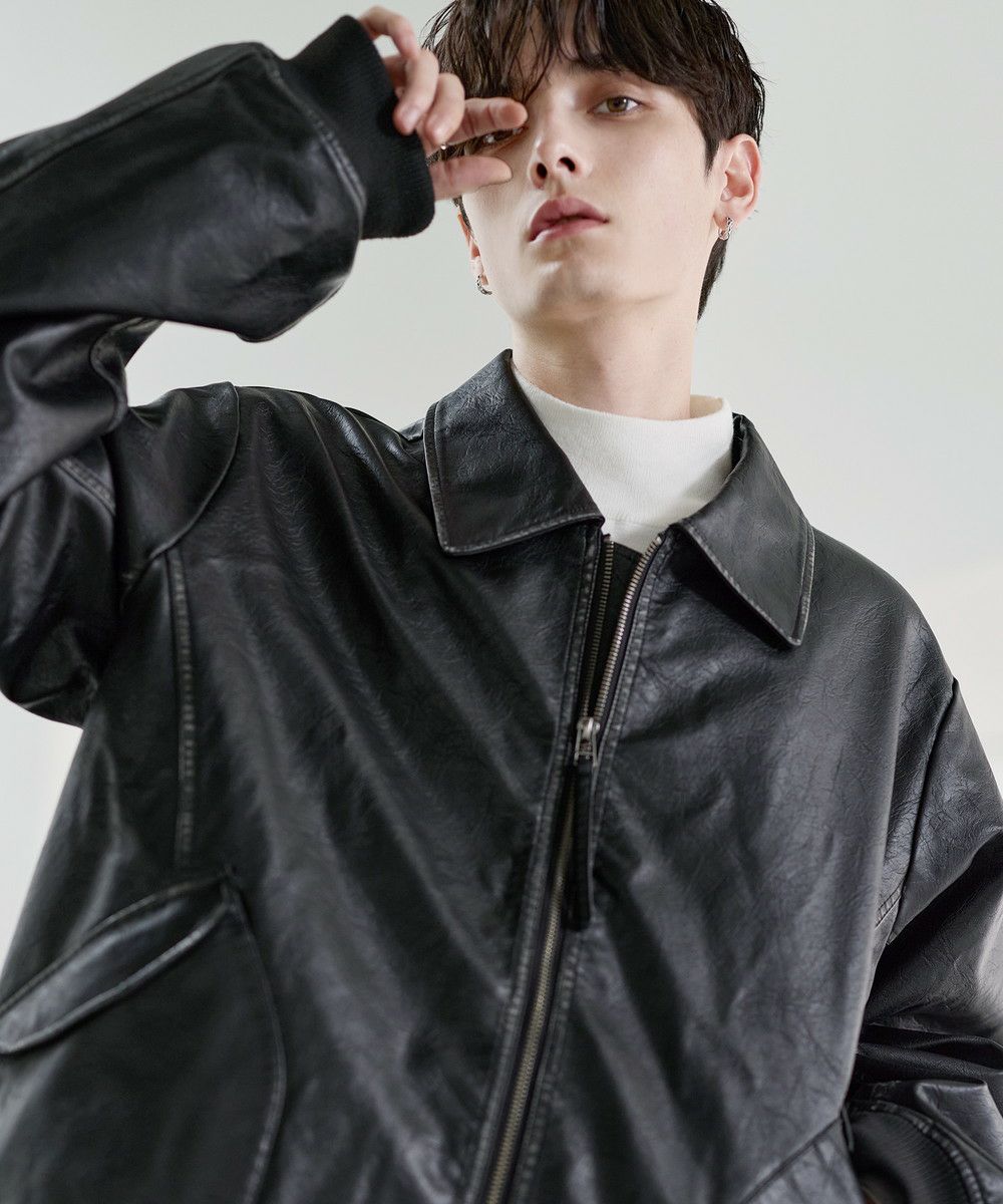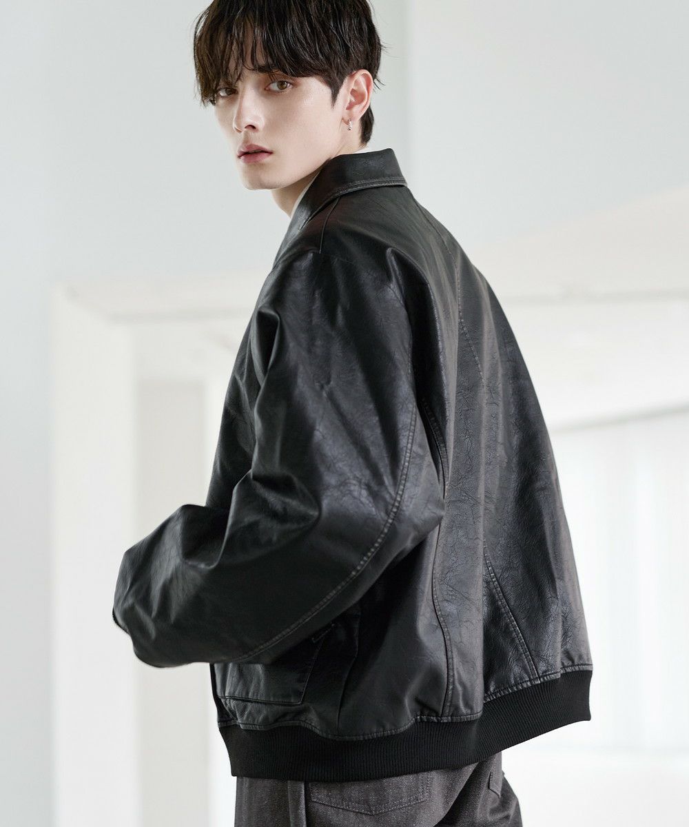 ヴィンテージ加工PU合皮ショート丈ブルゾン