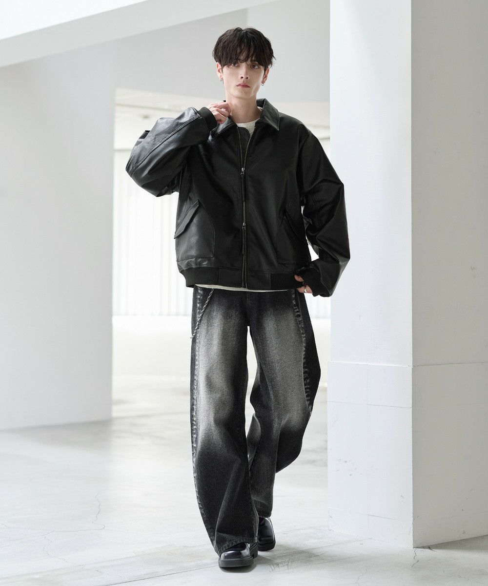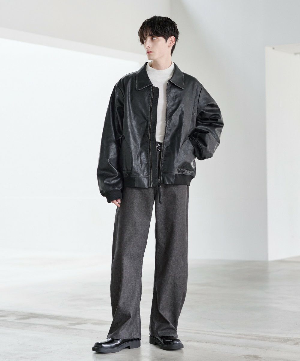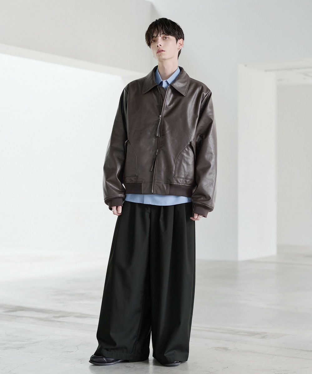 インナーには、カットソーをはじめ、シャツやニット、スウェットやパーカーなどと幅広いアイテムと合わせていただけます。リラックス感のあるサイジングのため、ボトムにはワイドシルエットのアイテムと相性抜群。ダブルジップ仕様でジップの開け具合でコーデの幅も広がります。