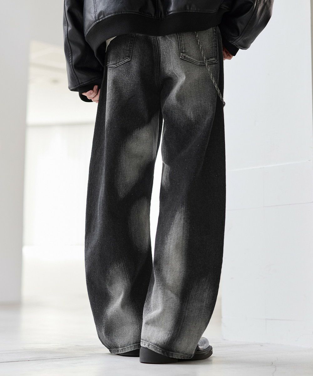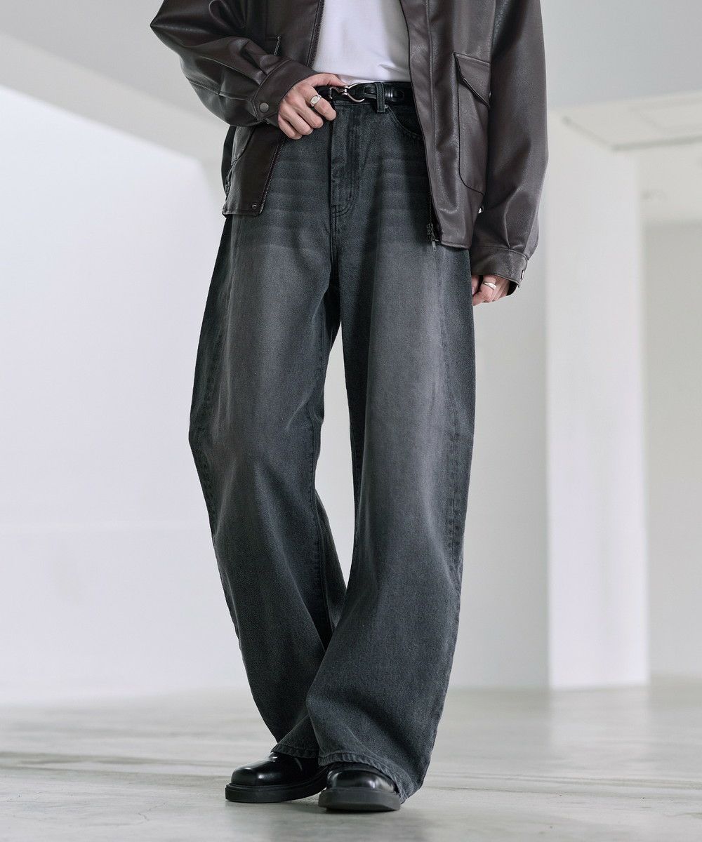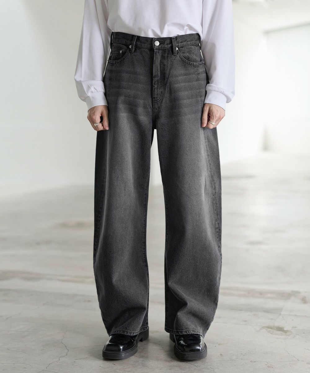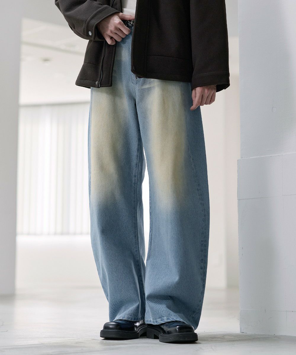 大胆なバギーシルエットに、ヴィンテージライクな加工を施したカーブデニム。腰まわりから裾にかけてゆったりと広がる立体的なラインが、抜け感と存在感を同時に演出します。ブリーチやフェード感のある色落ちが一点一点異なる表情を生み出し、穿くだけでスタイリングの主役になる一本。トレンド感のあるカーブシルエットながら、どこかクラシックな雰囲気も持ち合わせた、カジュアルからモードまで幅広く対応できます。一本持っておくとコーデに活躍すること間違いなしのアイテムです。