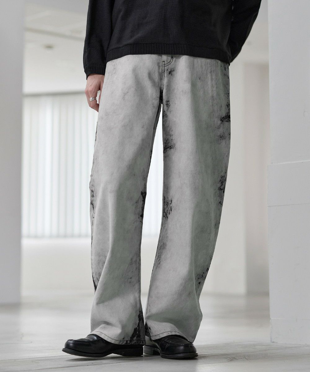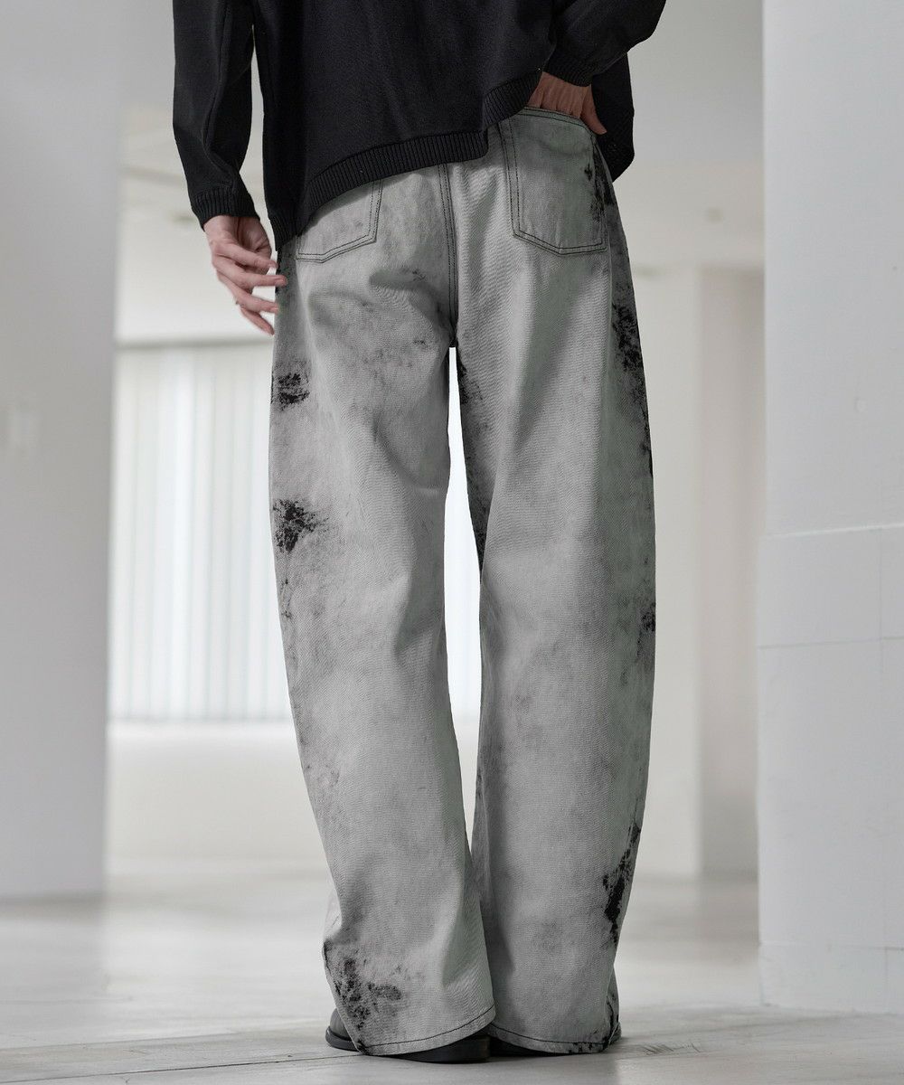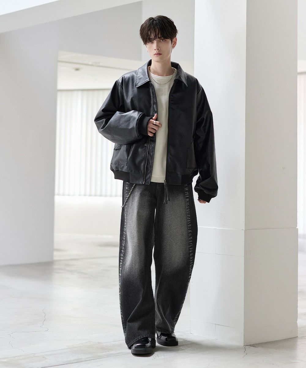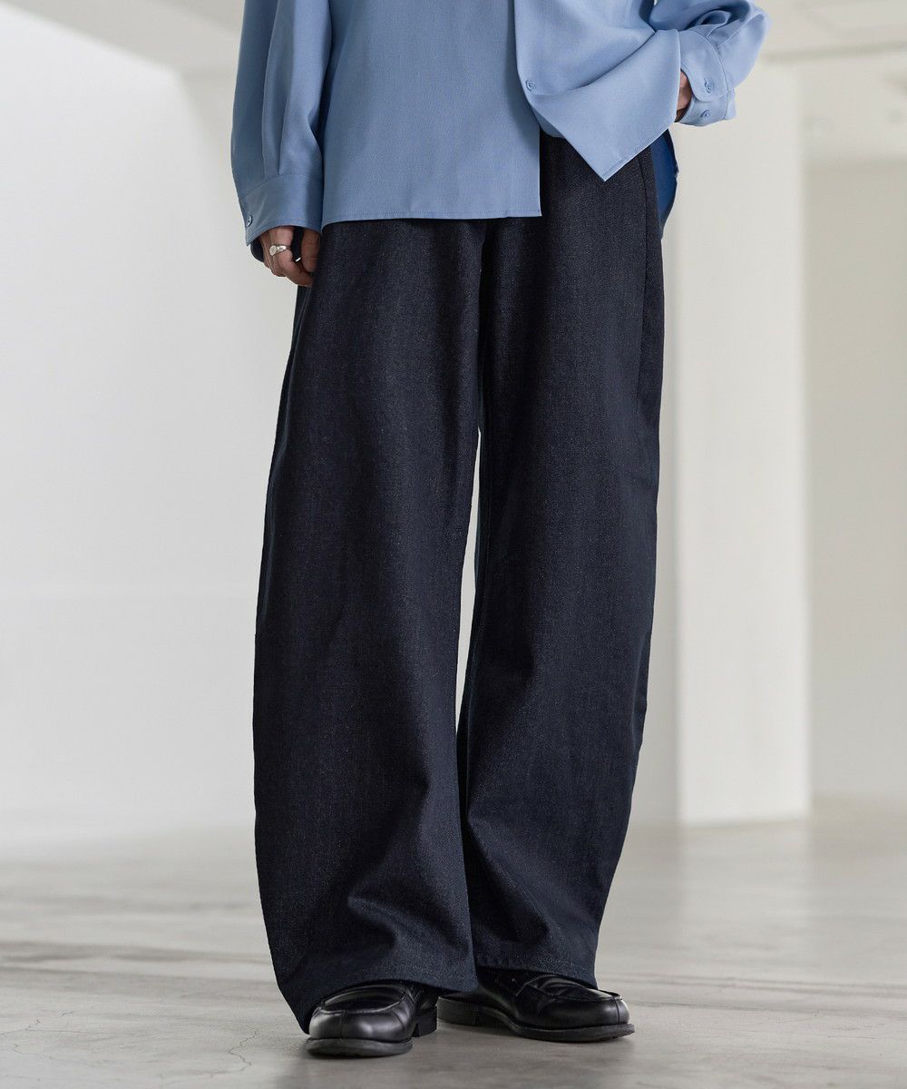 大胆なバギーシルエットに、ヴィンテージライクな加工を施したカーブデニム。腰まわりから裾にかけてゆったりと広がる立体的なラインが、抜け感と存在感を同時に演出します。ブリーチやフェード感のある色落ちが一点一点異なる表情を生み出し、穿くだけでスタイリングの主役になる一本。トレンド感のあるカーブシルエットながら、どこかクラシックな雰囲気も持ち合わせた、カジュアルからモードまで幅広く対応できます。一本持っておくとコーデに活躍すること間違いなしのアイテムです。