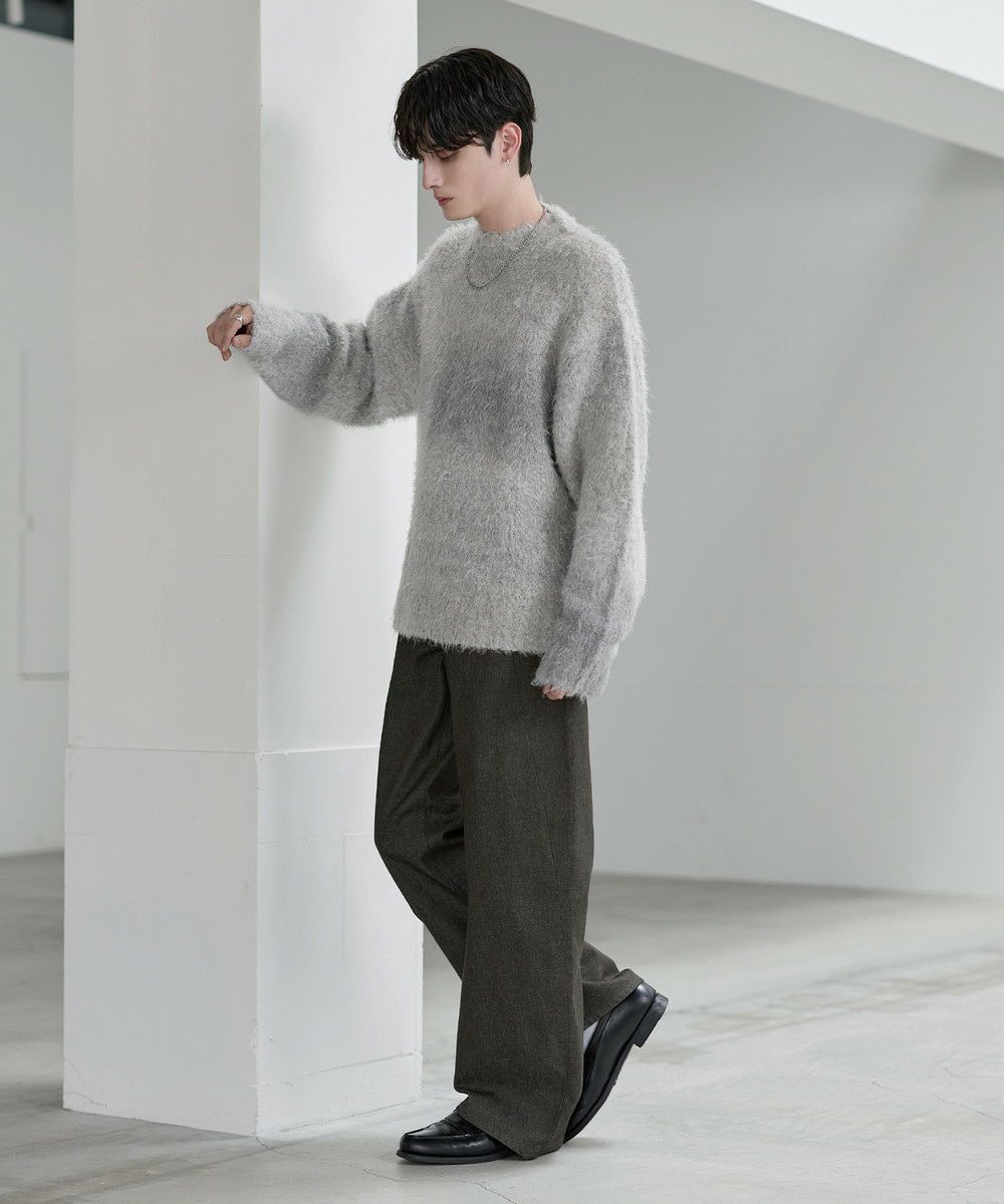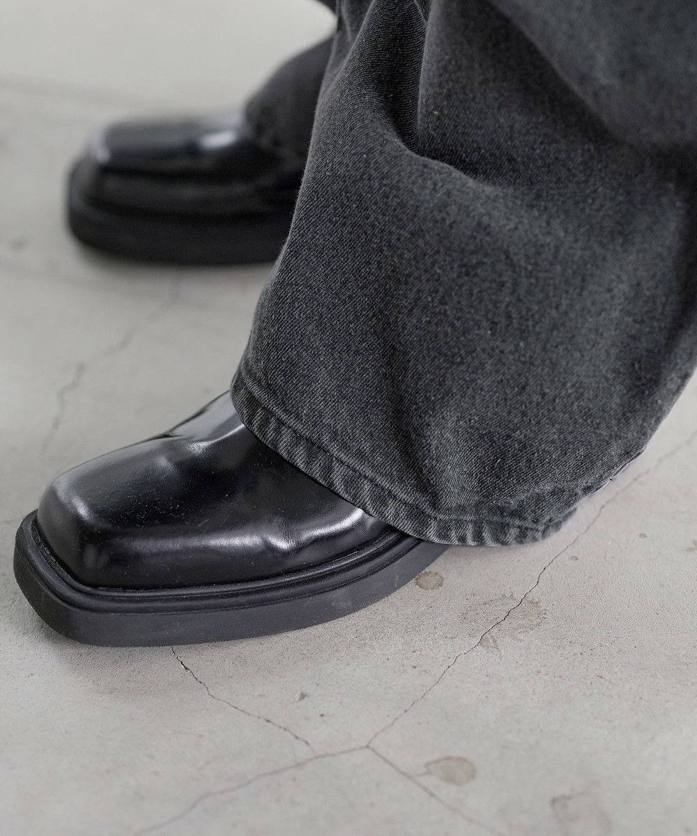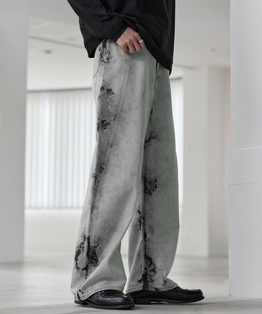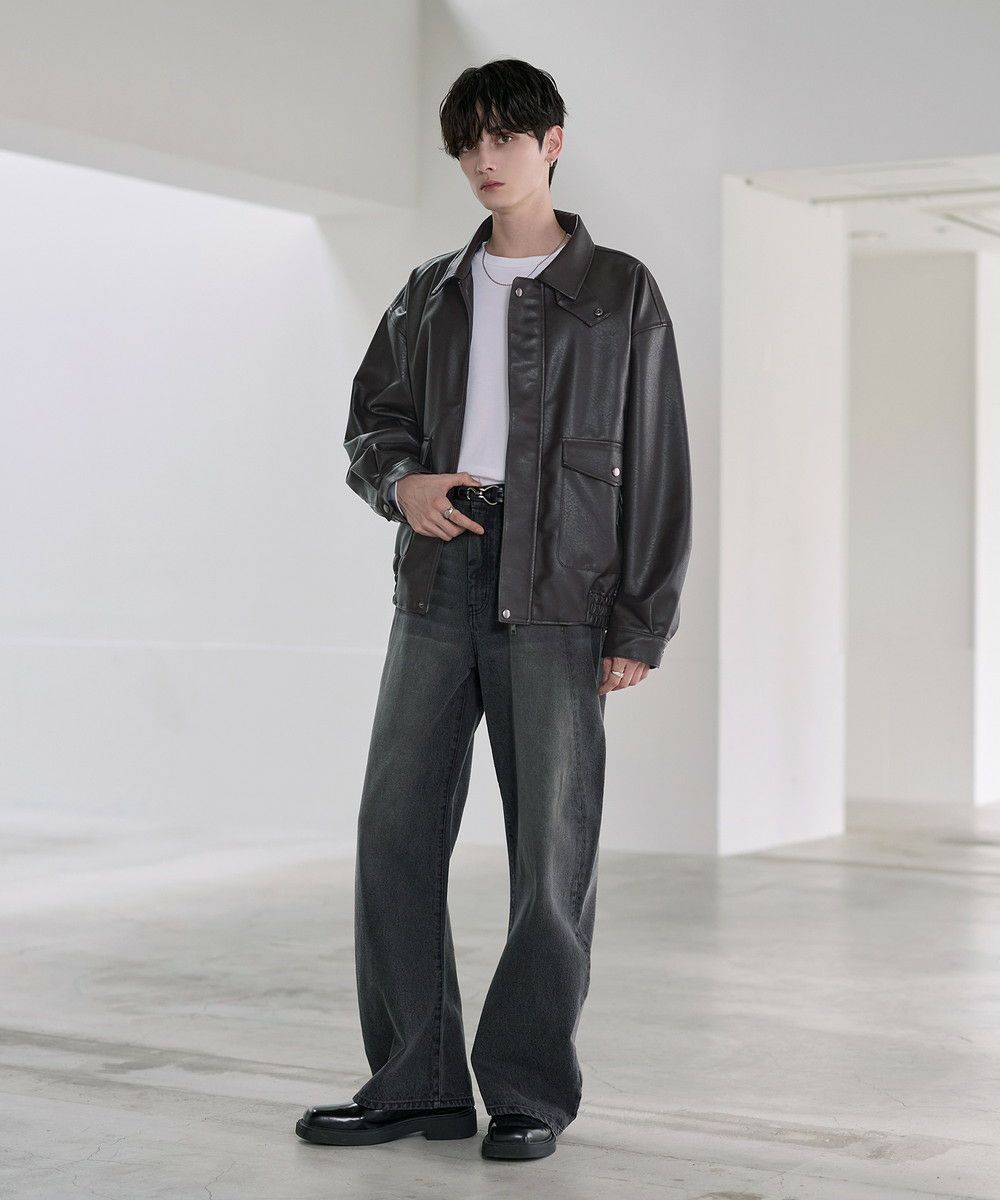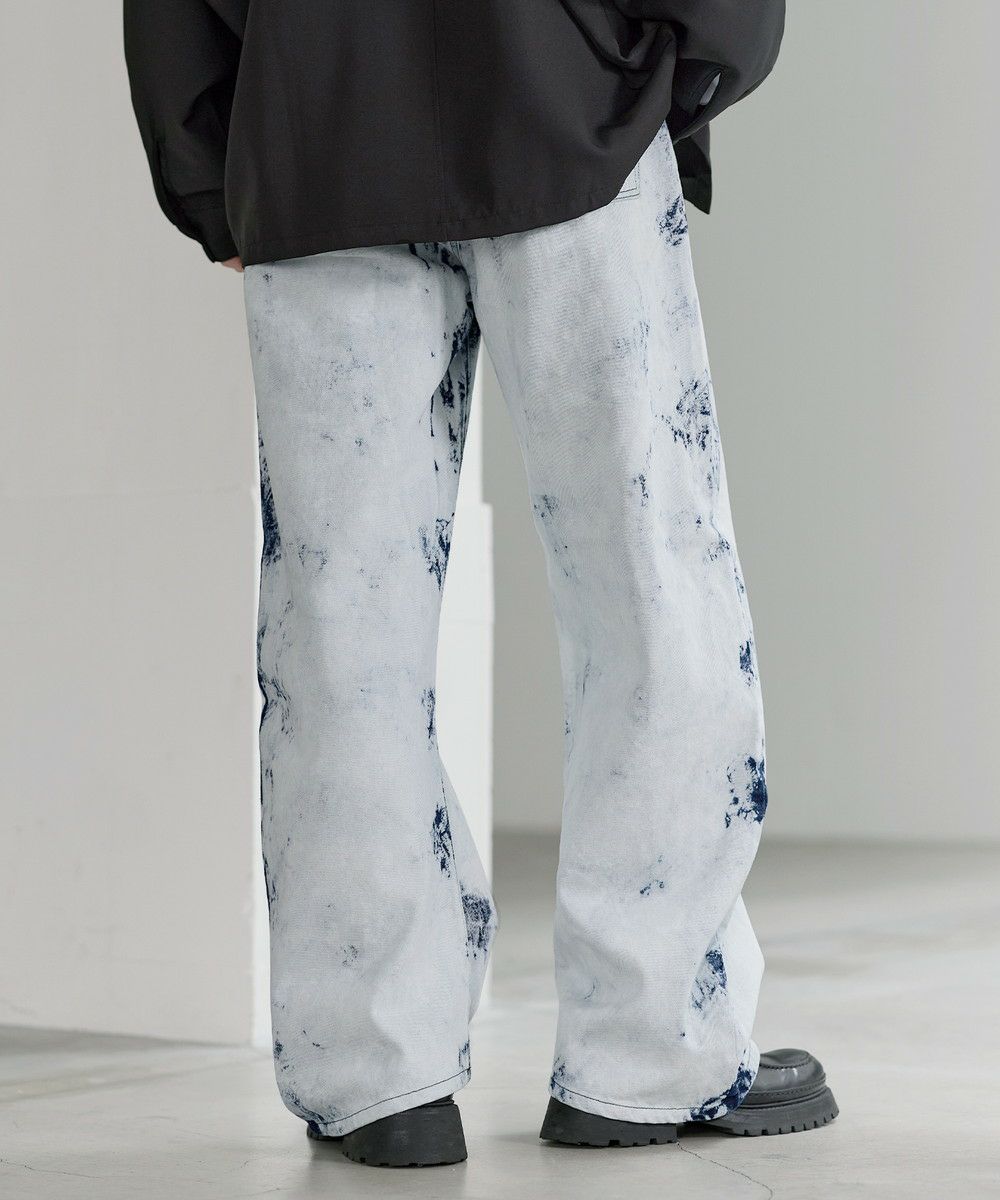 シンプルなTシャツやシャツを合わせて、デニムの存在感を際立たせたコーディネートがおすすめ。足元にはボリューム感のあるレザーシューズや厚底スニーカーを合わせることで、ワイドシルエットとのバランスがとれ、全体にまとまりのあるスタイルに仕上がります。個性的なシルエットと加工感を活かしつつ、モノトーンからカラーアイテムまで幅広いトップスと好相性の一本です。