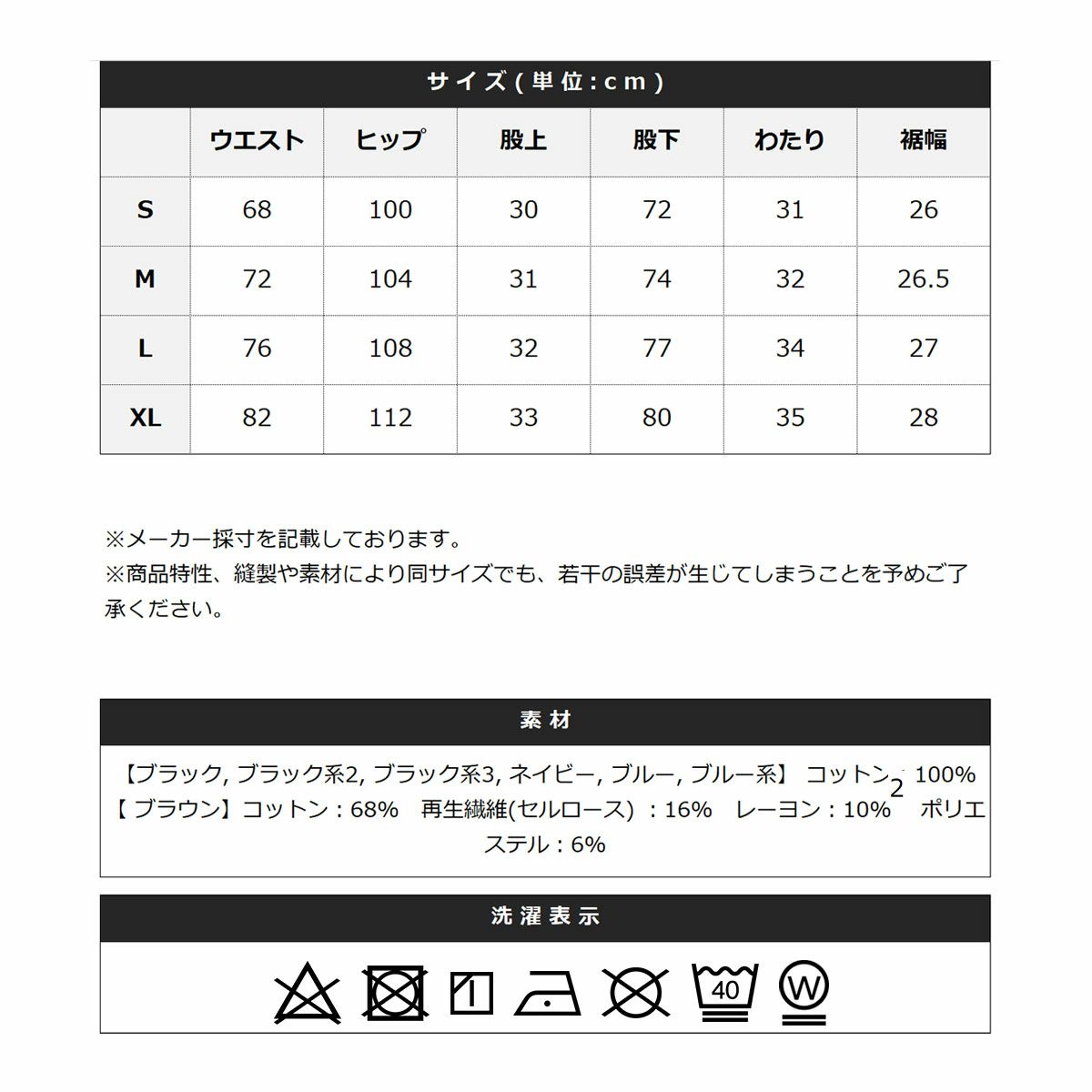 ブラウン以外はコットン100%の肌馴染みの良い素材を使用しており、柔らかな穿き心地が魅力です。穿き込むほどに身体のラインに沿って馴染み、自分だけの風合いやシルエットへと育っていくのも楽しみのひとつ。シーズンを問わず快適に着用でき、デイリーに活躍してくれる一本です。