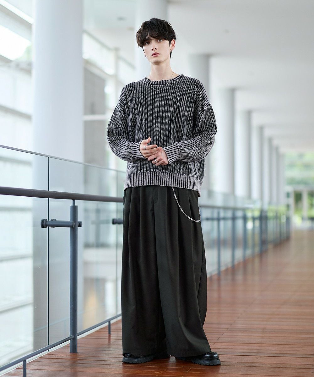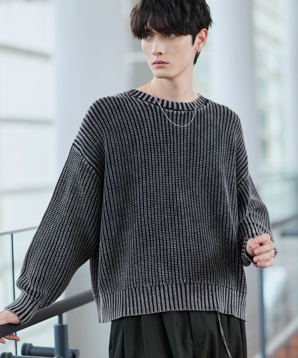ピグメント加工がヴィンテージ感を醸す畦編みニット。ゆったりとした身幅とドロップショルダーがこなれた印象を生み出します。シンプルなクルーネックデザインでクセが無く、様々なアイテムと合わせて着用可能。着丈を短めに設定し、トレンドライクなシルエットに仕上げました。カラーは落ち着いたくすみカラーのブラック、グレー、ブルー、ワインの4色展開。表情のある生地感のため、1枚でもお洒落に着こなしていただけます。