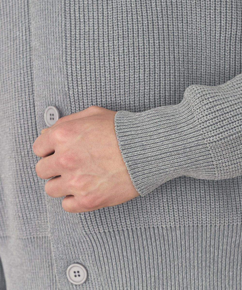 スタンダードなVネックとシンプルなデザインで、着回し力抜群のカーディガン。ワンポイントのブランドロゴ刺繍が、さりげないアクセントに。ゆったりとしたルーズシルエットとドロップショルダーで抜け感たっぷりに着こなせます。身幅と腕ぐりのサイズを大きく取っているため、動きやすくストレスを感じません。同色のボタンは主張しすぎることがなく、洗練された印象を与えます。ボタンを閉じて着るのはもちろん、開けてラフに羽織るのもおすすめ。着丈は程よい長さのため、落ち着いた大人のカジュアルコーデにぴったりです。