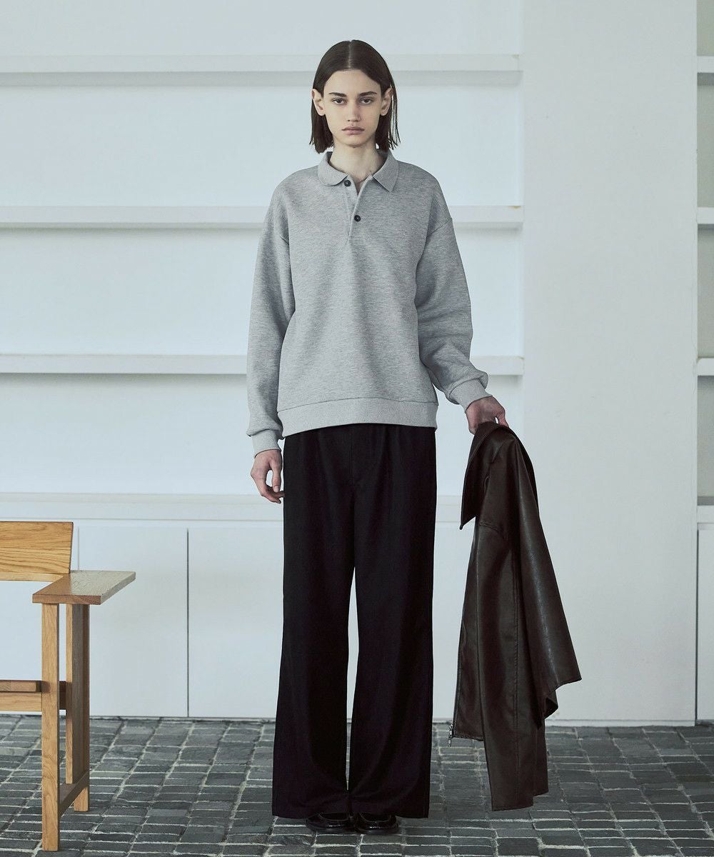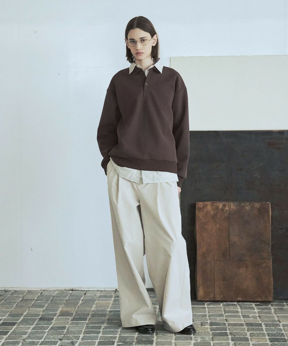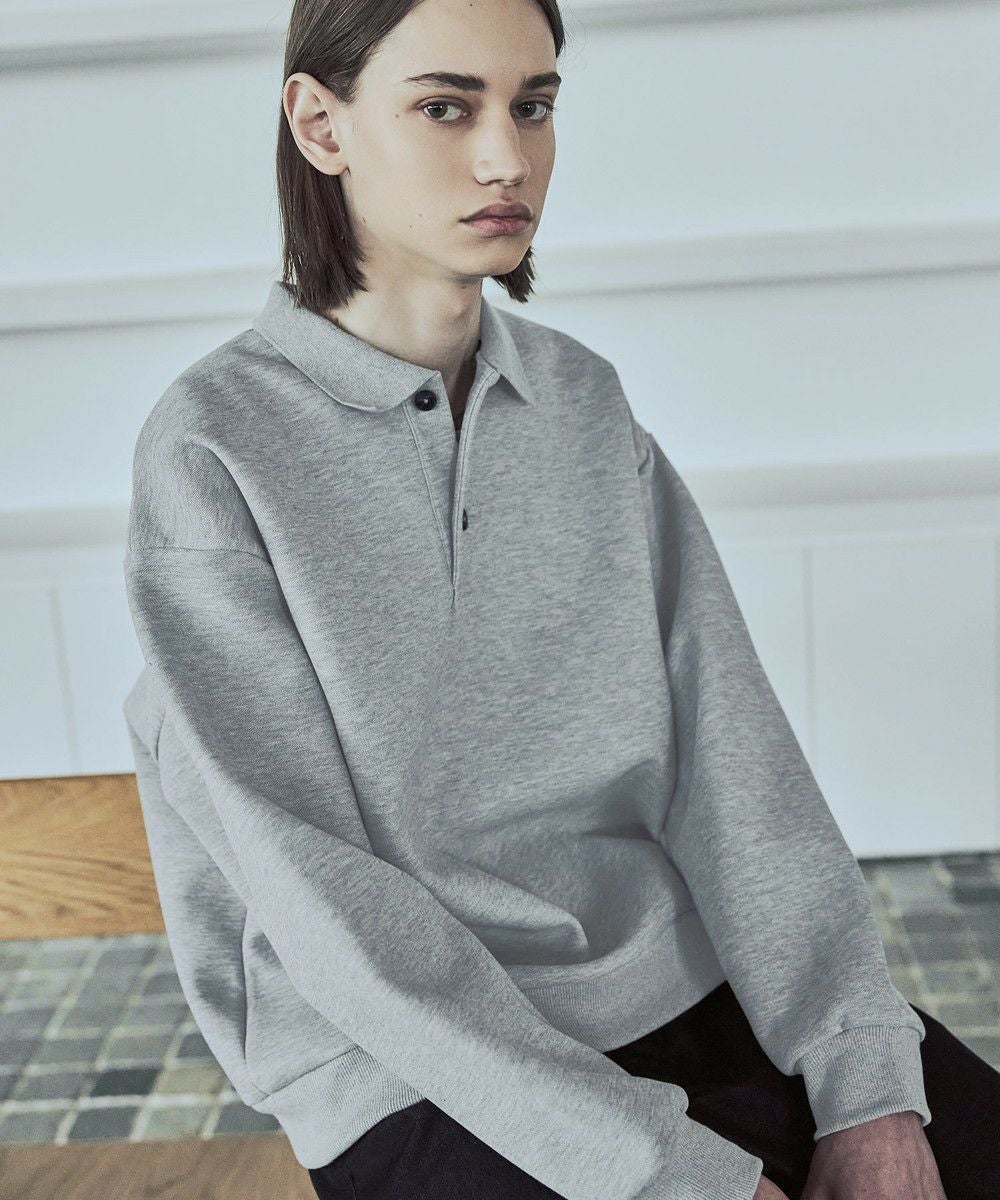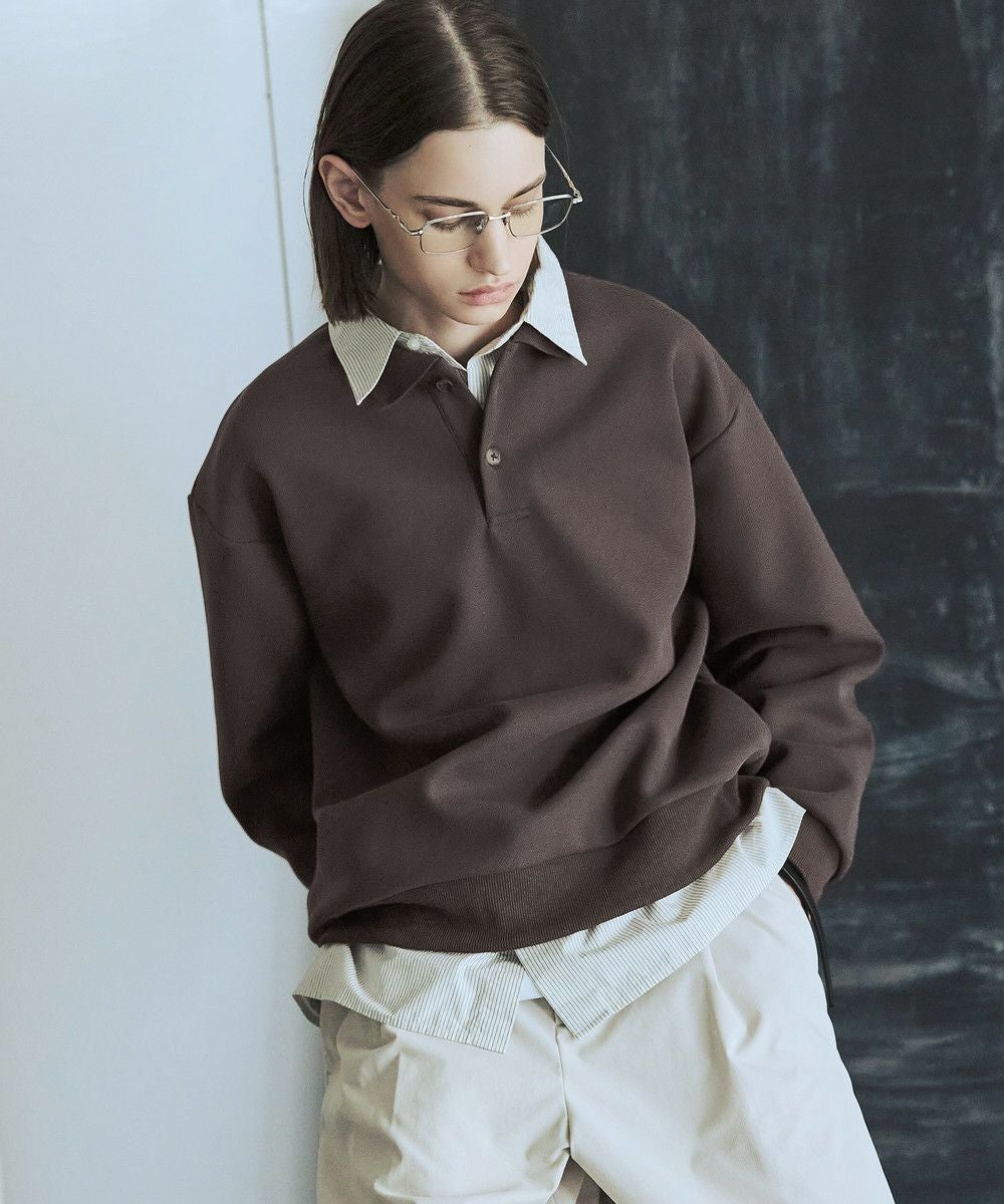 抜け感のある襟元とリラクシーなシルエットが今っぽいスウェット長袖ポロシャツ。身幅と袖幅にゆとりを持たせたシルエットで、程よく力の抜けた大人の雰囲気を演出します。厚すぎず薄すぎずな程よい生地感のため、春秋冬とロングシーズンご着用いただけるのも魅力です。シンプルなのでスタイリングに取り入れやすく、持っていると何かと便利なトップスとなっています。