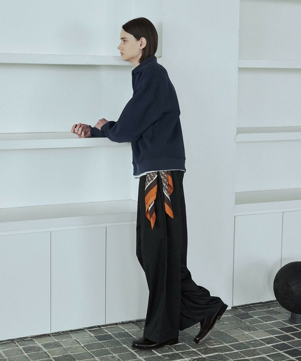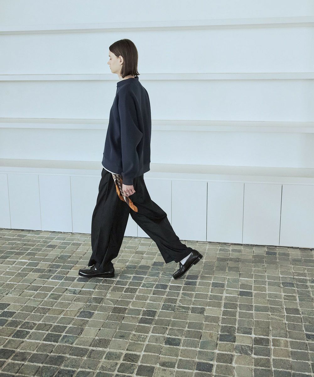 ゆとりのあるサイジングなので、インナーにシャツやカットソーをレイヤードさせるコーディネートがオススメ。ワイドパンツやスラックスと合わせれば、リラックス感あふれるスタイリングが出来上がります。足元はレザーシューズからスニーカーまで幅広く対応します。