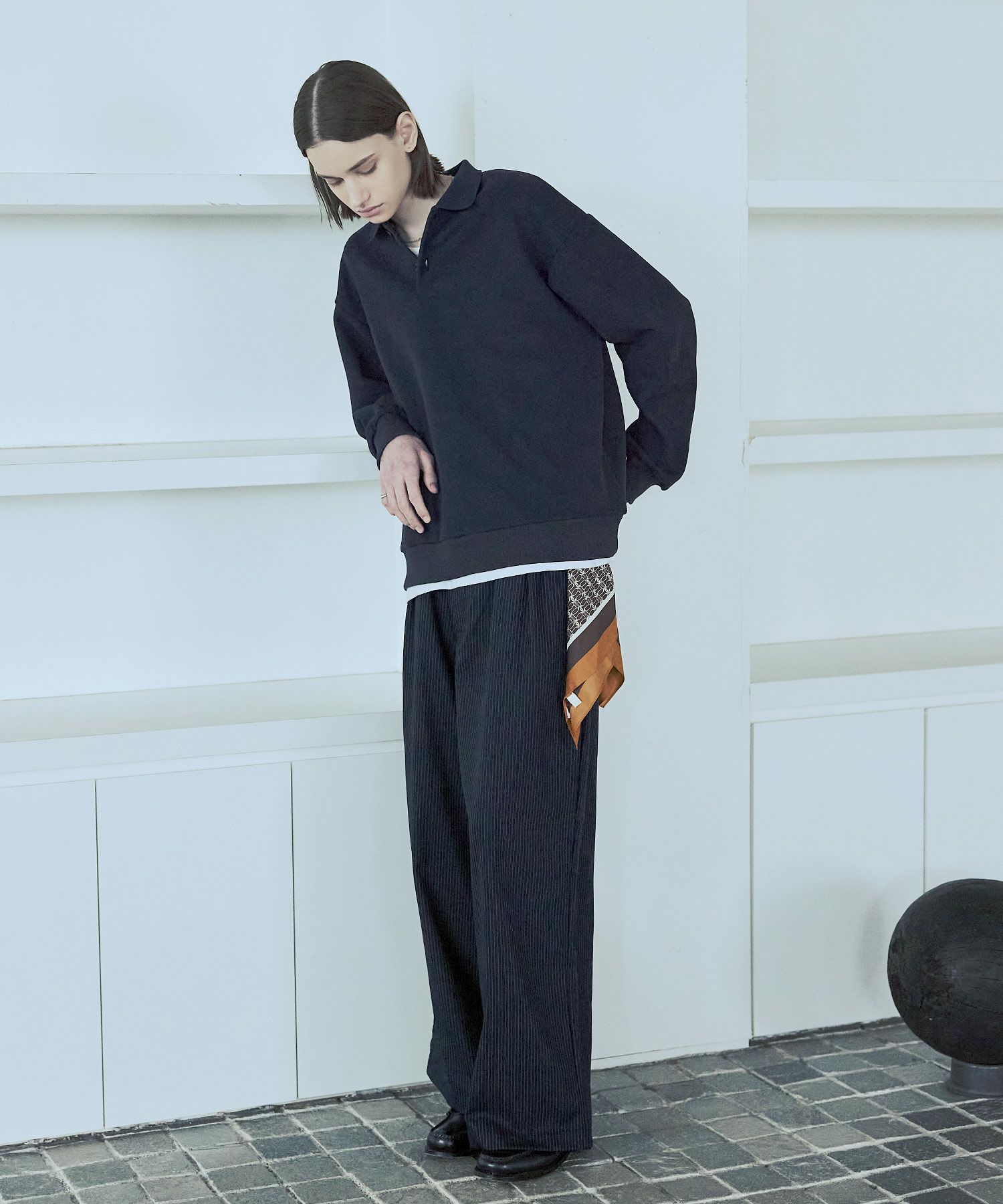 ジャンルレスなアイテムなので、レザー系のジャケットなどとも相性抜群。