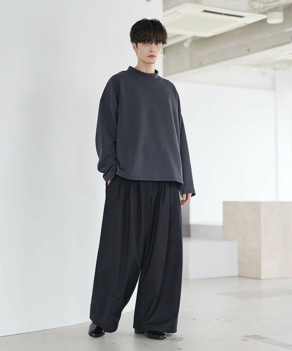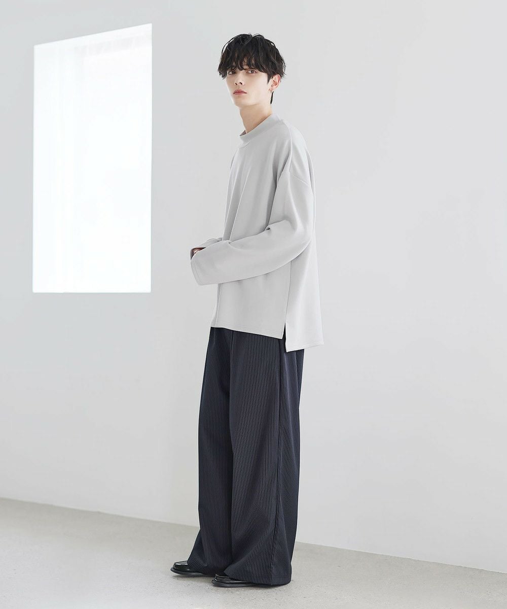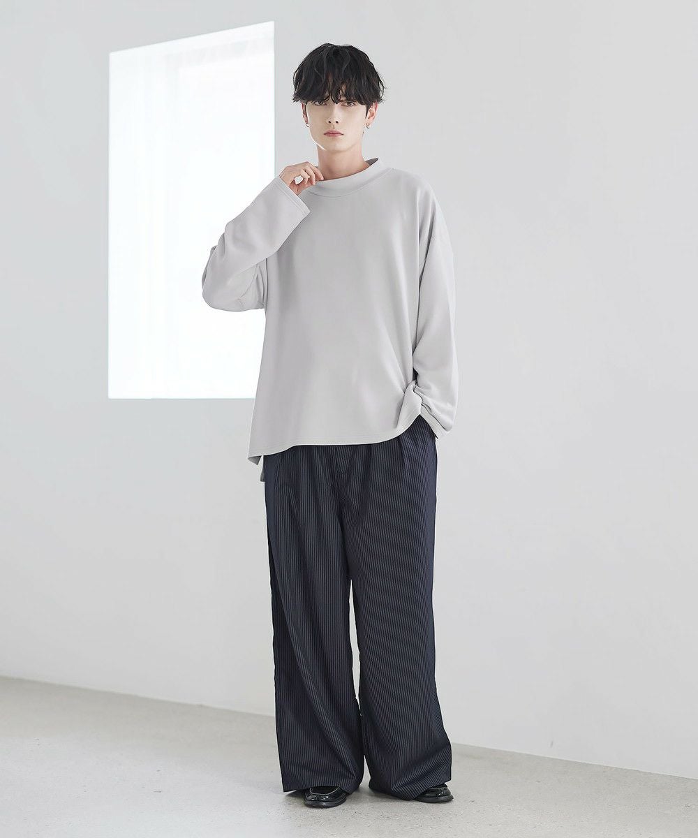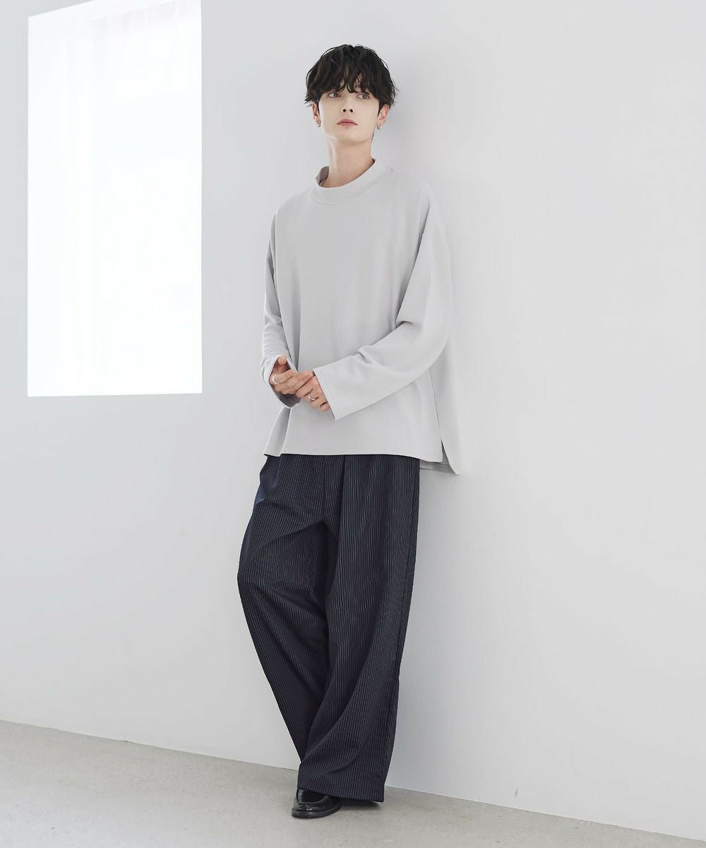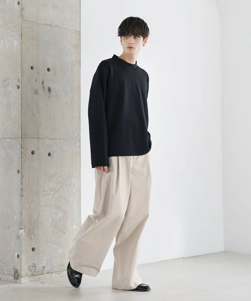 【セットアップ 3点セット】綿タッチ長袖オープンカラーシャツ+UネックTシャツ+ライトツイルスラックス