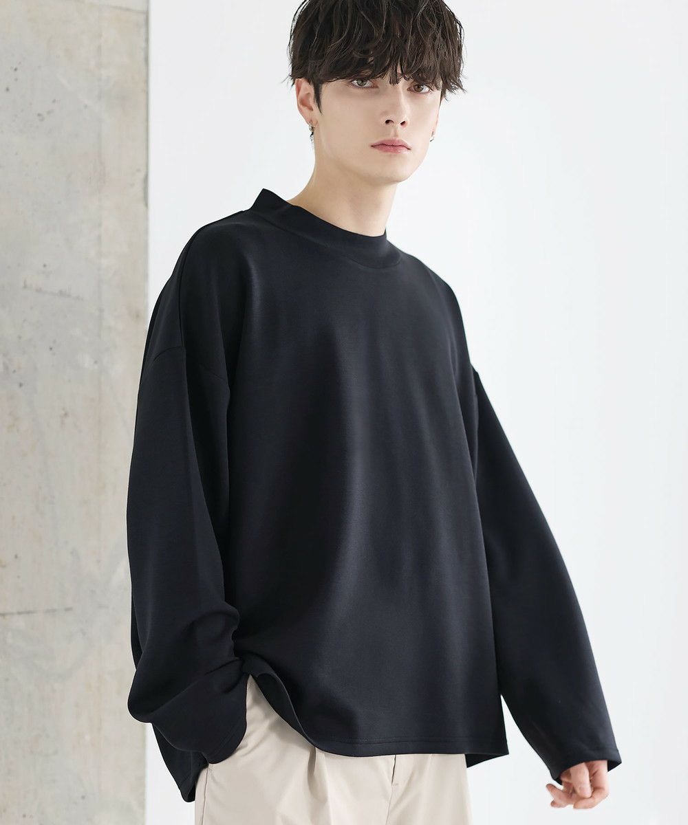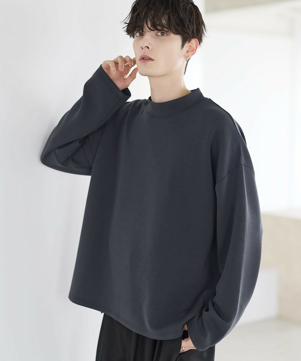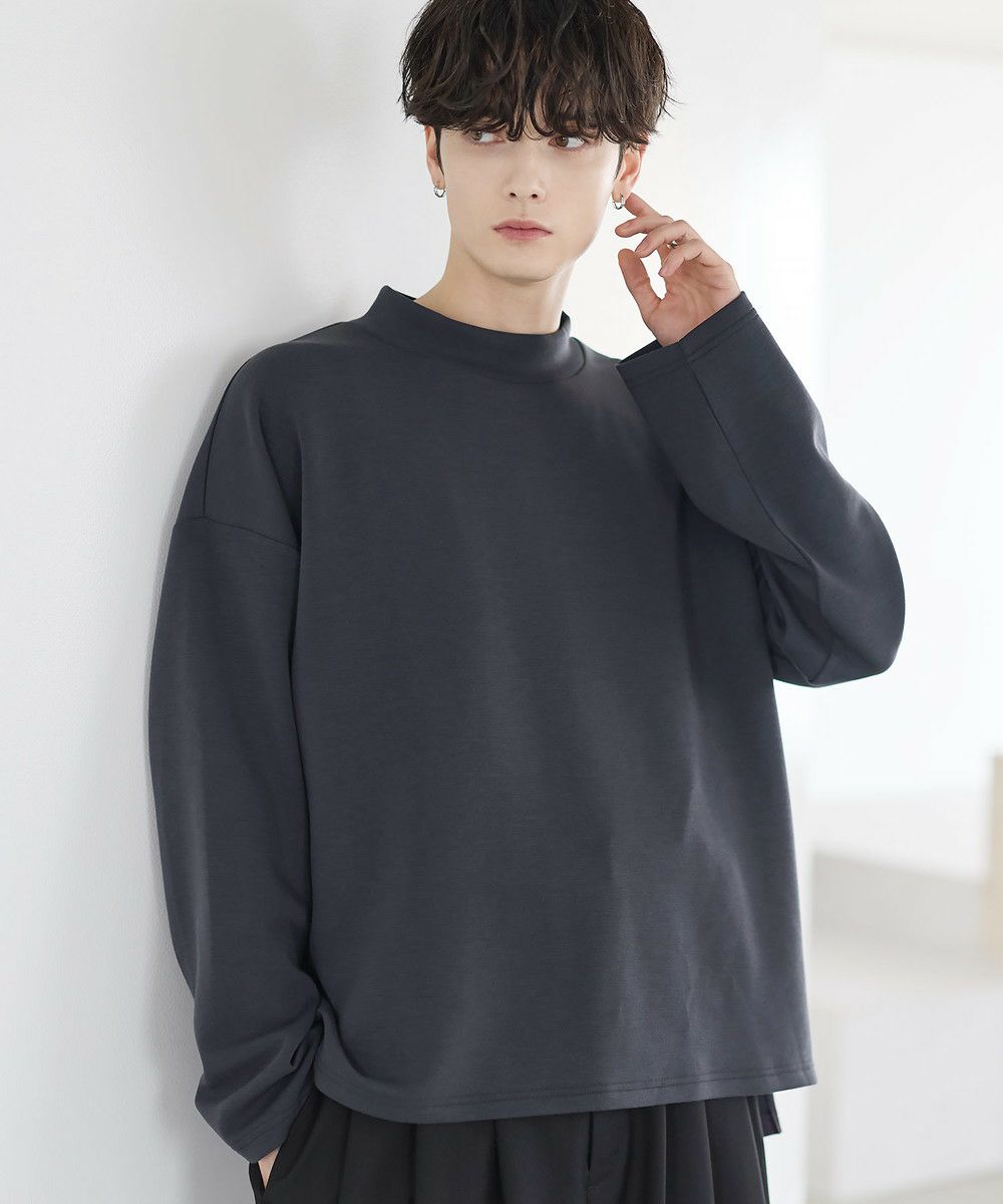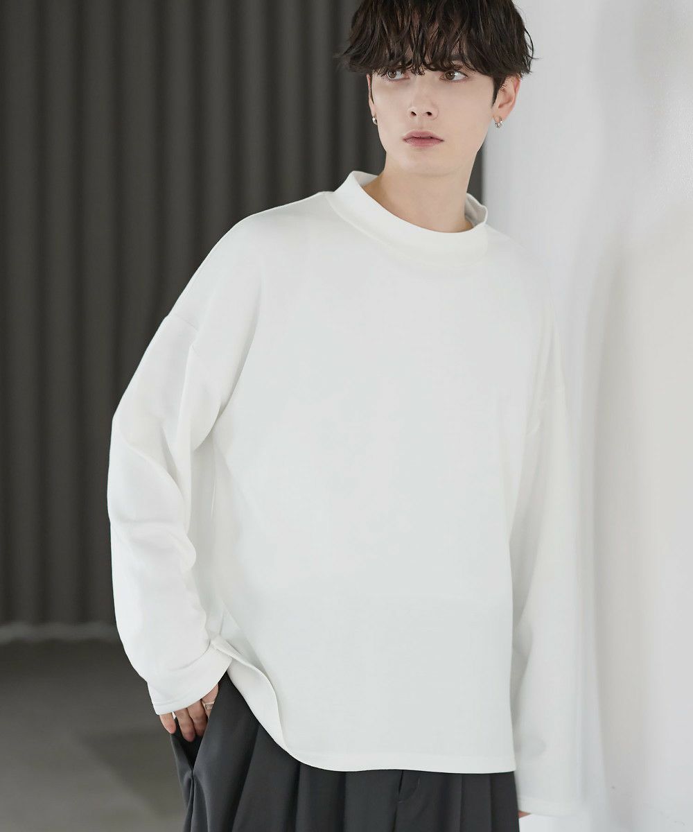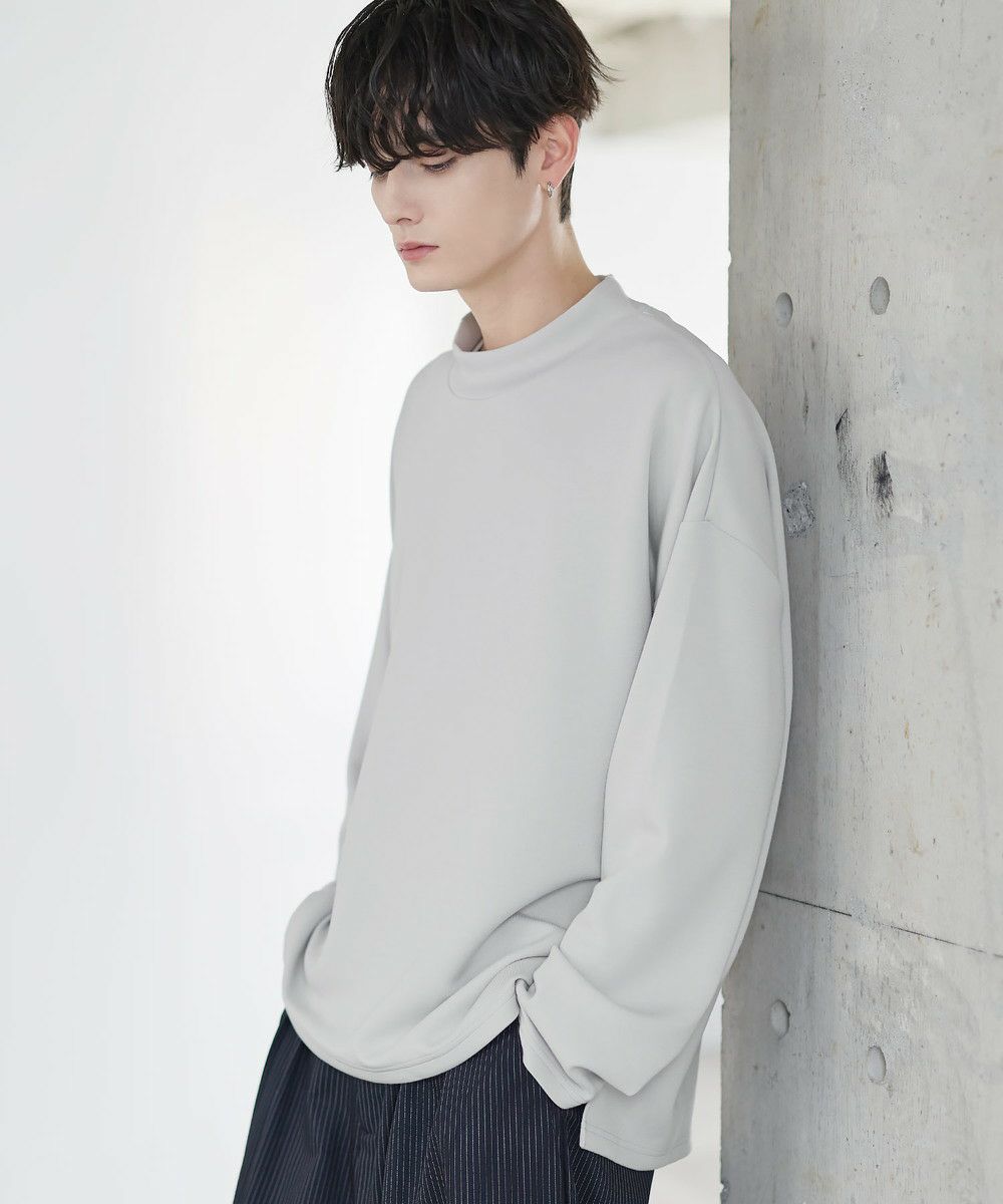 防シワ性と抗ピリング機能を備えた、ポンチ素材のモックネックトップスです。程よく立ち上がるネックデザインが上品な印象を与え、シンプルながら洗練された雰囲気を演出します。ゆとりを持たせたシルエットにより、リラックス感がありながらもだらしなく見えないバランスに設計。一枚での着用はもちろん、ジャケットやアウターのインナーとしても活躍します。日常使いしやすい機能性と都会的な佇まいを兼ね備えた一着です。