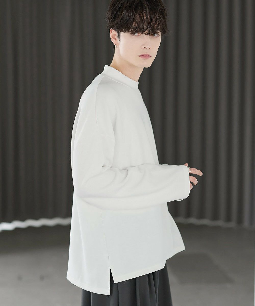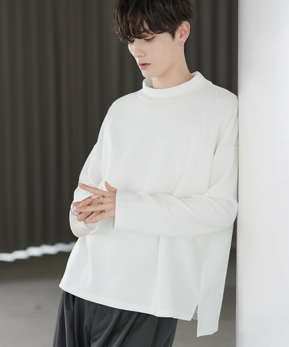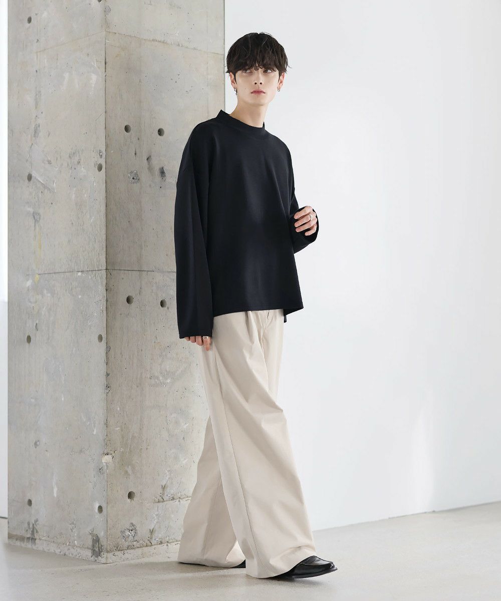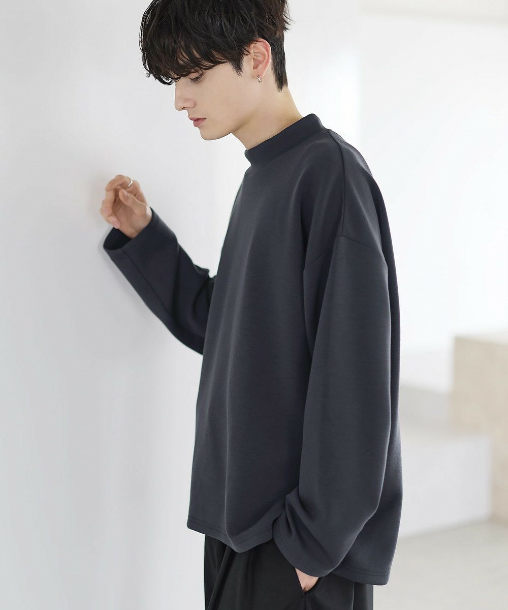防シワ性と抗ピリング機能を備えた、ポンチ素材のモックネックトップスです。程よく立ち上がるネックデザインが上品な印象を与え、シンプルながら洗練された雰囲気を演出します。ゆとりを持たせたシルエットにより、リラックス感がありながらもだらしなく見えないバランスに設計。一枚での着用はもちろん、ジャケットやアウターのインナーとしても活躍します。日常使いしやすい機能性と都会的な佇まいを兼ね備えた一着です。