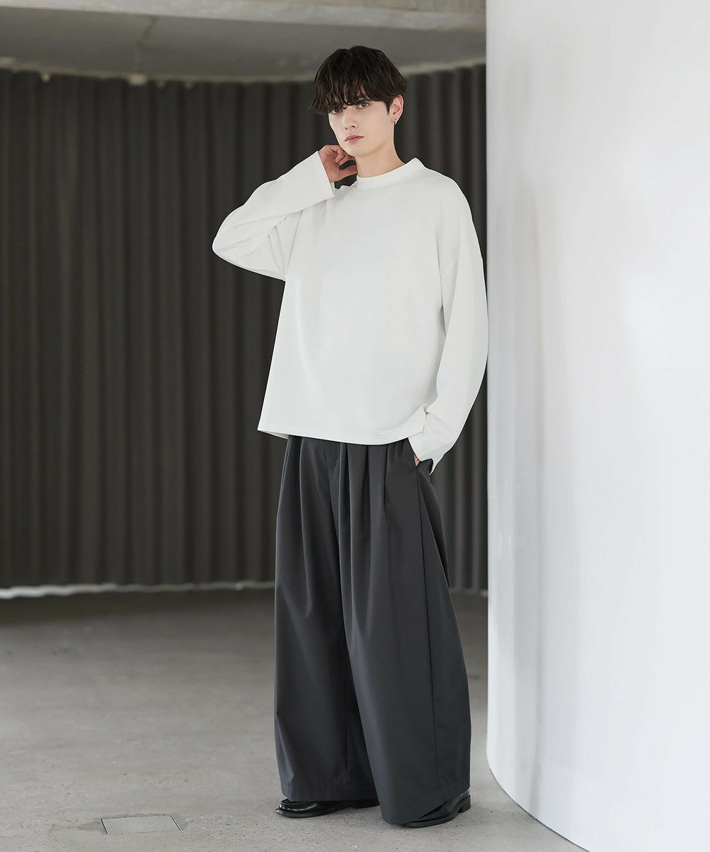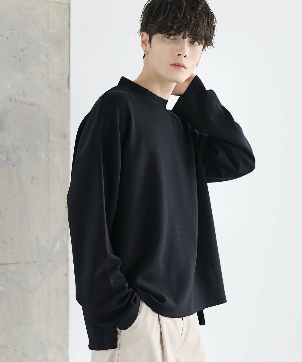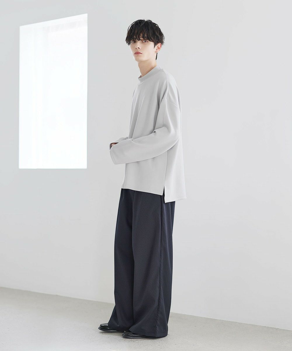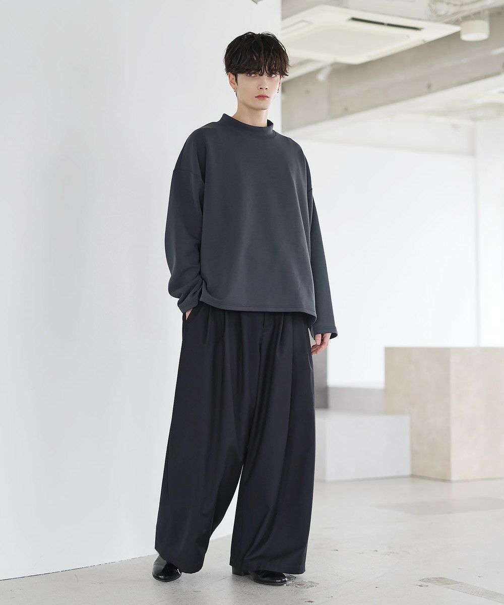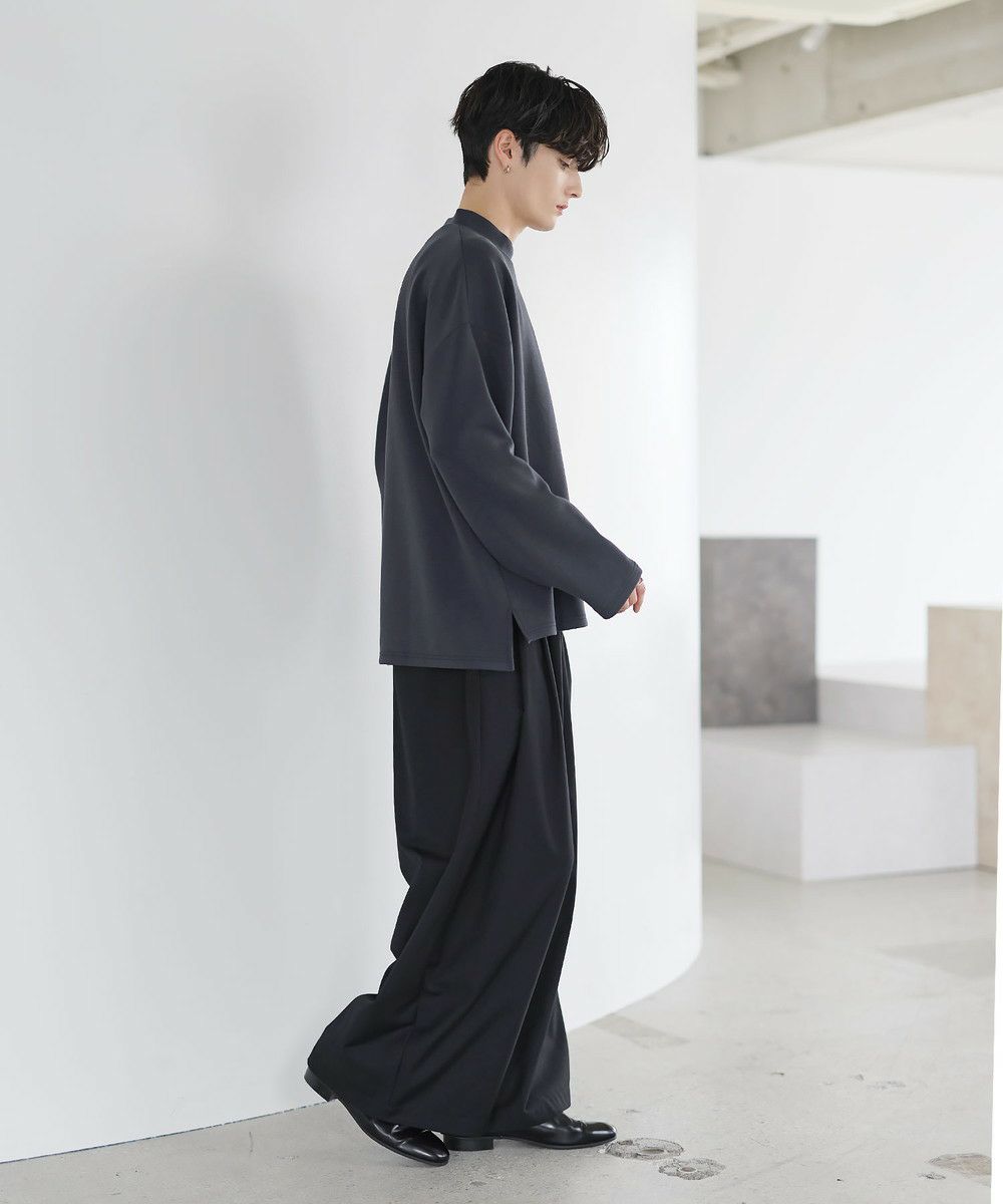 防シワ性と抗ピリング機能を備えた、ポンチ素材のモックネックトップスです。程よく立ち上がるネックデザインが上品な印象を与え、シンプルながら洗練された雰囲気を演出します。ゆとりを持たせたシルエットにより、リラックス感がありながらもだらしなく見えないバランスに設計。一枚での着用はもちろん、ジャケットやアウターのインナーとしても活躍します。日常使いしやすい機能性と都会的な佇まいを兼ね備えた一着です。