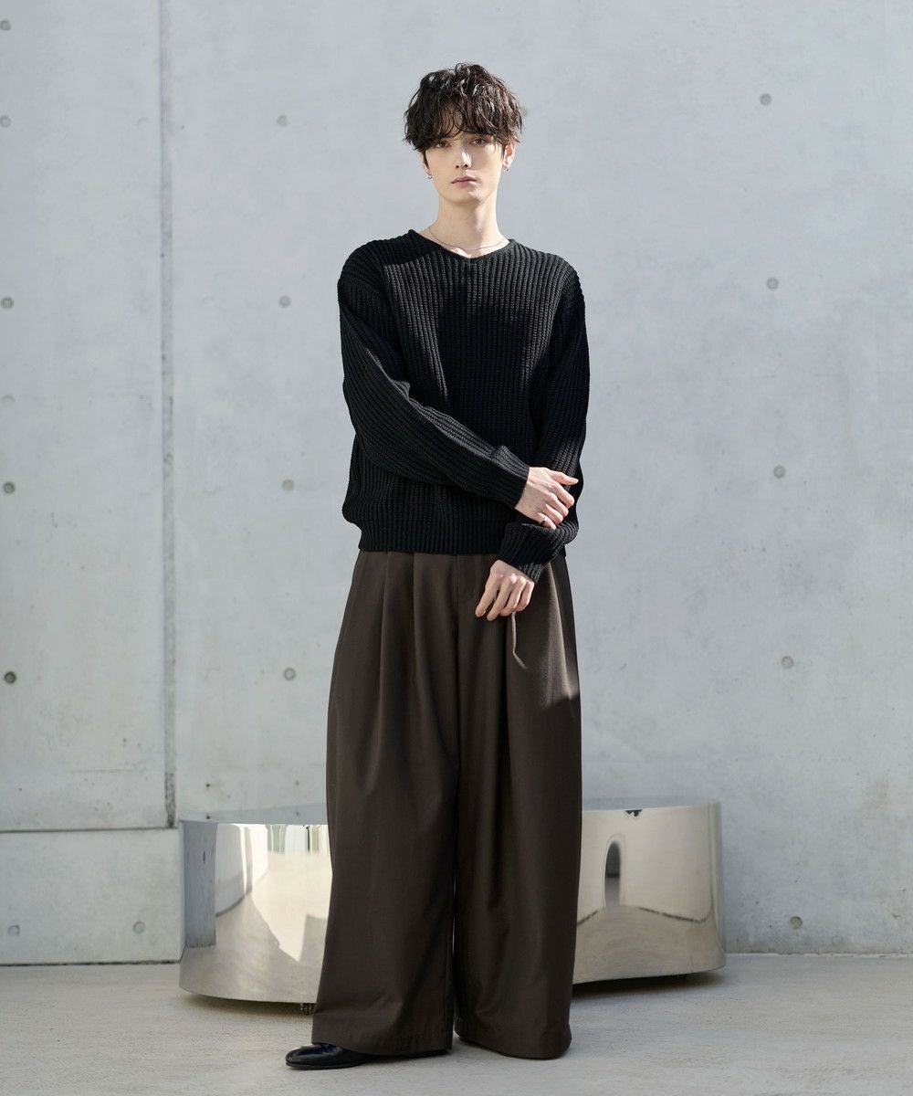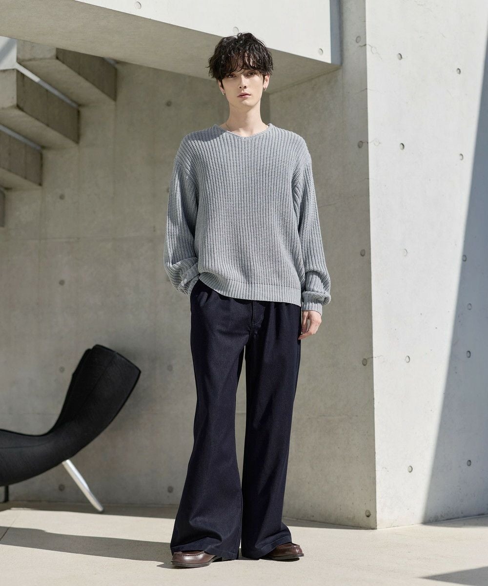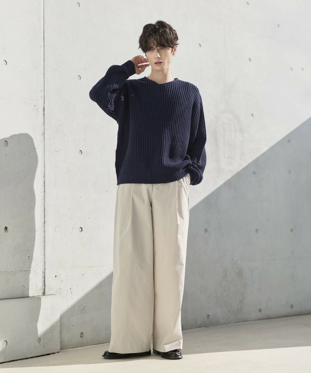 ゆったりとしたサイズなので、パンツもリラックス感のあるアイテムがぴったり。カジュアルなデニムパンツはもちろん、タック入りのスラックスでシルエットをよりワイドに見せるのもおすすめです。