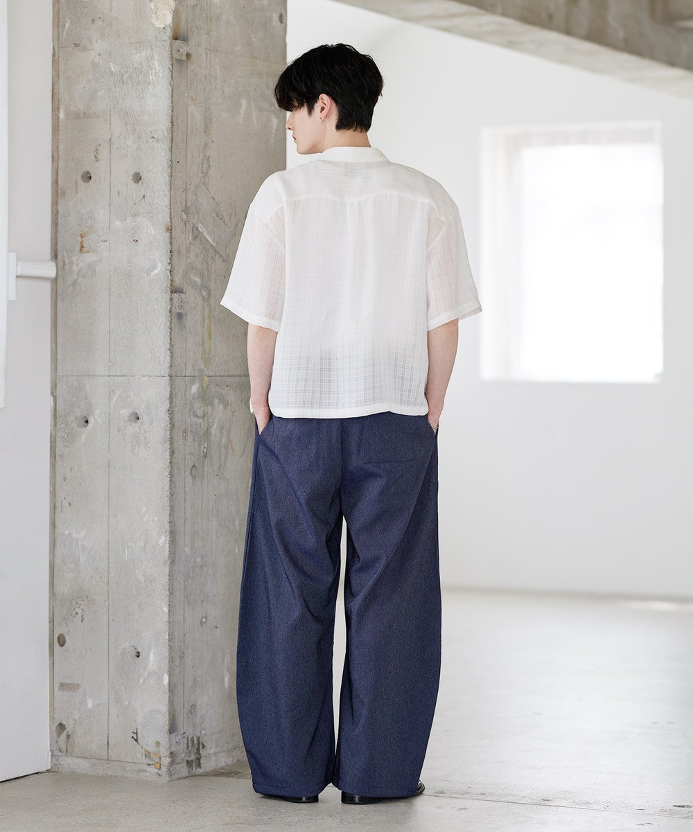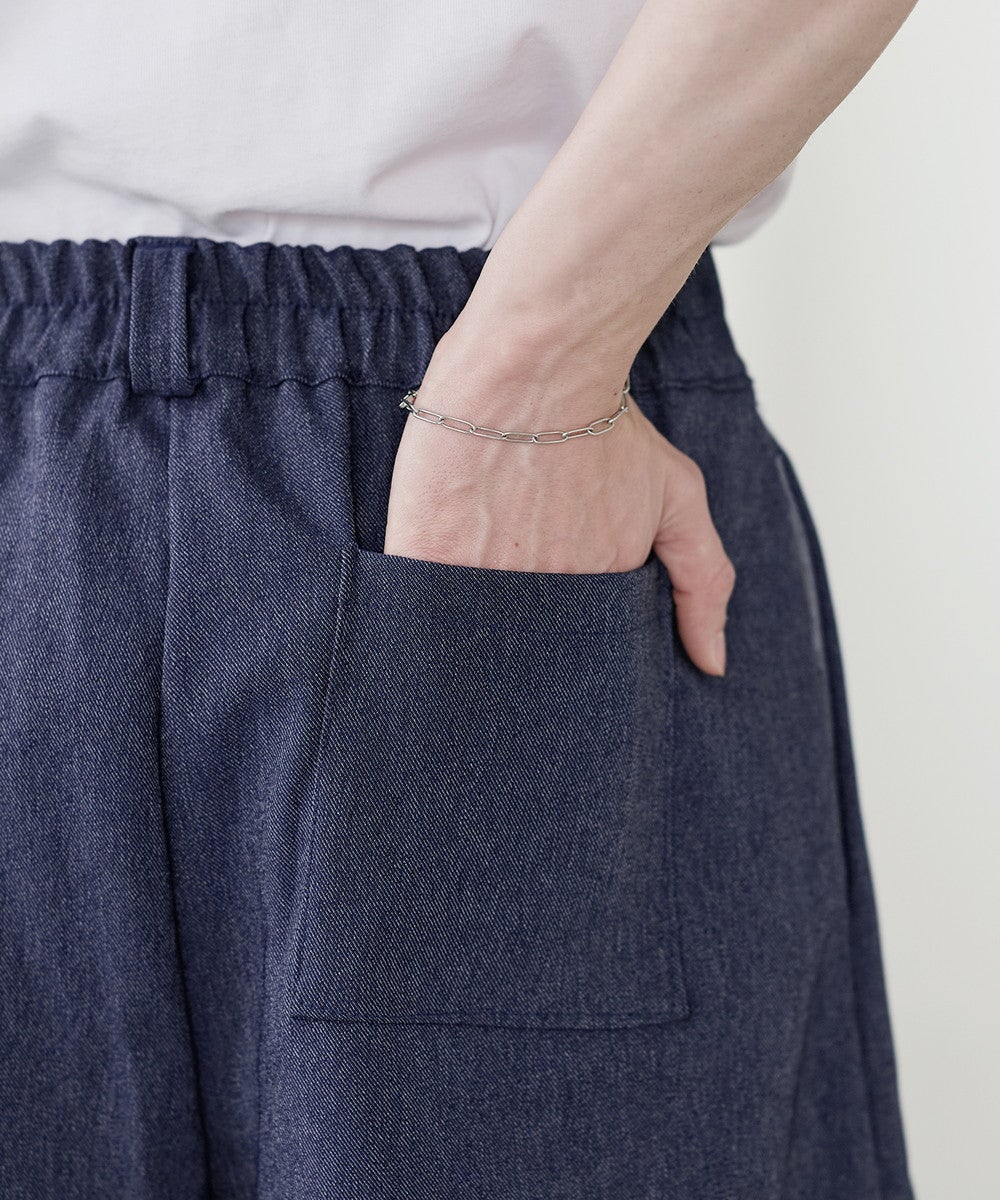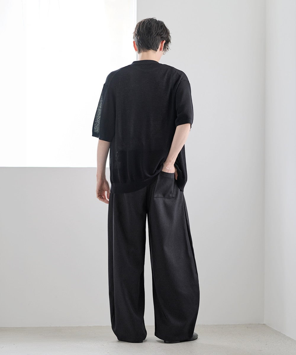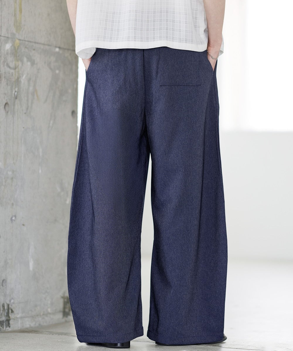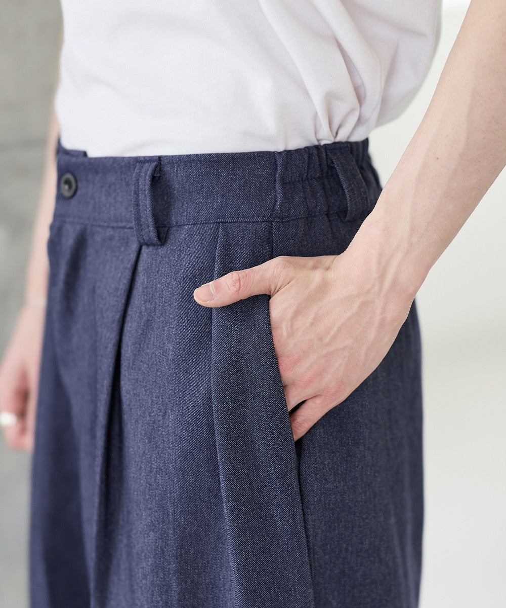 ワイドシルエットでリラクシーな穿き心地ながら、タックから生まれるドレープが上品さを演出。ボリュームがありながらも腰回りはスッキリとスタイルよく見せてくれます。ウエストはゴムを入れたイージー仕様で締め付け感がなく脱ぎ穿きもスムーズ。後ろのみゴム仕様にすることで、タックインスタイルもかっこよくキマります。カラーは着回しの効くブラックとネイビーの2色展開です。