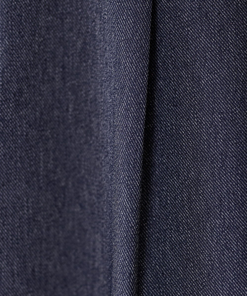 素材はポリエステルと綿の混紡生地を使用。シワになりにくく扱いやすいポリエステルと、綿のナチュラルな風合いを兼ね備え、程よいハリ感としなやかさが特徴です。きれいなドレープが出るため、動きに合わせて上品な表情を演出します。