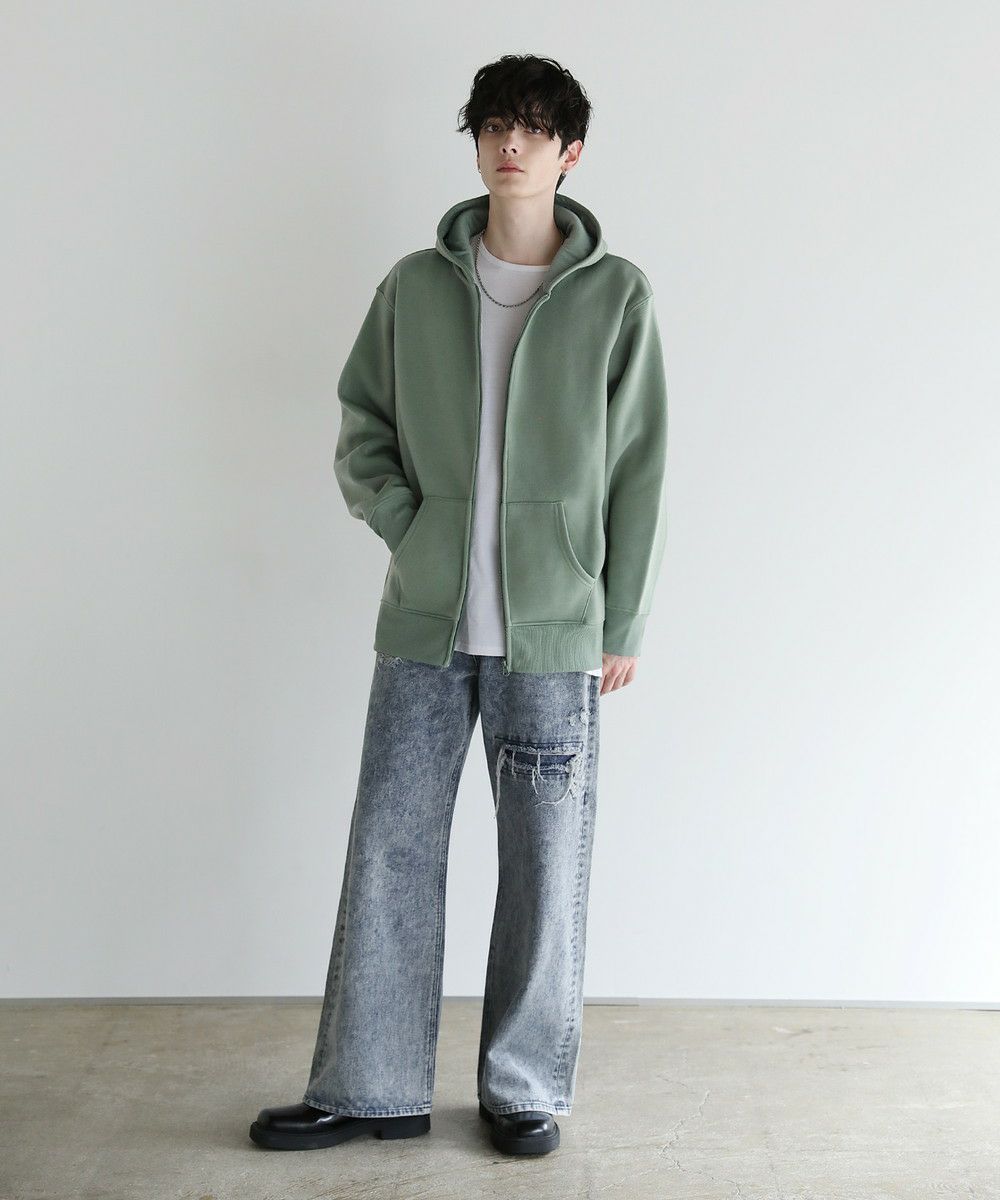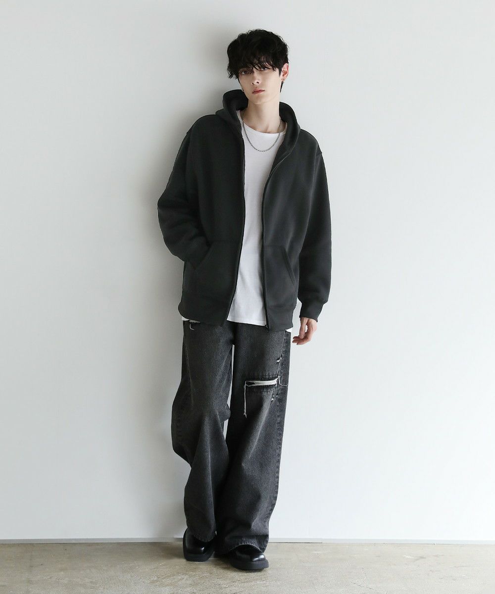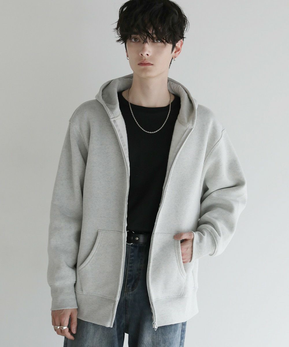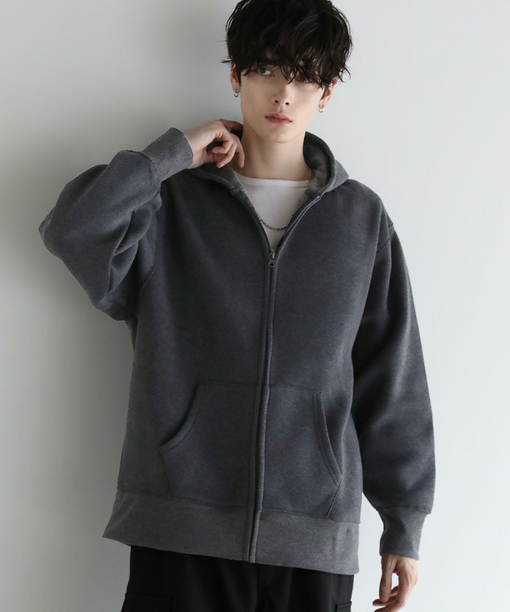 裏起毛ヘビーウェイトビッグシルエットジップパーカー