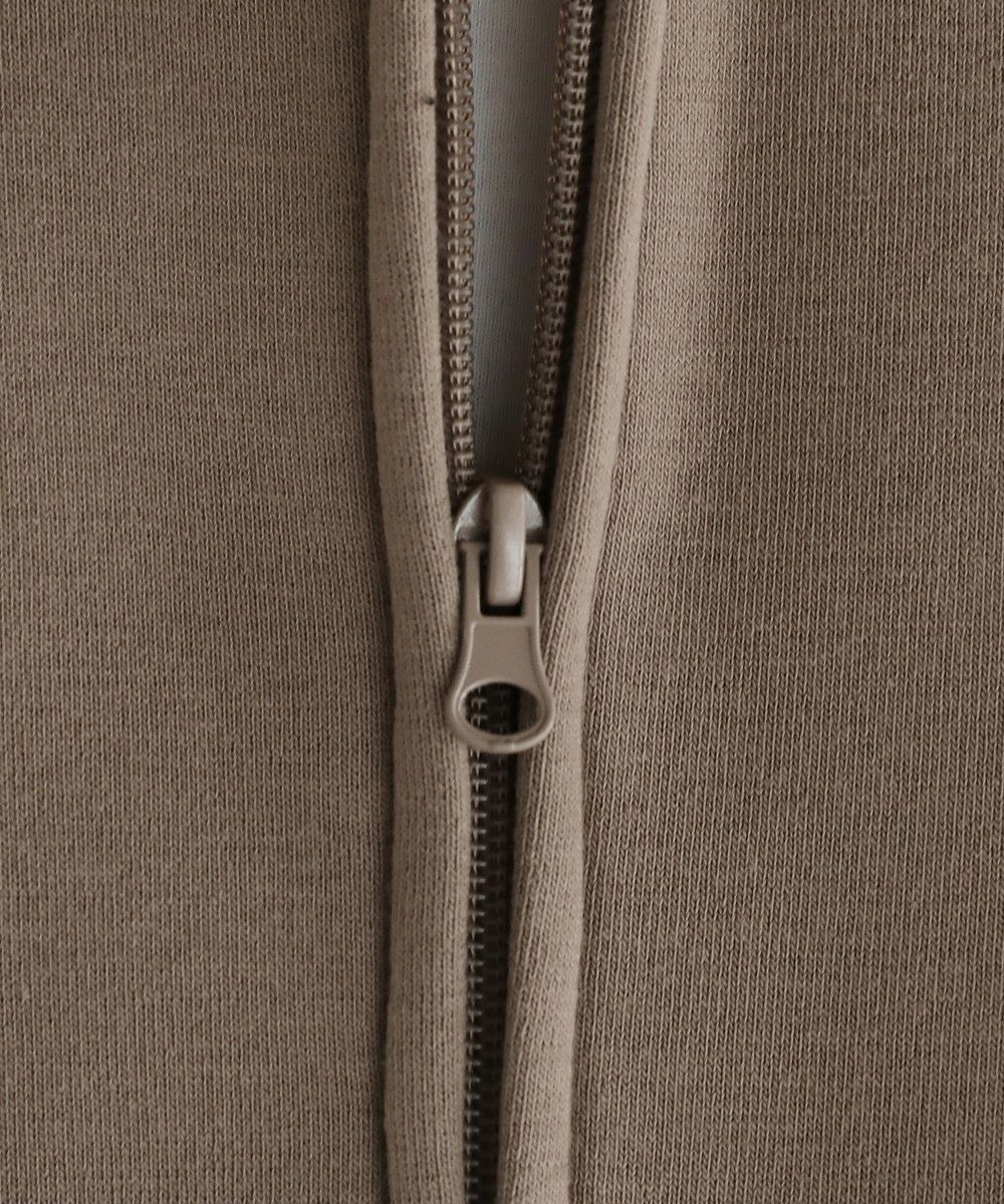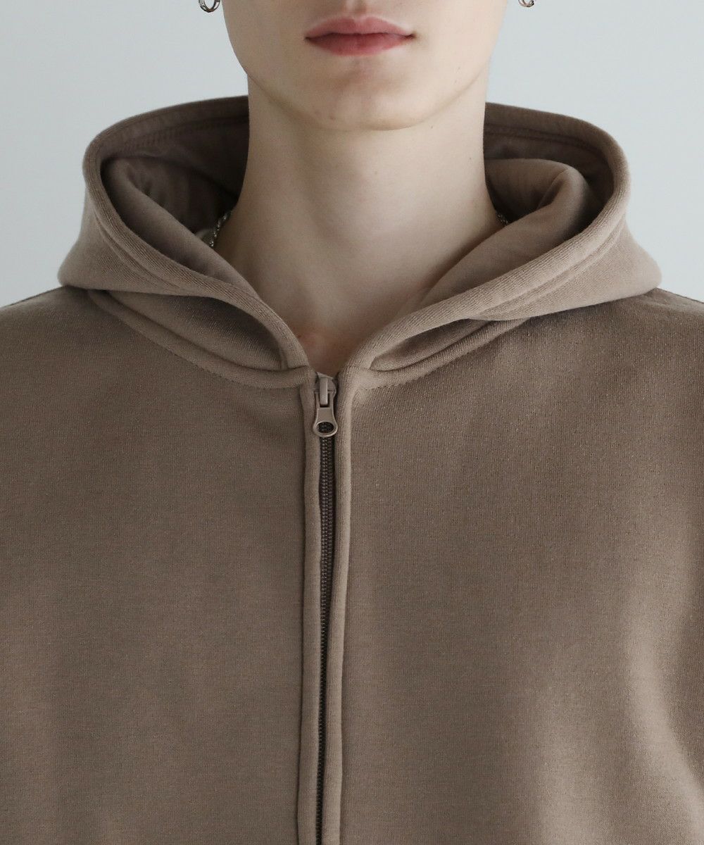 ふんわりとした裏起毛生地を用いたジップパーカー。しっかりと厚みのあるヘビーウェイト生地ですが、通常のスウェット生地よりも柔らかく、伸縮性にも優れているのが特長。サイズはゆったりとしたリラックス感のあるビッグシルエットデザインで、トレンド感のある着こなしが決まります。大きすぎず程よいサイズ感のフードは紐なしのデザインに仕上げているためスッキリと見栄えが良く、カジュアルさと上品さのバランスの良いアイテムです。