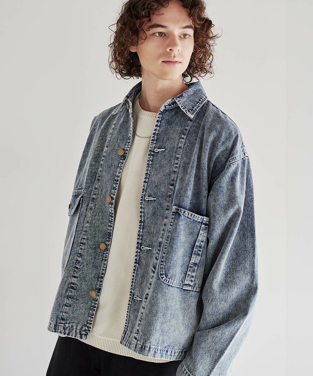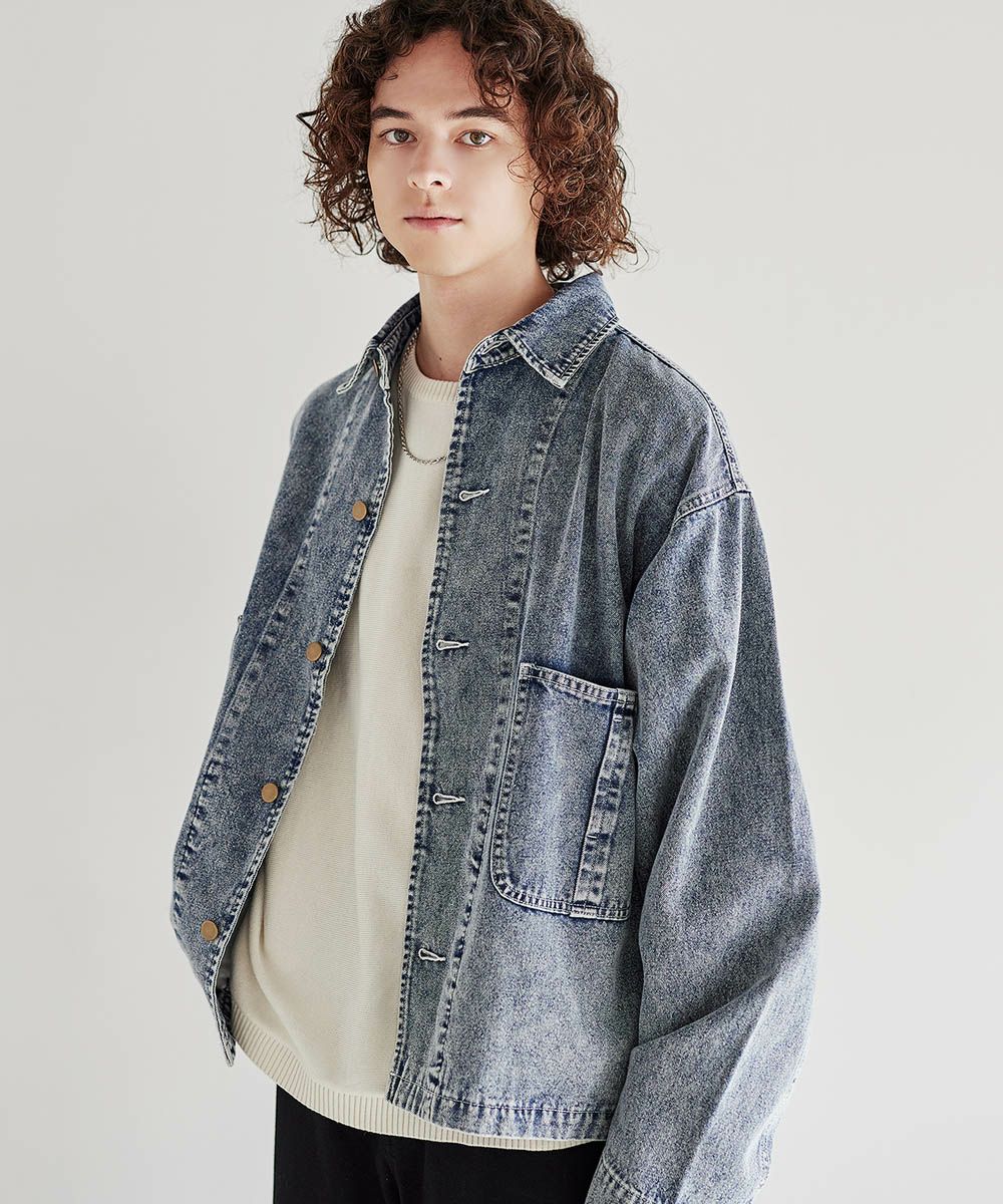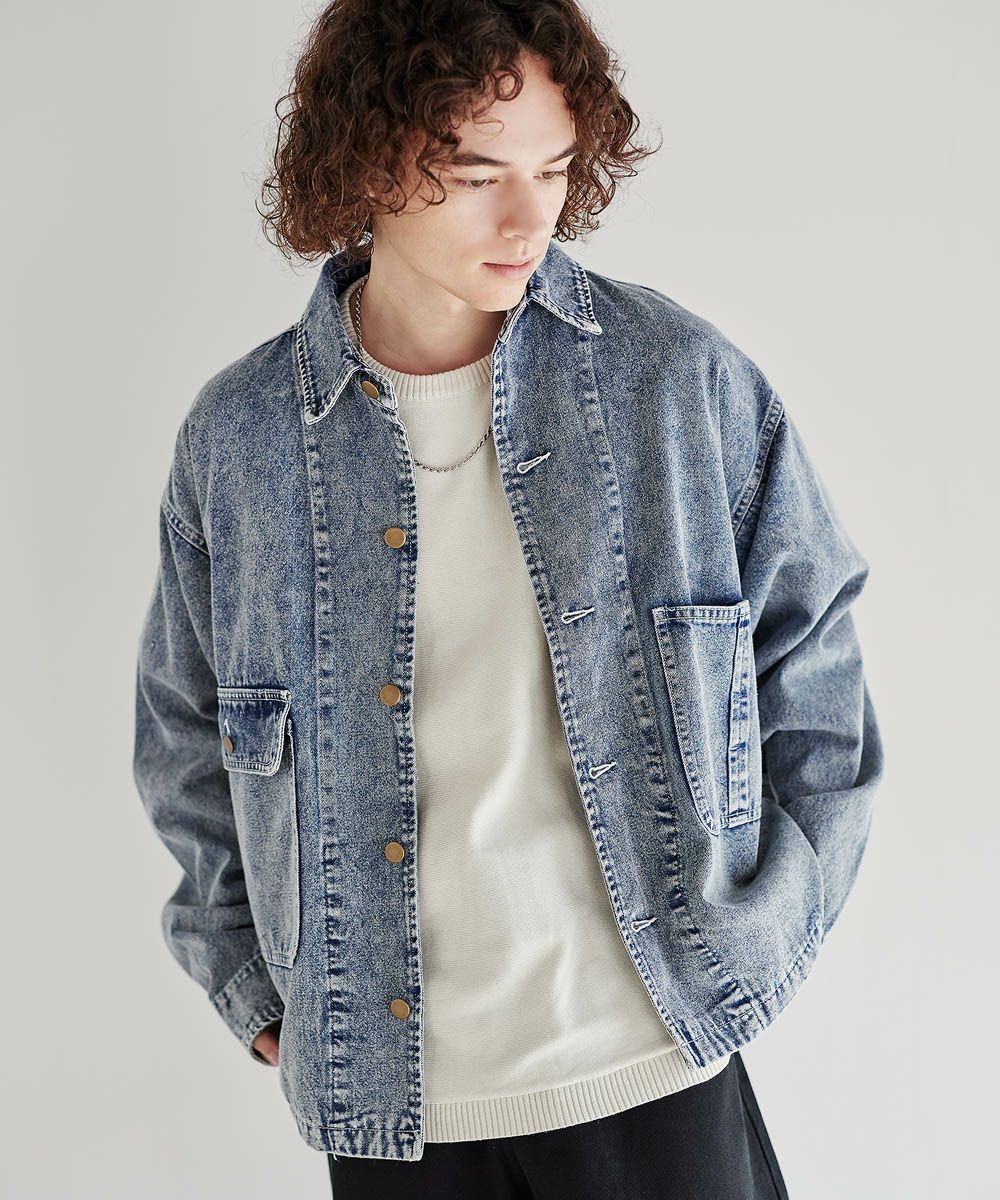 ソフトデニムで仕上げた軽やかな着心地のデニムジャケット。素材はベーシックなハリとコシを持つ10.5ozのデニム生地を採用しました。ケミカル加工を施しビンテージライクな雰囲気のある印象に。使いこむほどに馴染んでいく経年変化も楽しめます。ワイドな身幅にドロップショルダー、着丈はショート丈にすることで、着回しやすくスタイルアップが叶う1着です。