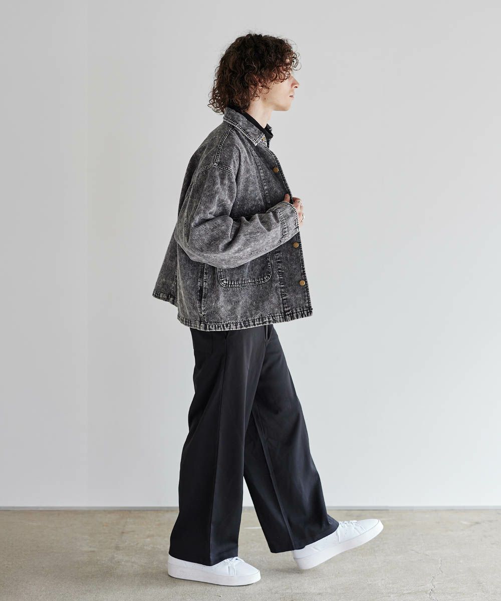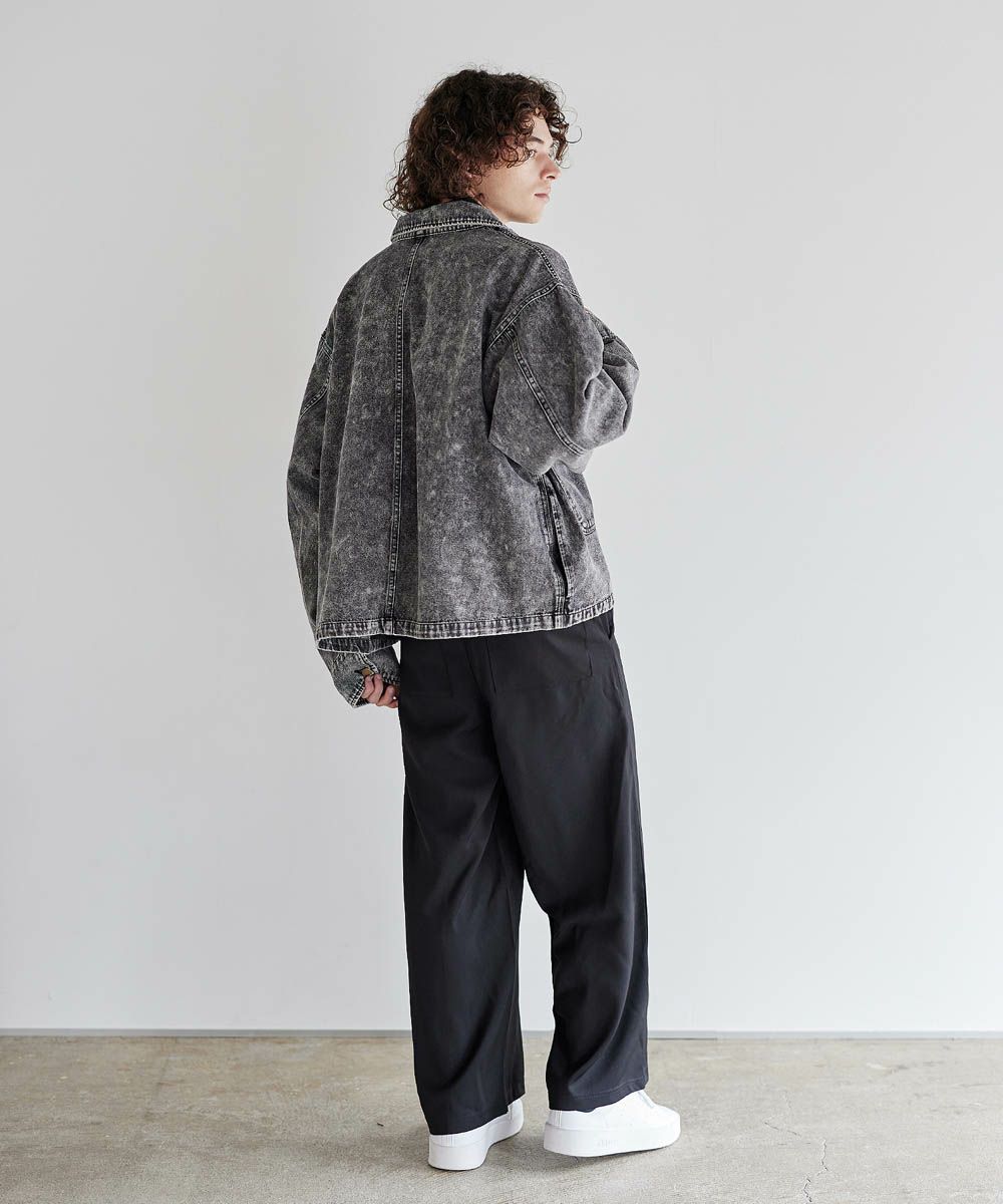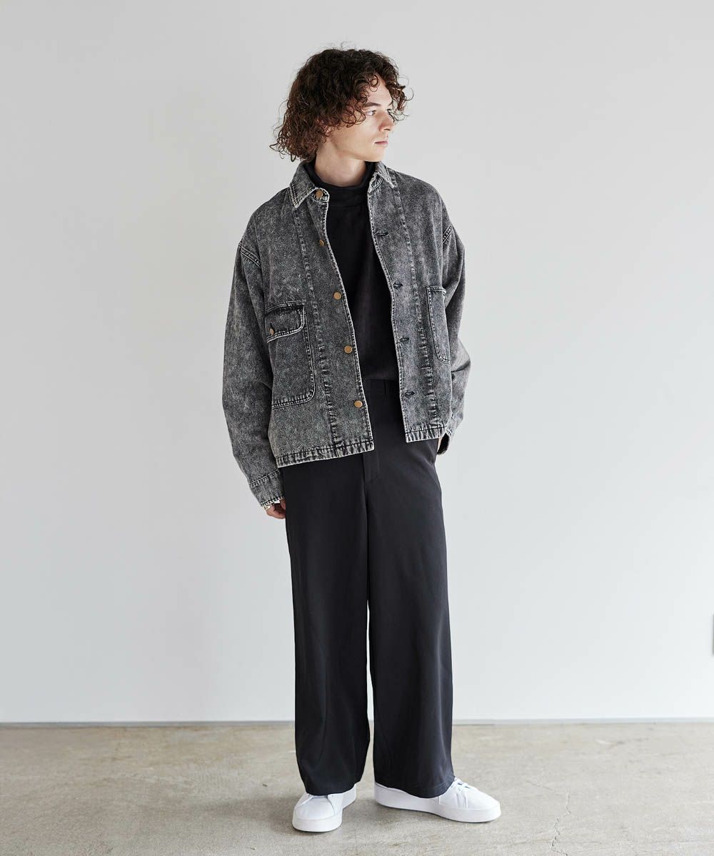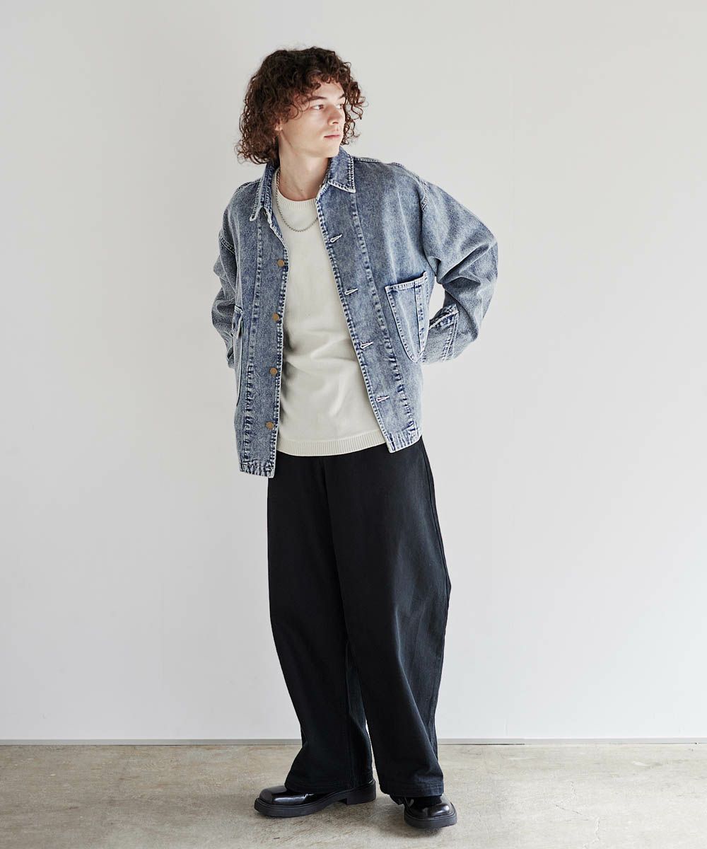 ソフトデニムで仕上げた軽やかな着心地のデニムジャケット。素材はベーシックなハリとコシを持つ10.5ozのデニム生地を採用しました。ケミカル加工を施しビンテージライクな雰囲気のある印象に。使いこむほどに馴染んでいく経年変化も楽しめます。ワイドな身幅にドロップショルダー、着丈はショート丈にすることで、着回しやすくスタイルアップが叶う1着です。