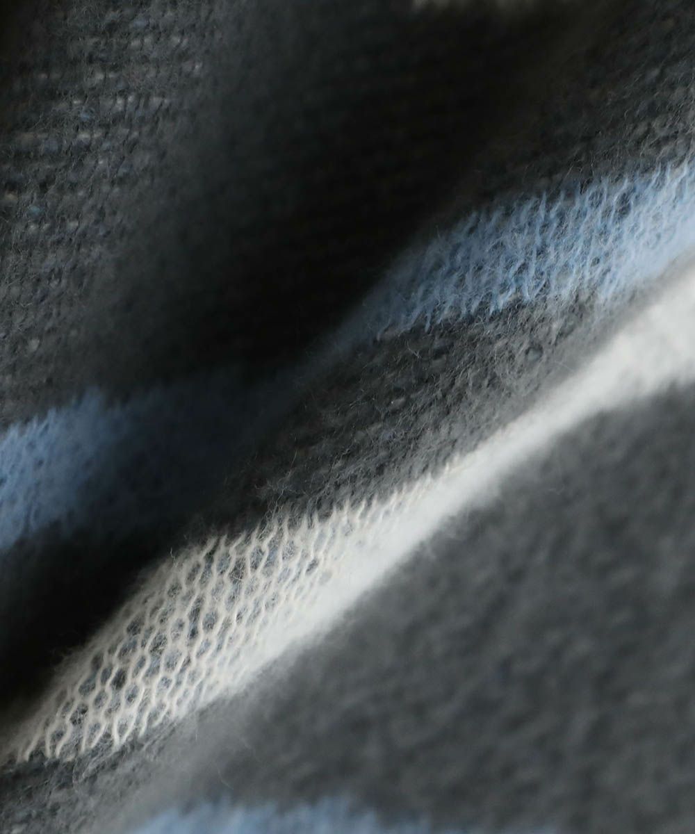 適度に起毛を施しふわっとした表情に仕上げたモヘアライクニット。ポリエステル100%で軽さと暖かさを兼ね備えた生地。チクチク感を軽減した柔らかく優しい肌触りです。