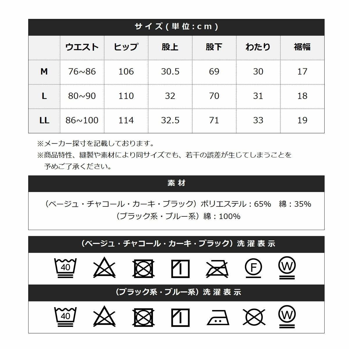 ※商品特性、縫製や素材により同サイズでも、若干の誤差が生じてしまうことを予めご了承ください。