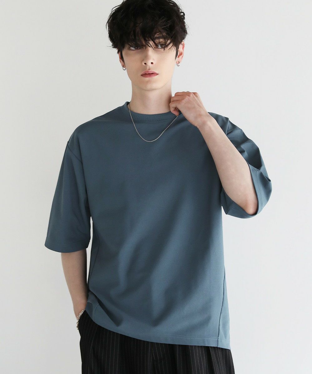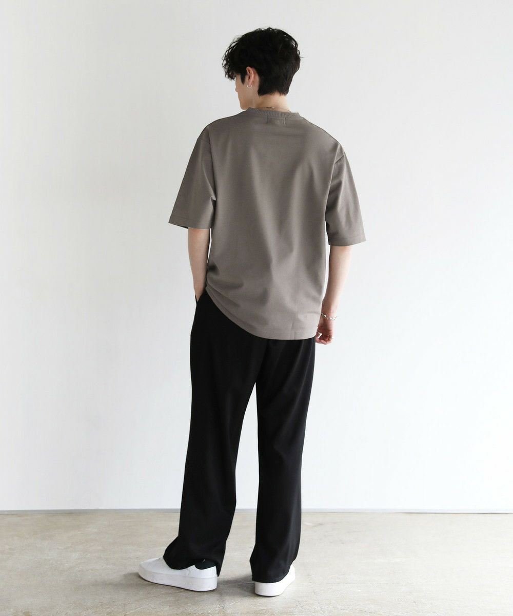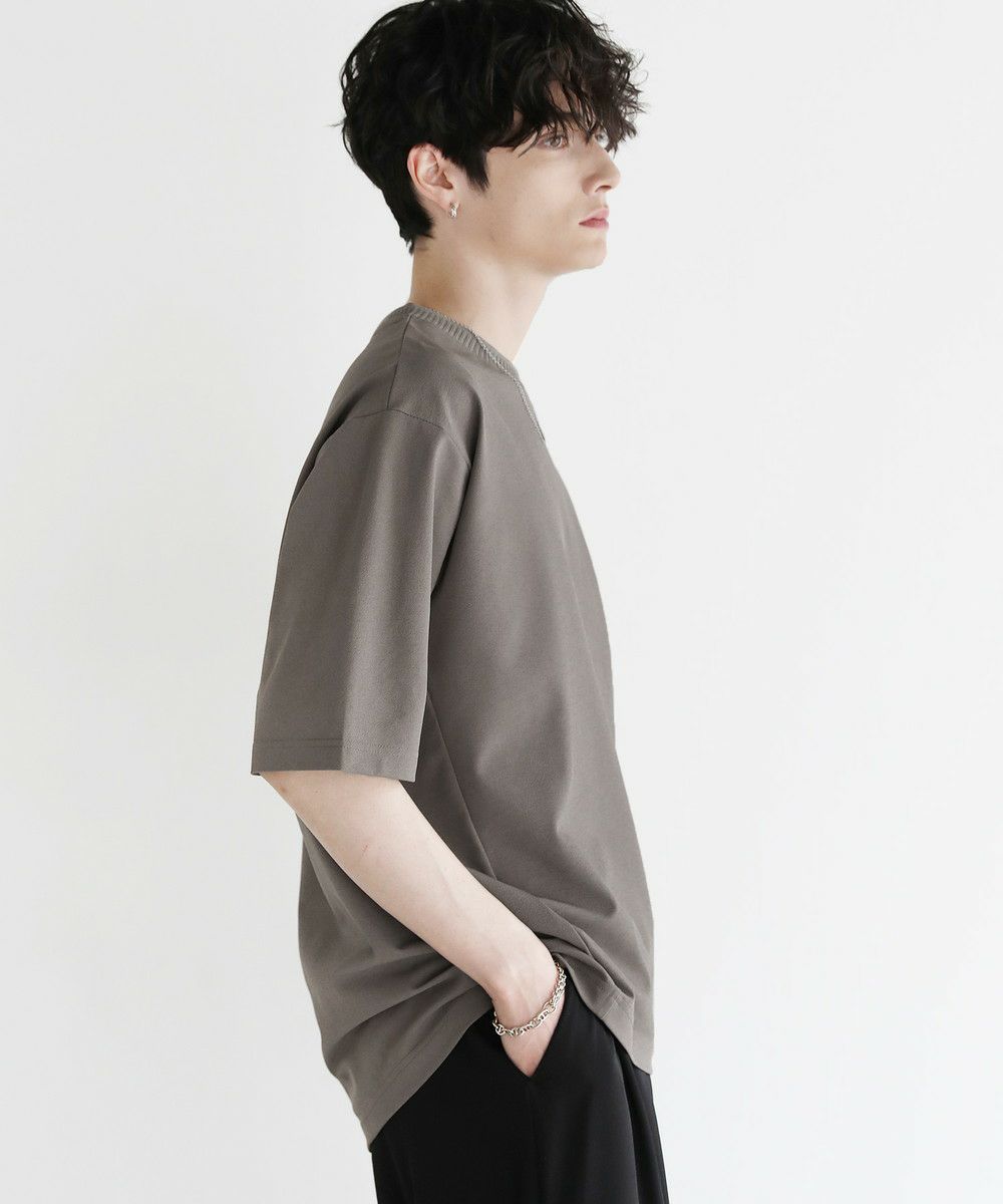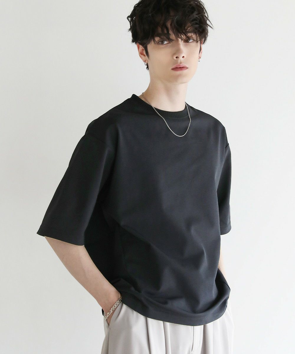 汗ばむ季節にぴったりの機能を備えた半袖Tシャツ。サイドの縫い目をフロント側に入れ込んで前後差を付けた、立体的な作りに仕立てました。さらにドロップショルダーに5分袖と、トレンドのオーバーサイズ感を演出するデザインを取り入れつつも、大きすぎずコンパクト過ぎないルーズシルエットに仕上げています。カラーは普段の着こなしに合わせやすい4色展開。定番のブラック、ライトグレーに落ち着いたアッシュブラウン、ブルーなど色違いで複数枚持っておくのもおすすめです。夏らしい涼し気な素材感とデザイン性を持たせたTシャツは爽やかな大人カジュアルコーデにぴったりです。