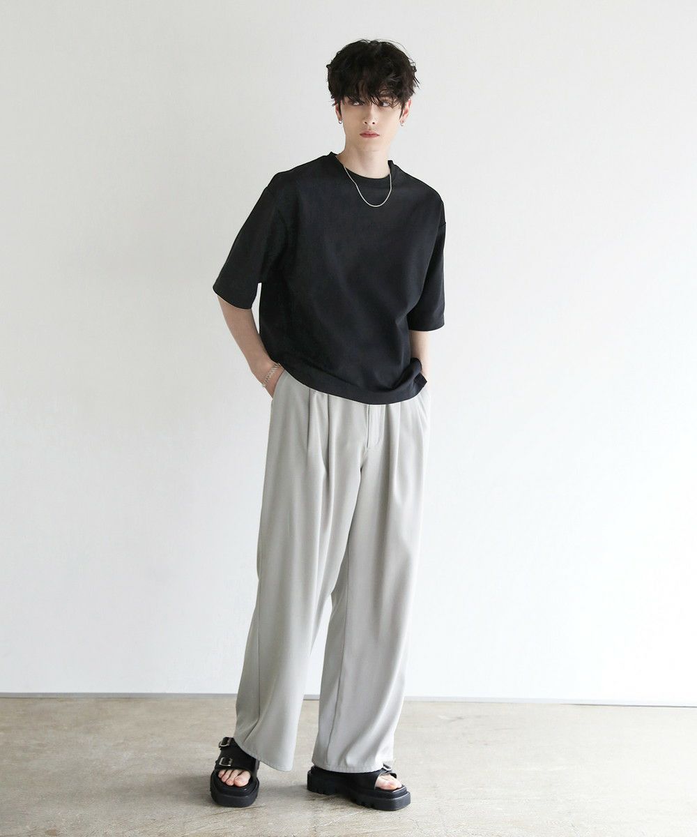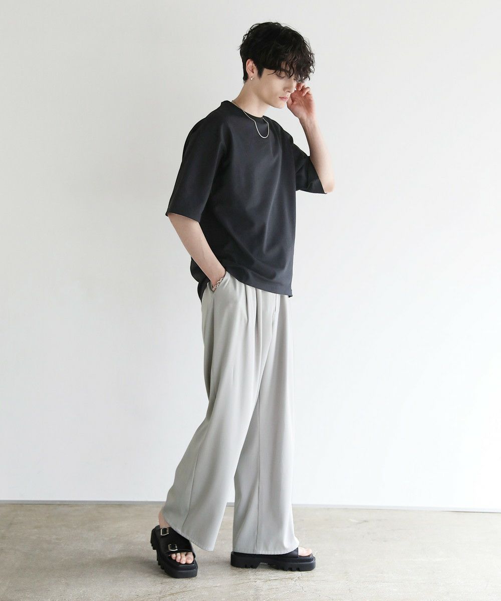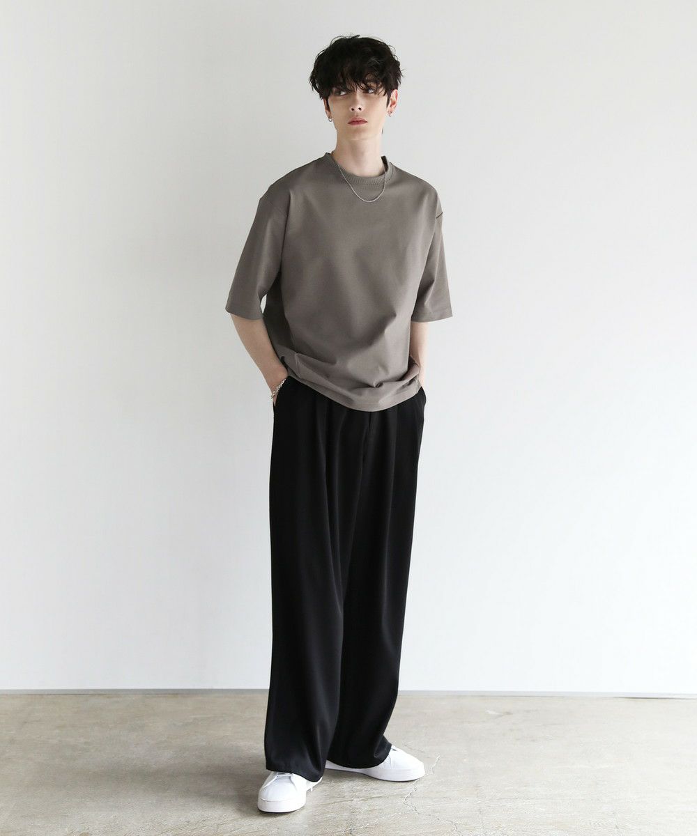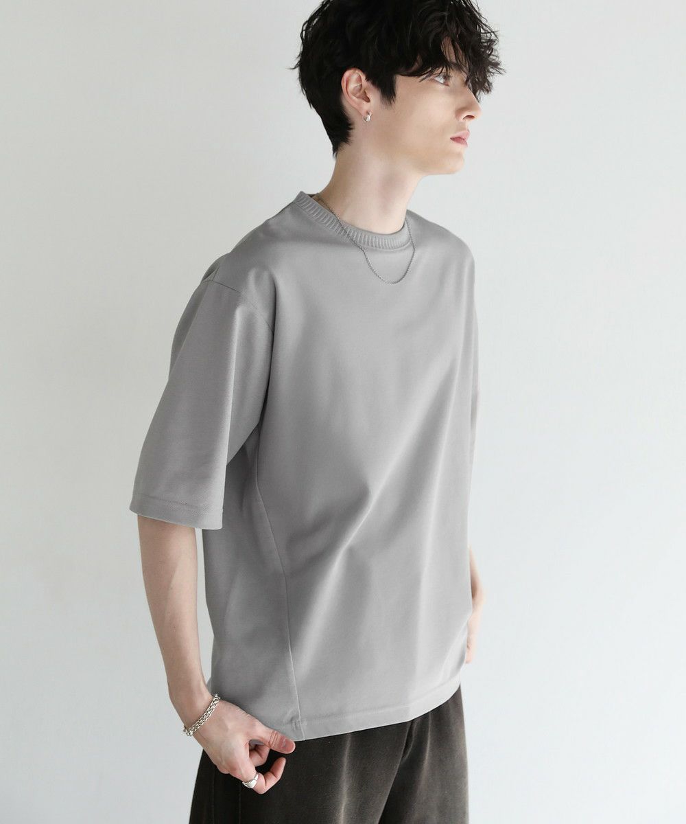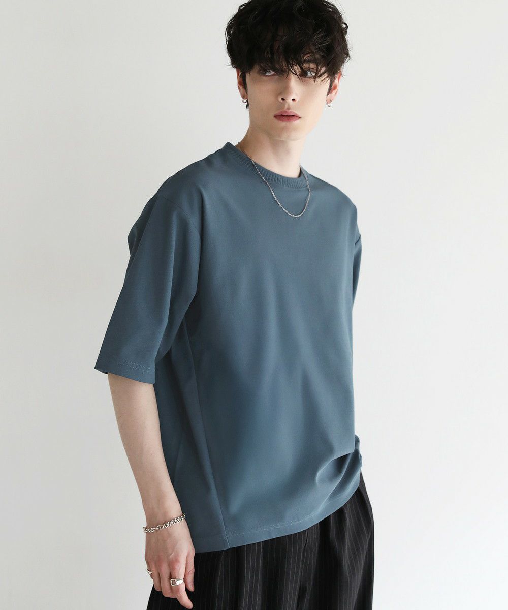 汗ばむ季節にぴったりの機能を備えた半袖Tシャツ。サイドの縫い目をフロント側に入れ込んで前後差を付けた、立体的な作りに仕立てました。さらにドロップショルダーに5分袖と、トレンドのオーバーサイズ感を演出するデザインを取り入れつつも、大きすぎずコンパクト過ぎないルーズシルエットに仕上げています。カラーは普段の着こなしに合わせやすい4色展開。定番のブラック、ライトグレーに落ち着いたアッシュブラウン、ブルーなど色違いで複数枚持っておくのもおすすめです。夏らしい涼し気な素材感とデザイン性を持たせたTシャツは爽やかな大人カジュアルコーデにぴったりです。
