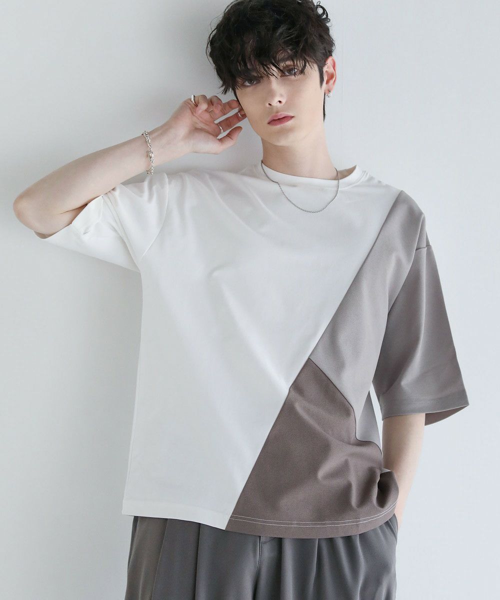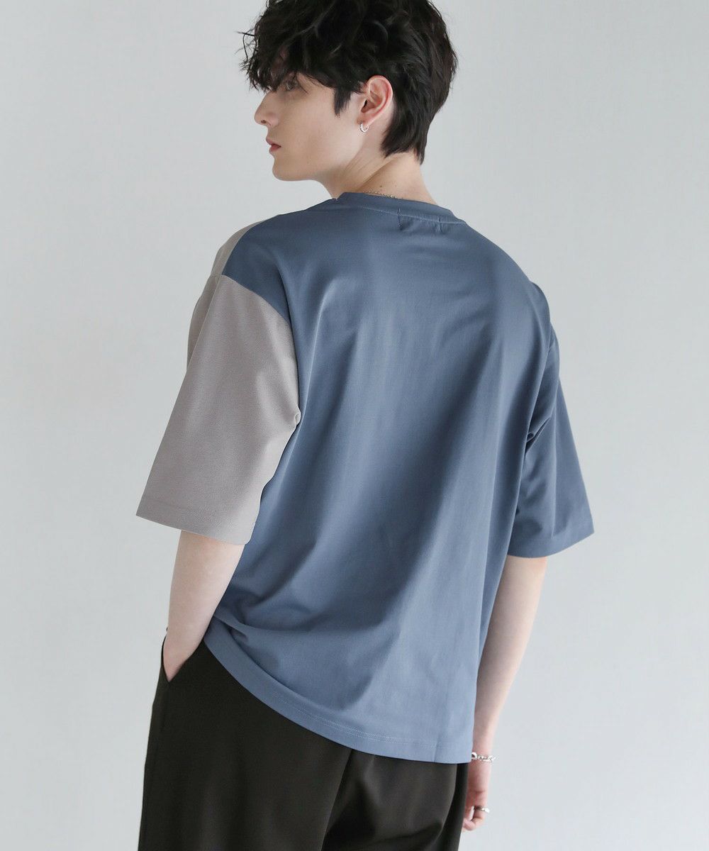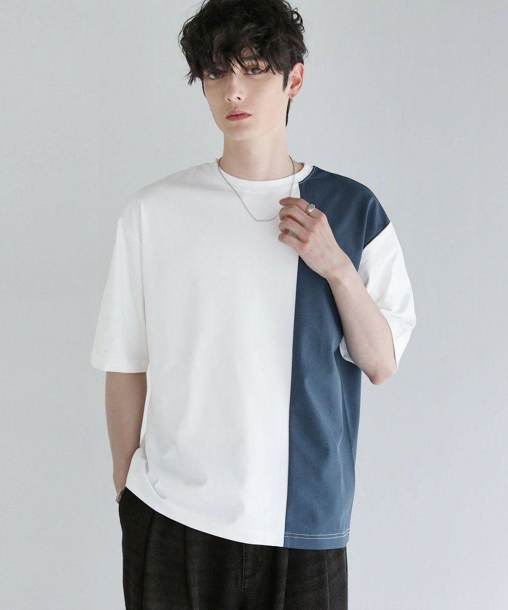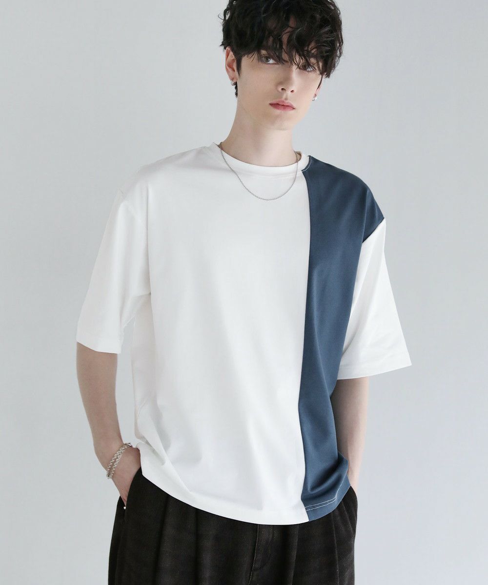 配色部分に手触りの違う異素材生地を使った、お洒落な切り替えデザインが特長のアイテム。さらに接触冷感、速乾、UVカットなど多機能を盛り込み、汗ばむ季節に大活躍のTシャツに仕上げました。ドロップショルダーに長めの袖丈がトレンドのオーバーサイズ感を演出します。派手過ぎず着回しやすいバイカラーのホワイト、スミクロに、存在感抜群なブルー、ホワイト系2を加えた4色展開。カラーによって雰囲気が変わるので、色違いで複数枚持っておくのもおすすめです。
