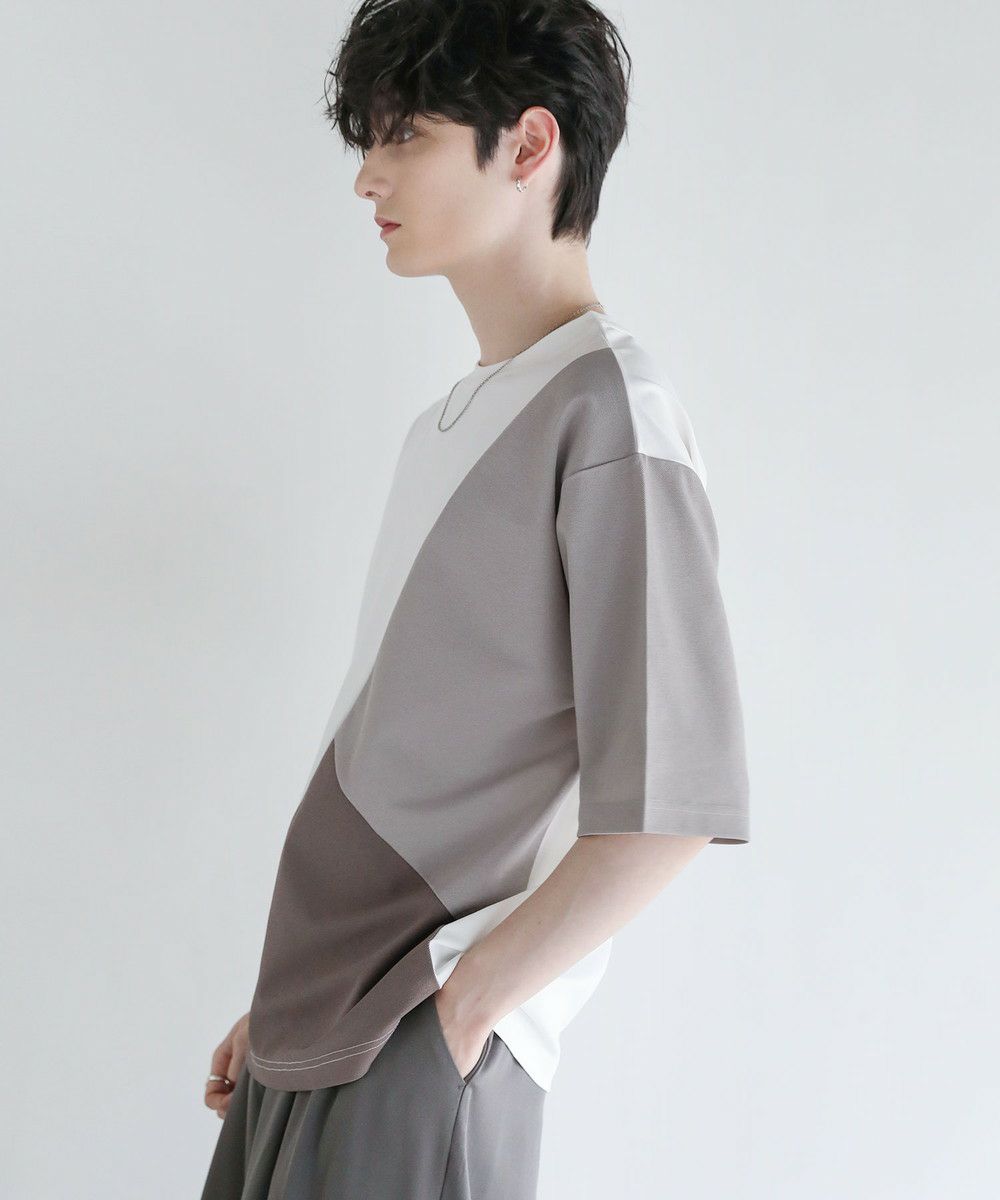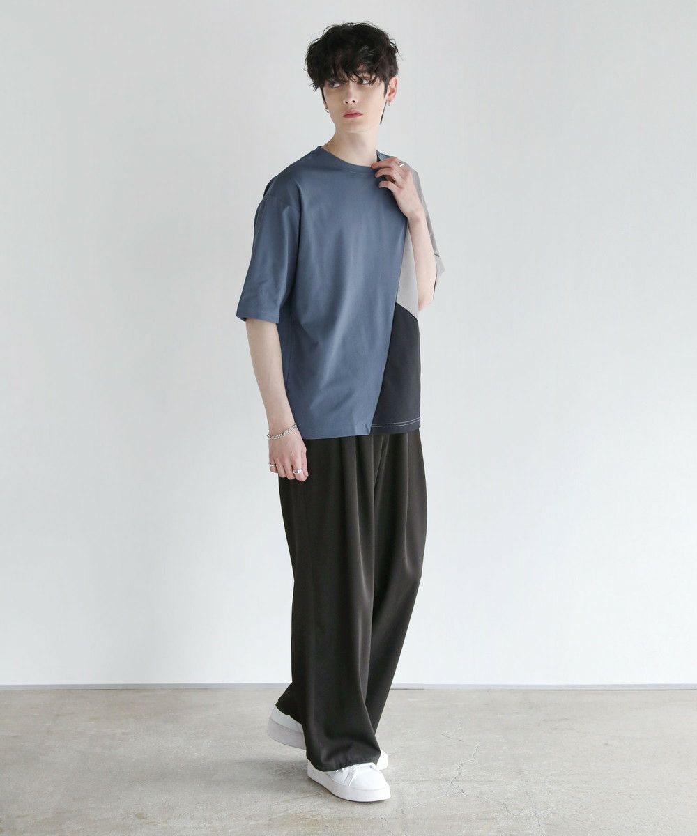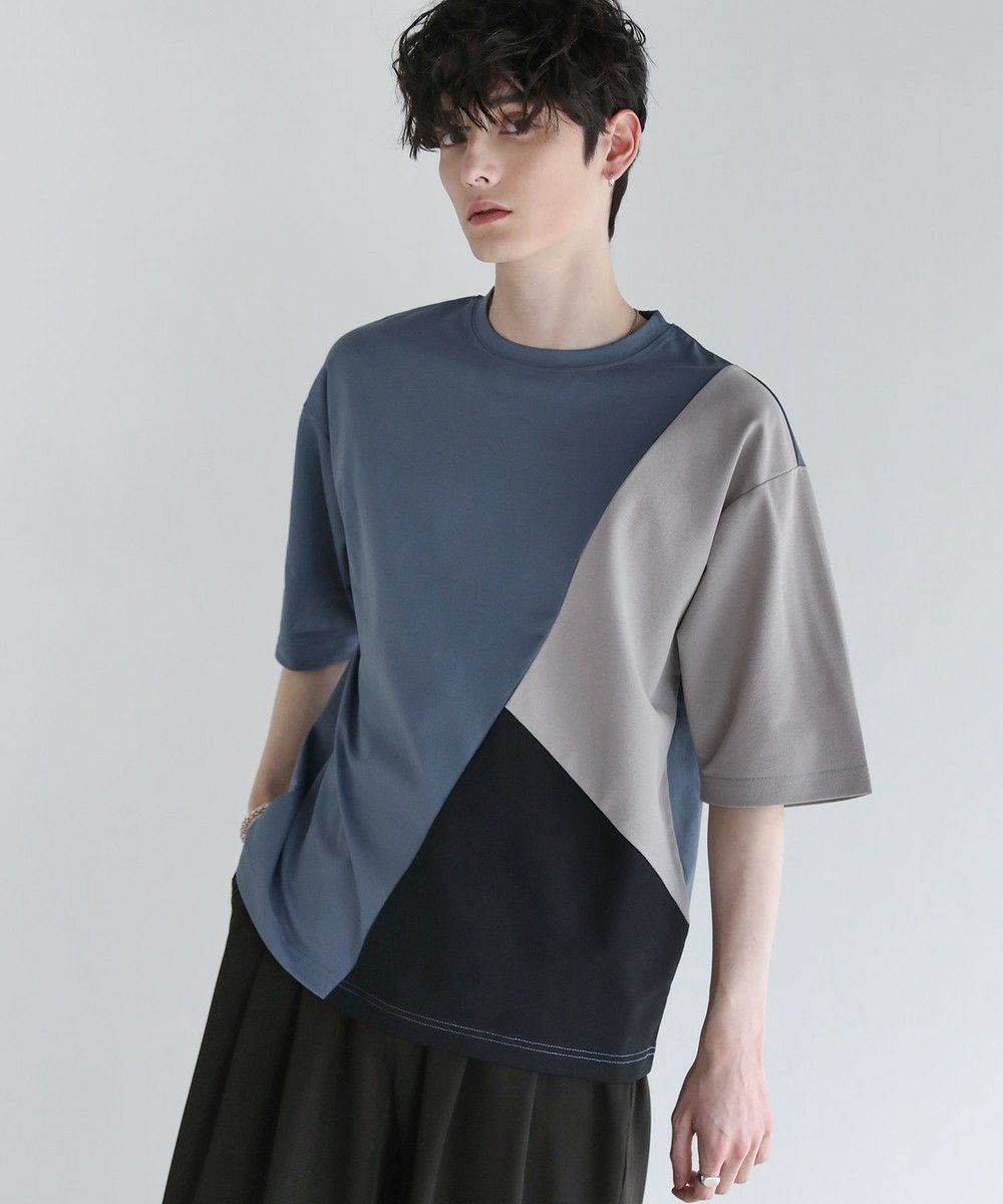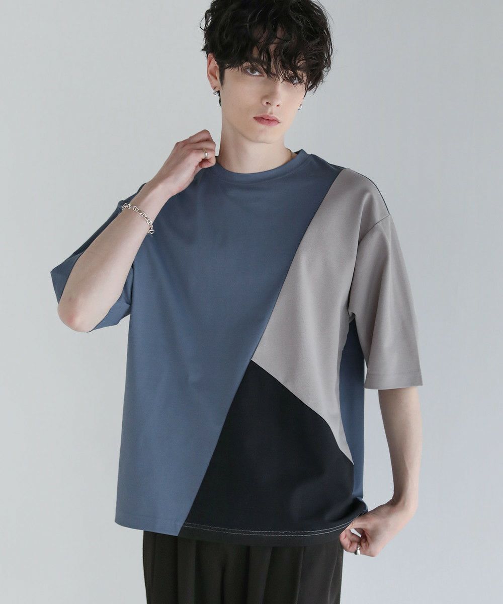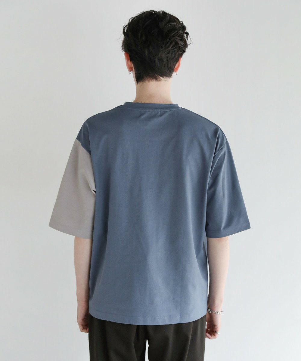 配色部分に手触りの違う異素材生地を使った、お洒落な切り替えデザインが特長のアイテム。さらに接触冷感、速乾、UVカットなど多機能を盛り込み、汗ばむ季節に大活躍のTシャツに仕上げました。ドロップショルダーに長めの袖丈がトレンドのオーバーサイズ感を演出します。派手過ぎず着回しやすいバイカラーのホワイト、スミクロに、存在感抜群なブルー、ホワイト系2を加えた4色展開。カラーによって雰囲気が変わるので、色違いで複数枚持っておくのもおすすめです。