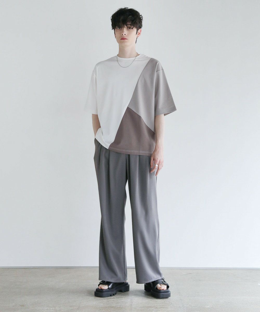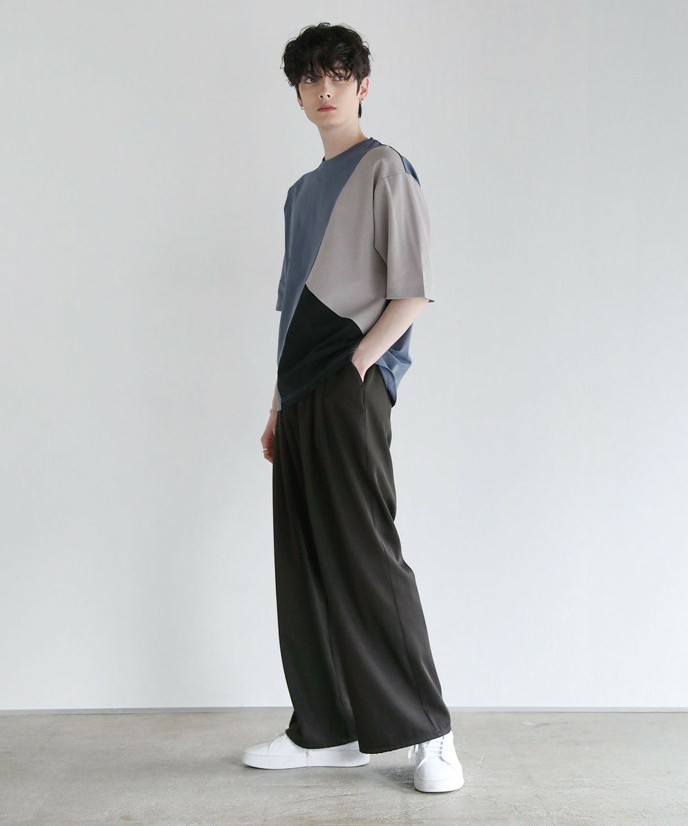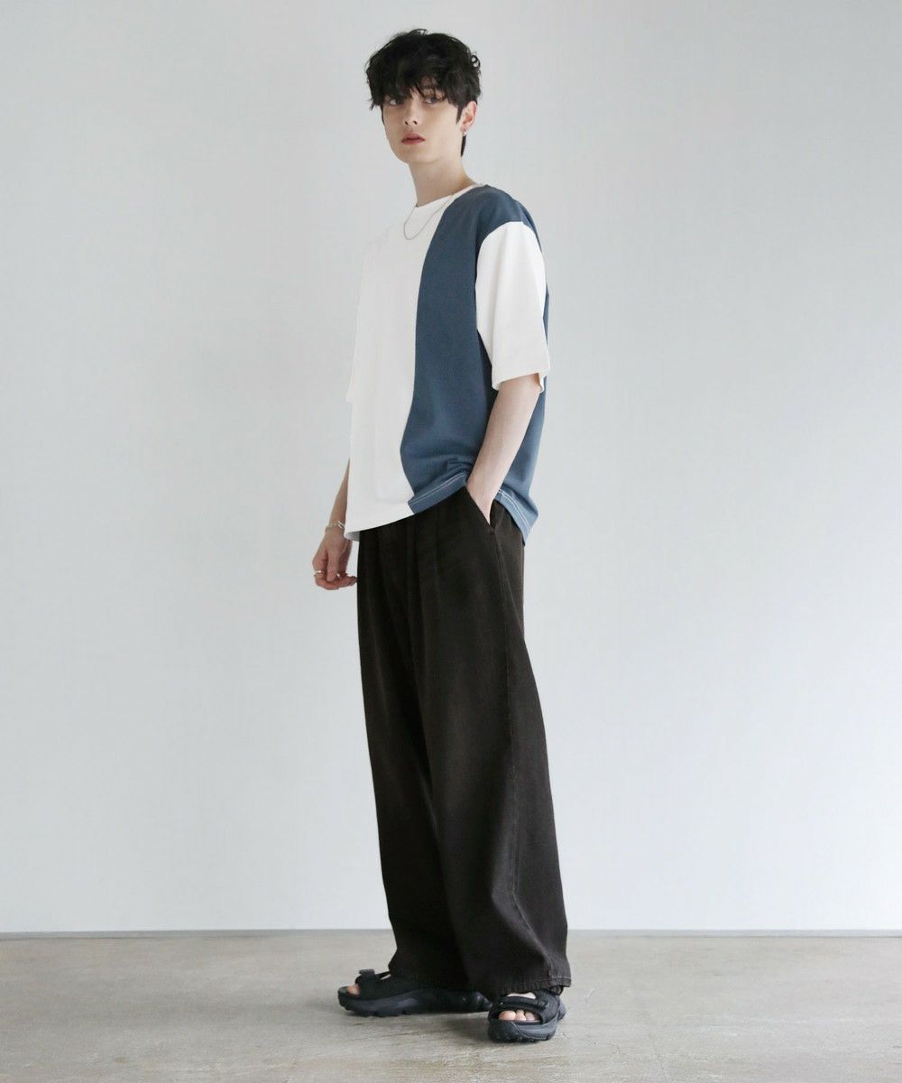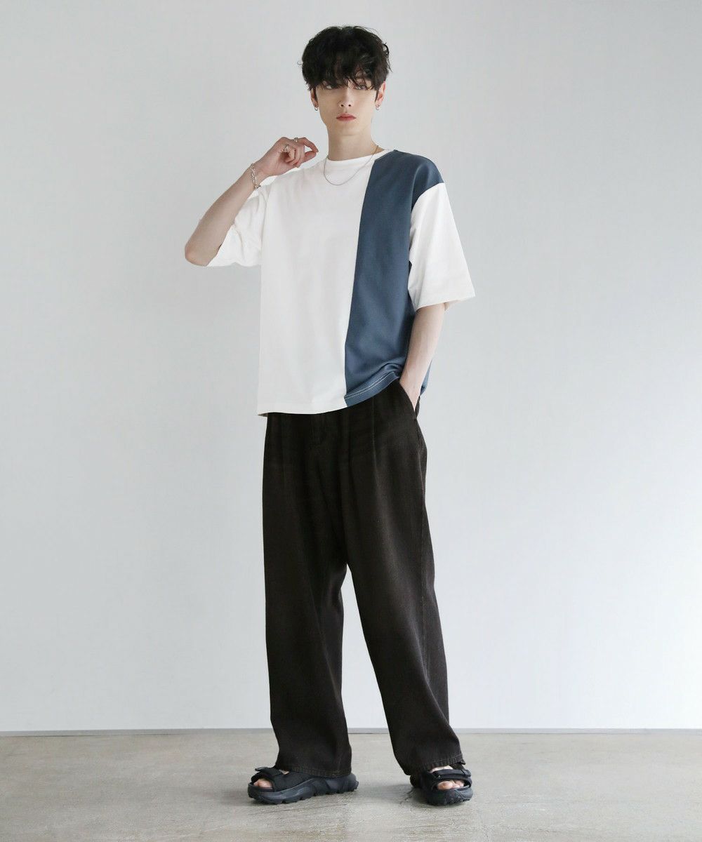 配色部分に手触りの違う異素材生地を使った、お洒落な切り替えデザインが特長のアイテム。さらに接触冷感、速乾、UVカットなど多機能を盛り込み、汗ばむ季節に大活躍のTシャツに仕上げました。ドロップショルダーに長めの袖丈がトレンドのオーバーサイズ感を演出します。派手過ぎず着回しやすいバイカラーのホワイト、スミクロに、存在感抜群なブルー、ホワイト系2を加えた4色展開。カラーによって雰囲気が変わるので、色違いで複数枚持っておくのもおすすめです。
