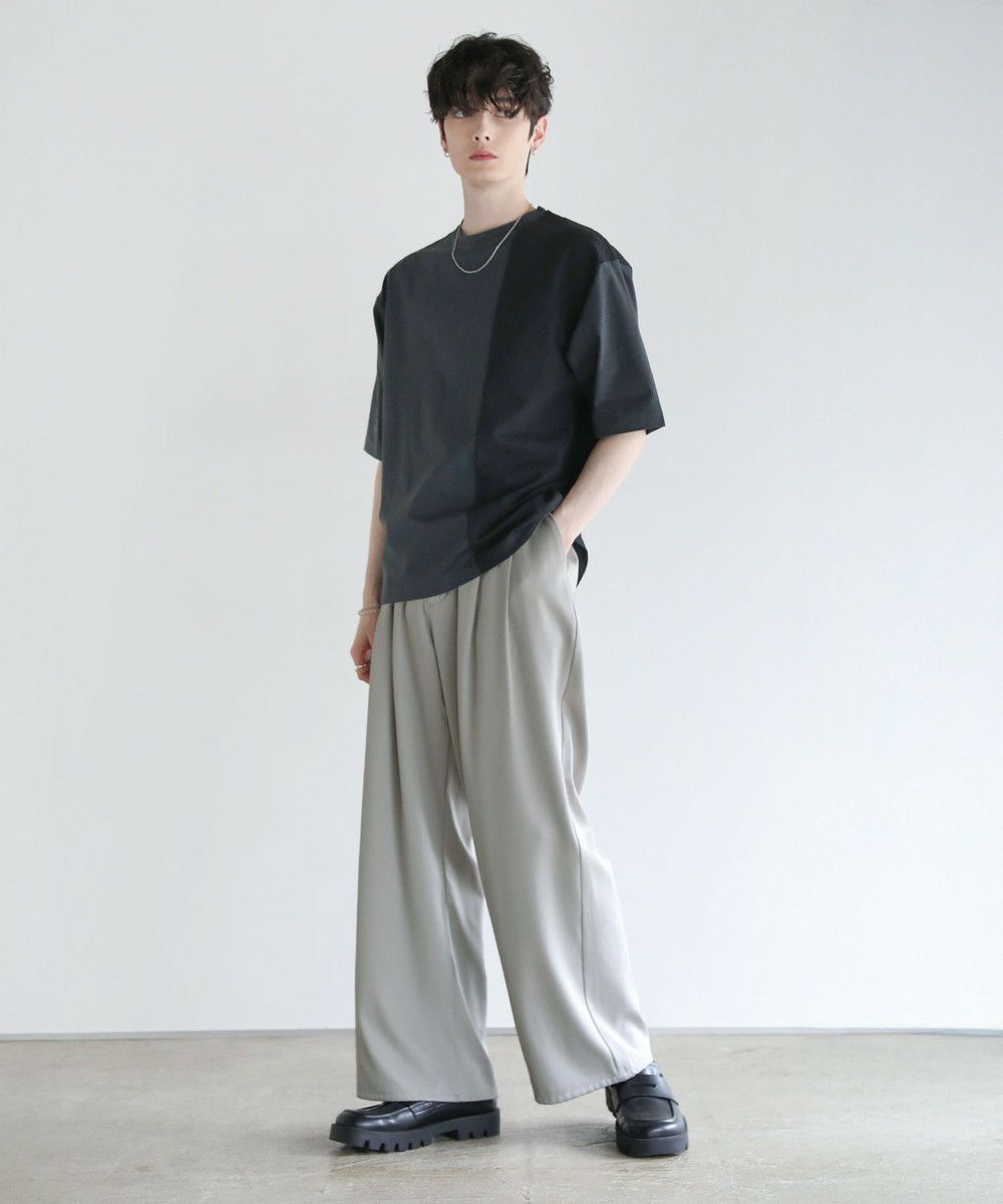 ゆったりとしたサイズ感のため、パンツもリラクシーなスラックスやワイドパンツを合わせるのがおすすめ。夏らしい涼し気な素材感とデザイン性の高さで、シンプルになりがちな夏のコーデに華やかさをプラスしてくれます。