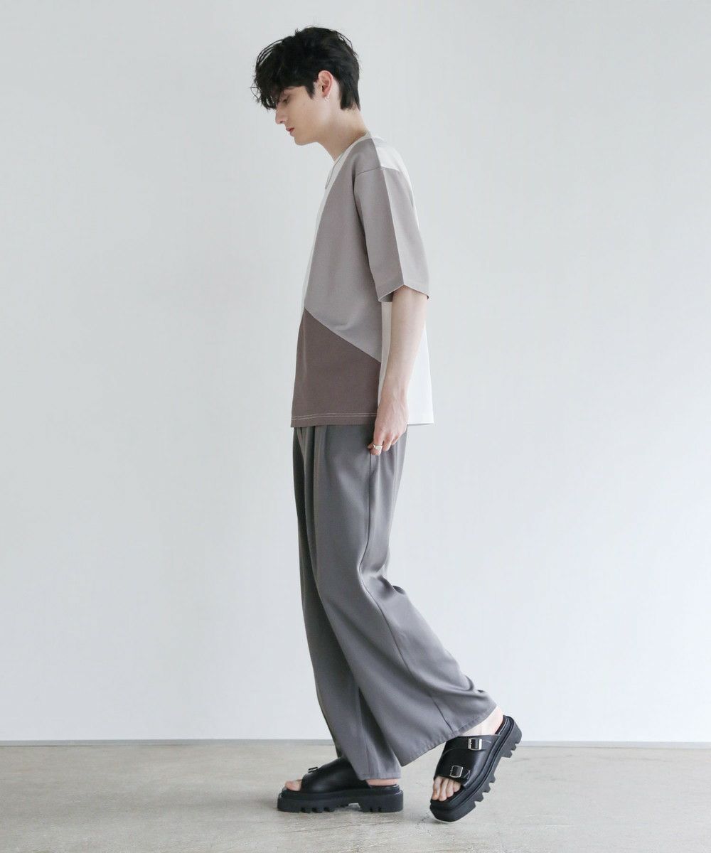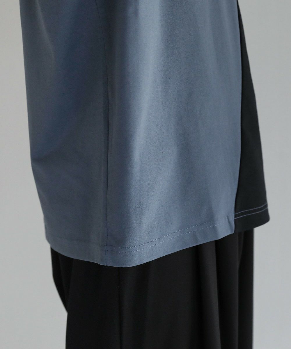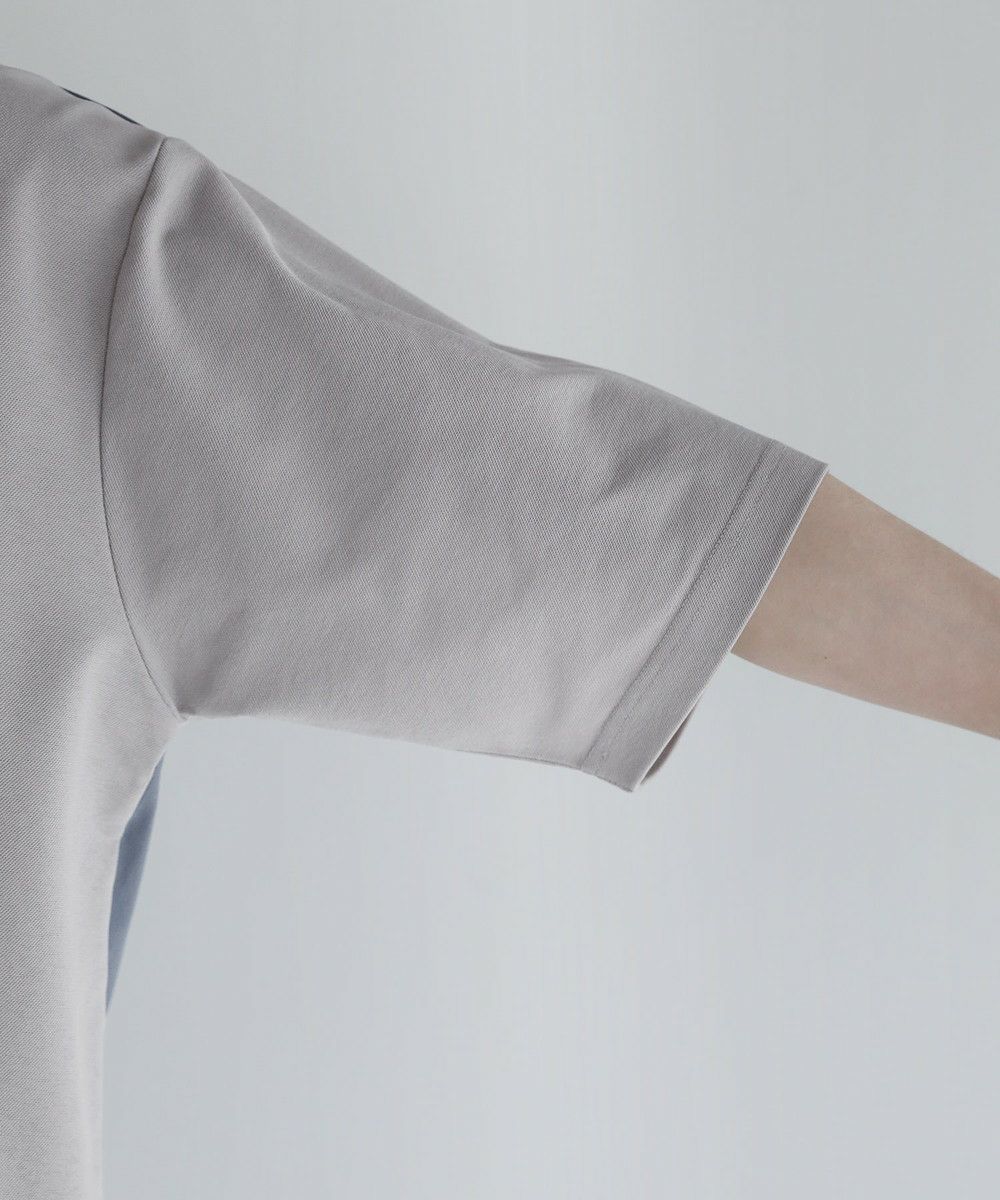さらっとした肌触りでハリ感のあるポンチ素材と、肌離れの良い異素材生地を張り合わせた表情豊かな生地です。夏でも快適に過ごせるひんやりとした接触冷感、ドライな着心地が続く吸水速乾、強い日差しから肌を守るUV機能付き。さらに洗濯機洗いが可能なイージーケア素材のため、汗ばむ夏のデイリーウェアとして気兼ねなくご着用いただけます。