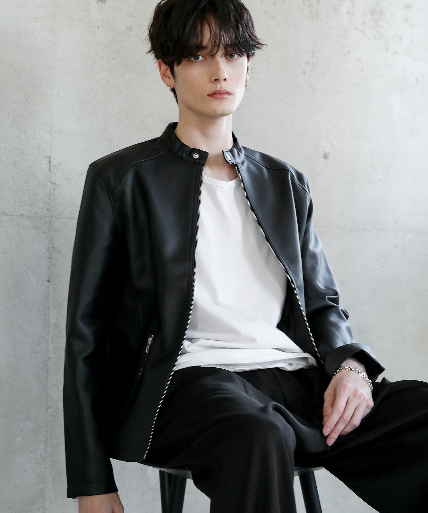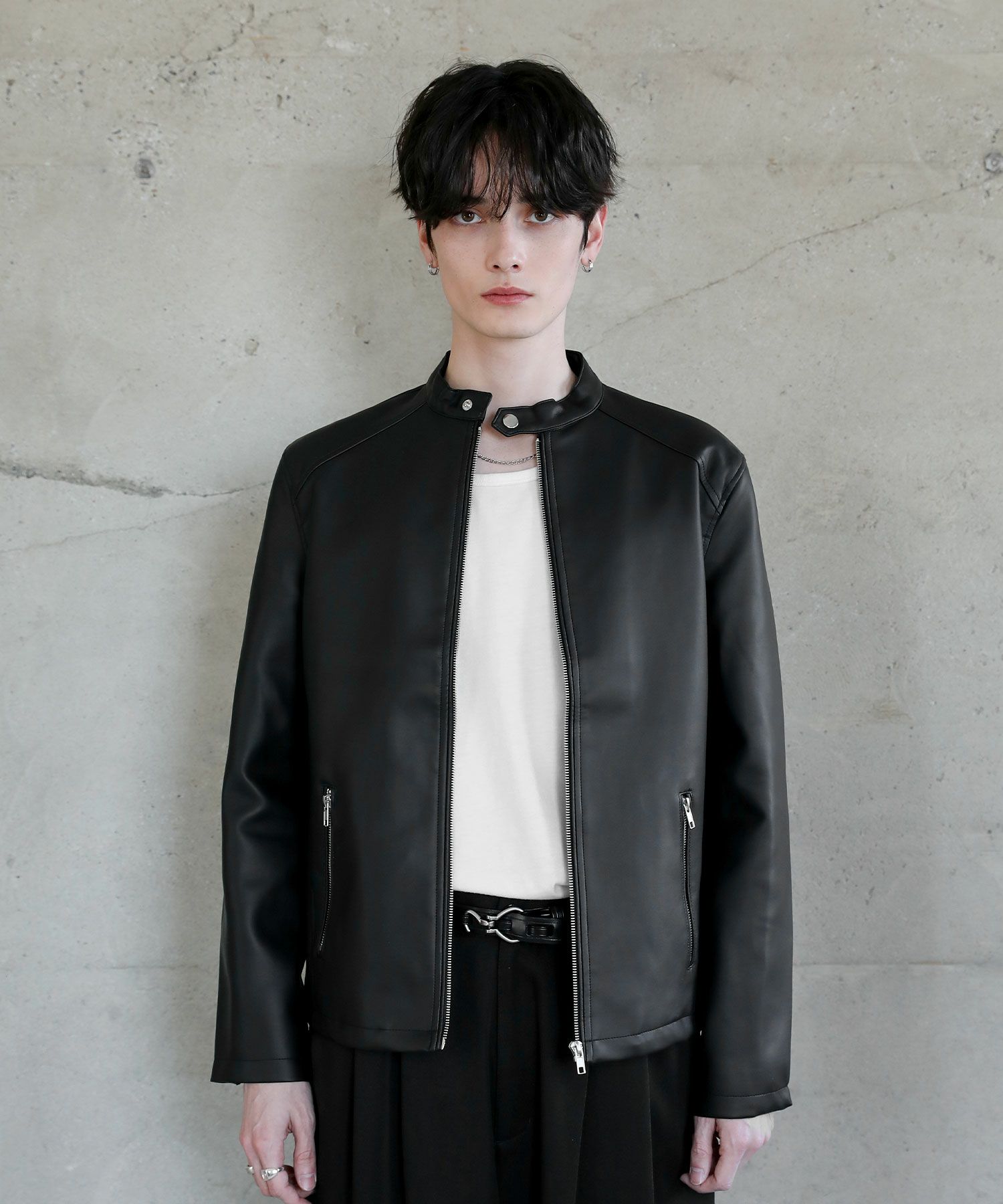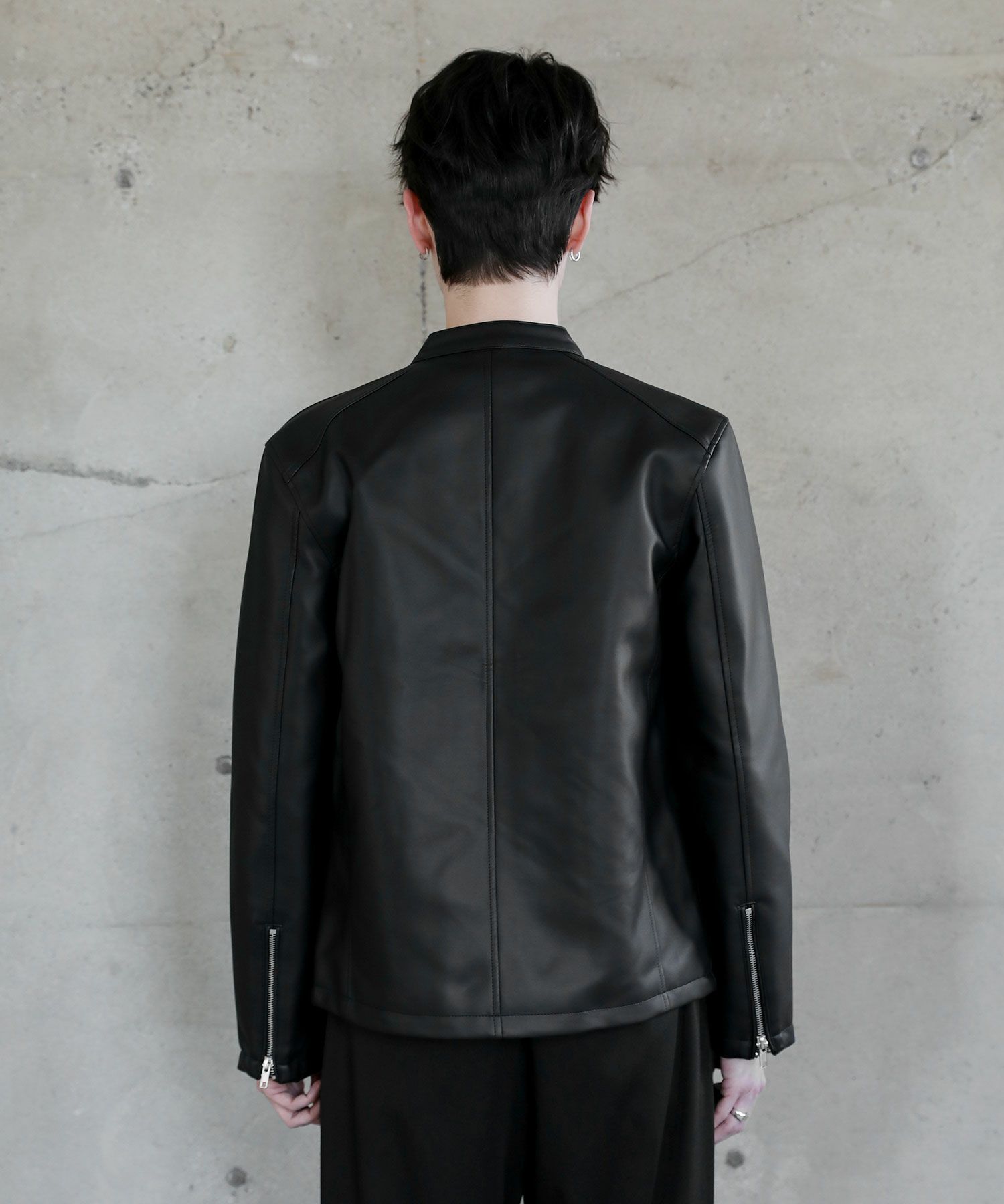 PUレザーシングルライダースジャケット