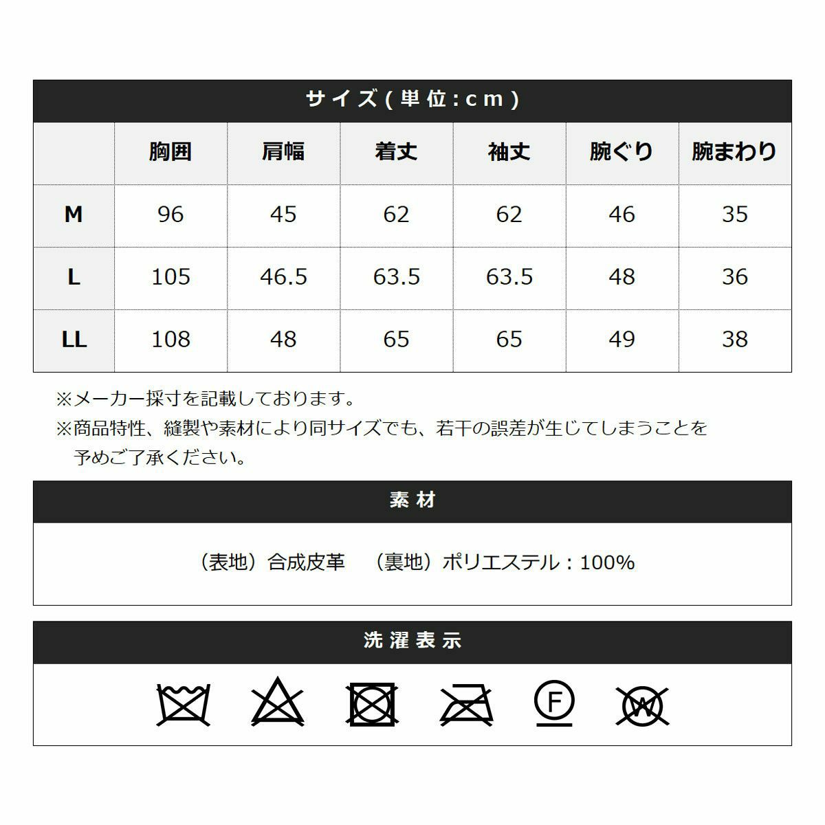 【表地】合成皮革 【裏地】ポリエステル:100%