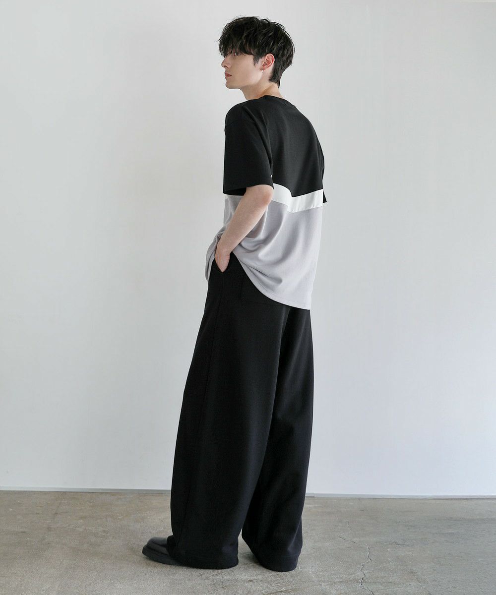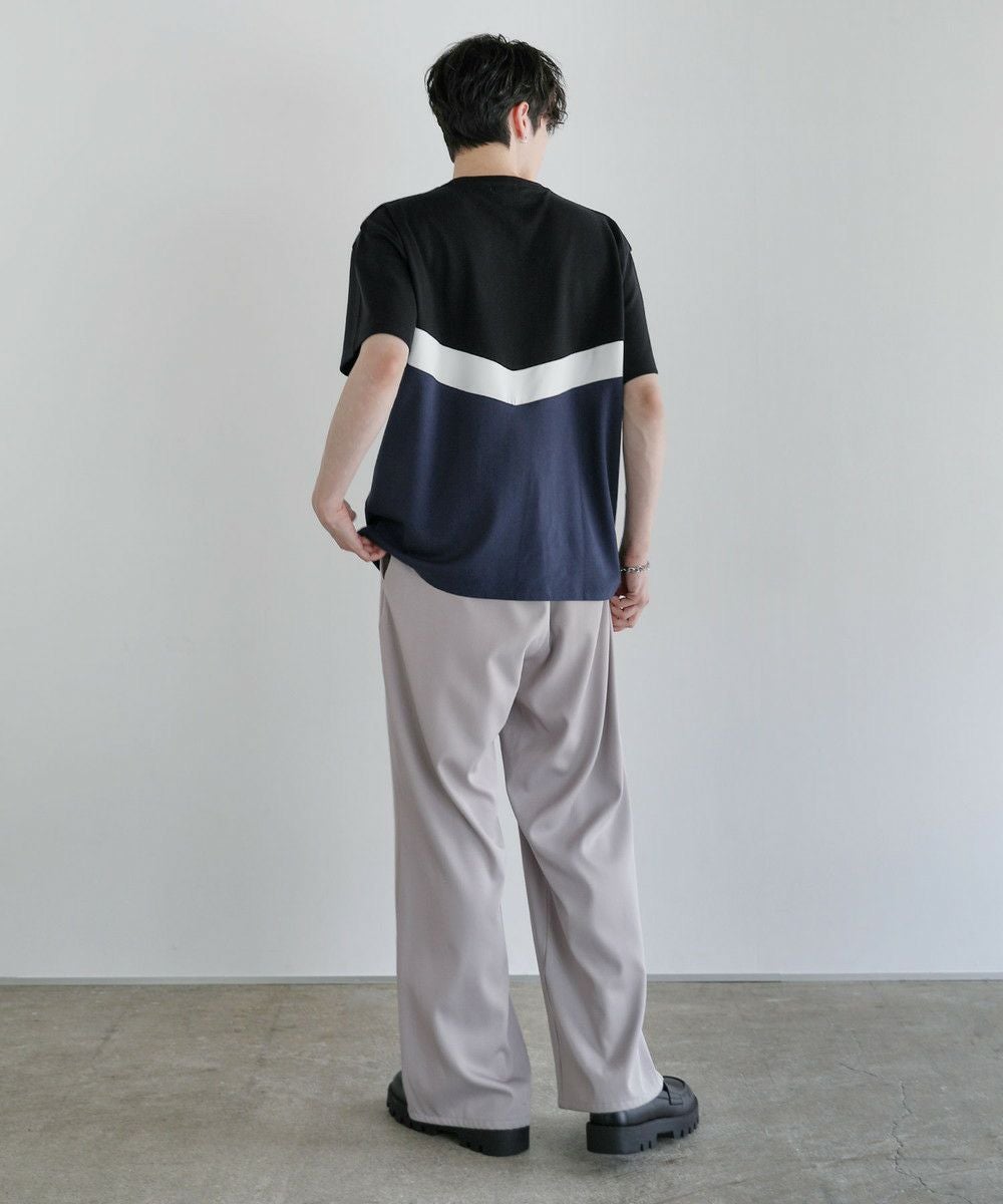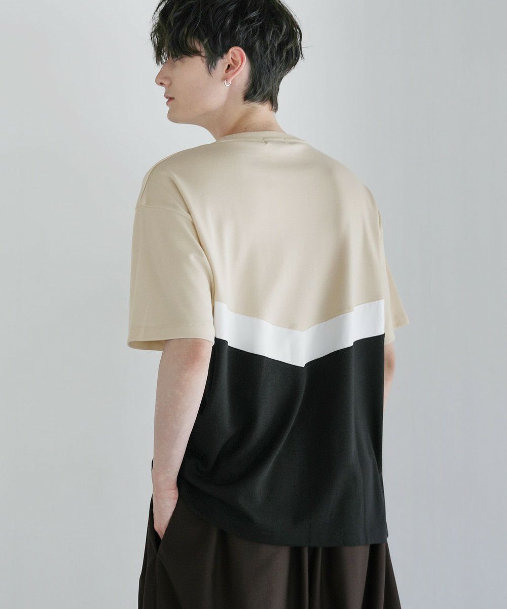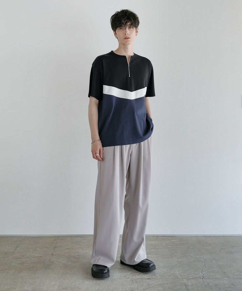 V字のホワイト部分にフェイクスウェード生地を使い、お洒落な切り替えデザインのTシャツに仕上げました。首元はベーシックなクルーネックタイプにハーフジップを施すことで着こなしの幅を広げてくれます。ゆとりのある身幅とドロップショルダーがトレンドのオーバーサイズ感を演出。落ち着いた色合いのベージュ×ブラック、ブラック×アイスグレー、ブラック×ネイビーの3色展開です。
