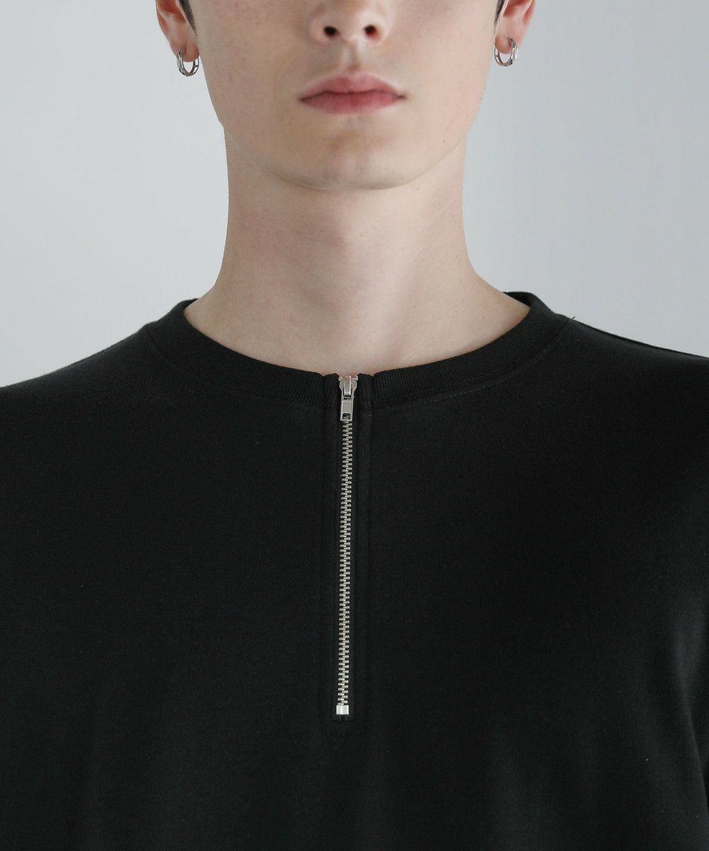 3. ポンチ×フェイクスウェードVCUT切替ハーフジップTシャツ