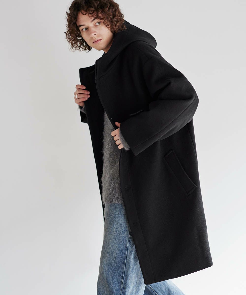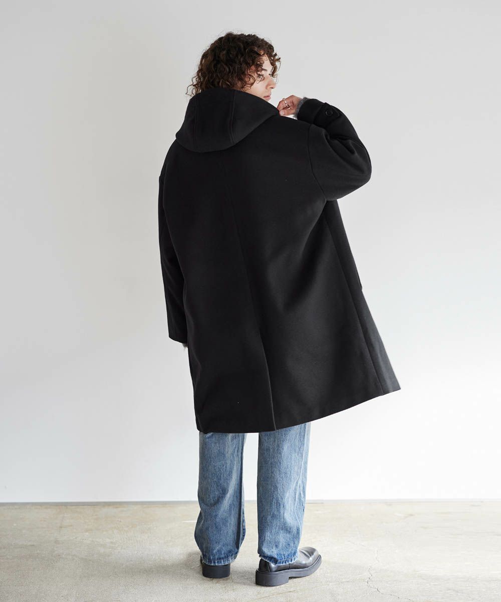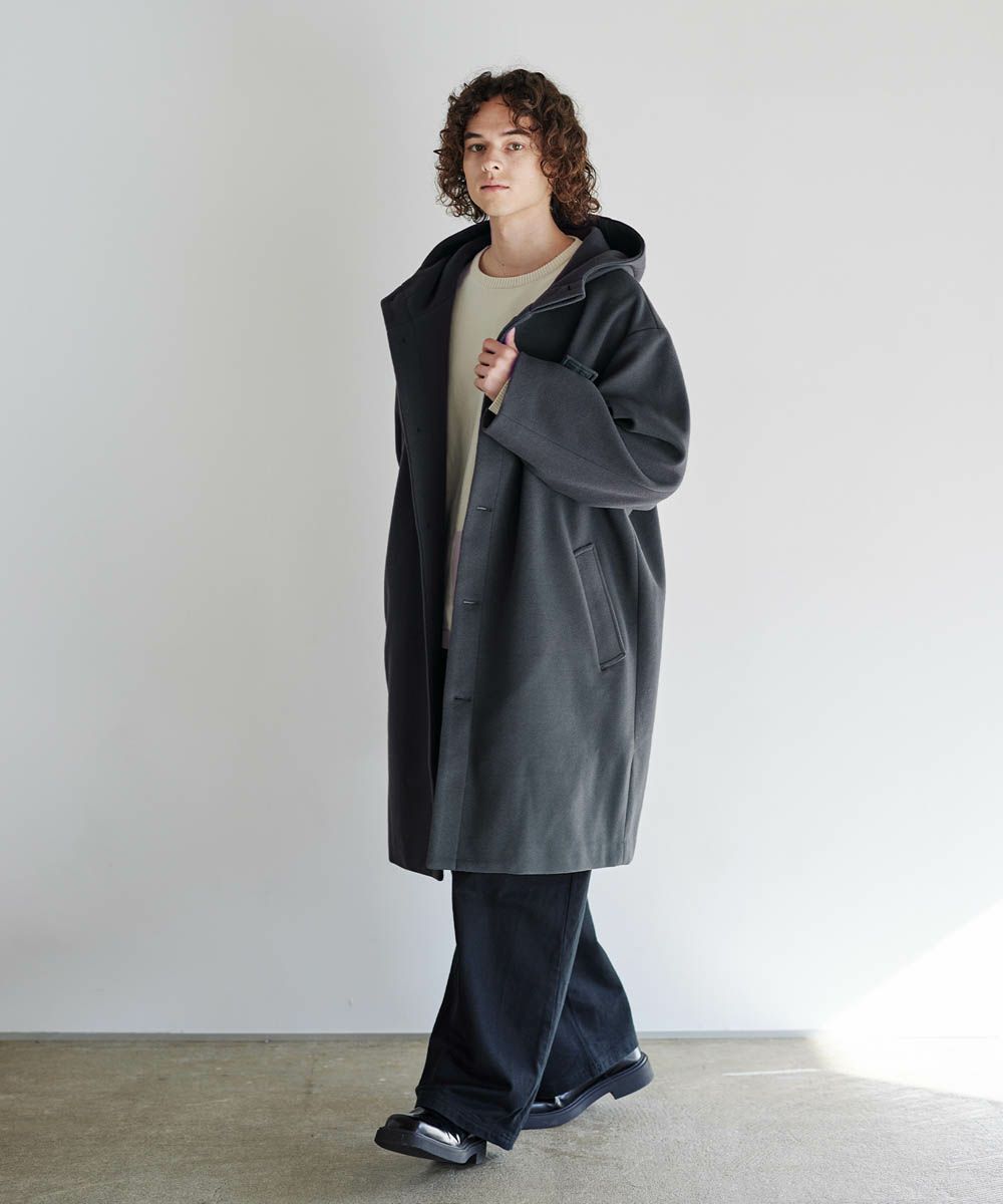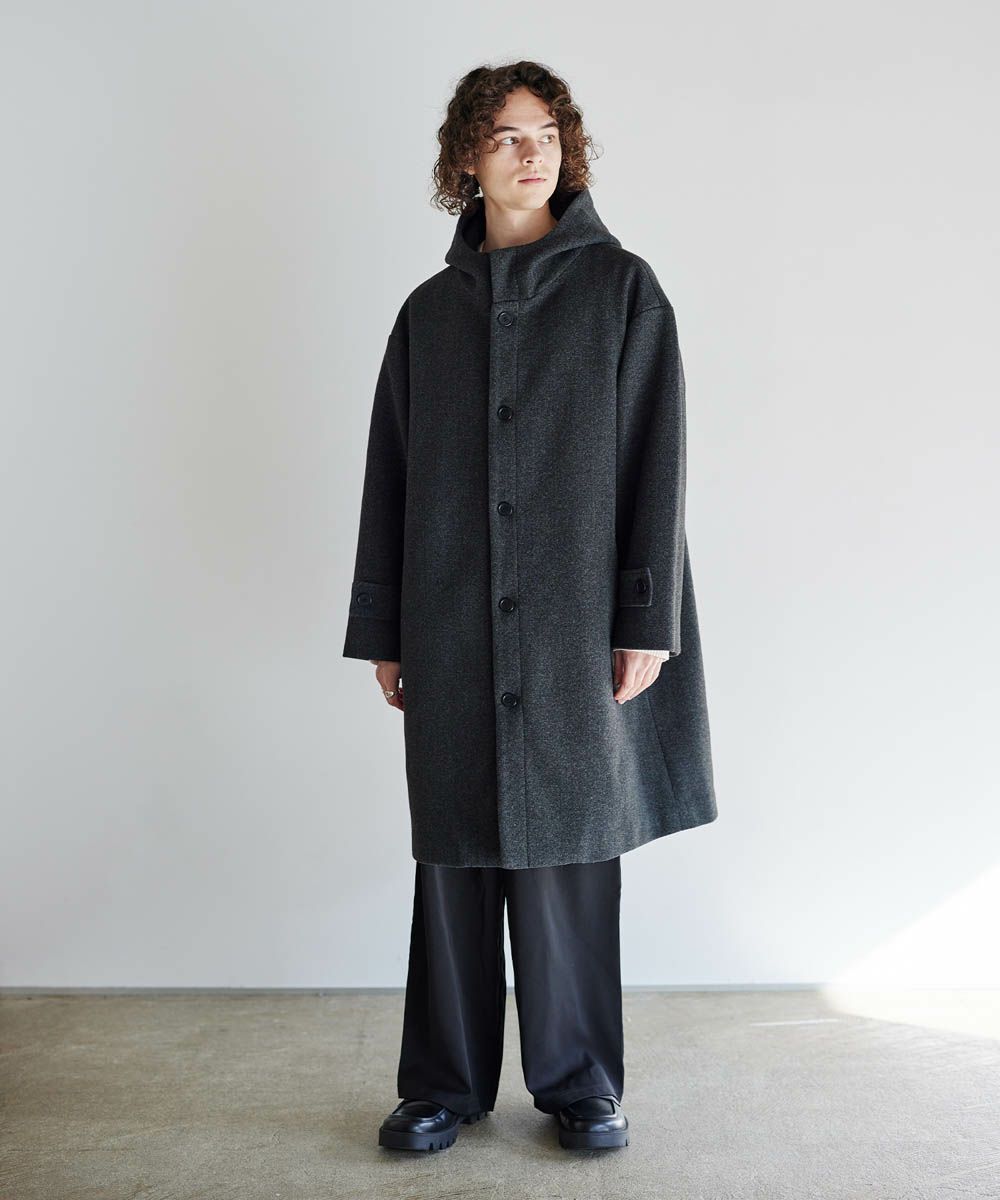 メルトン生地で仕立てた、キレイめカジュアルに着回しが楽しめるフーデッドコート。