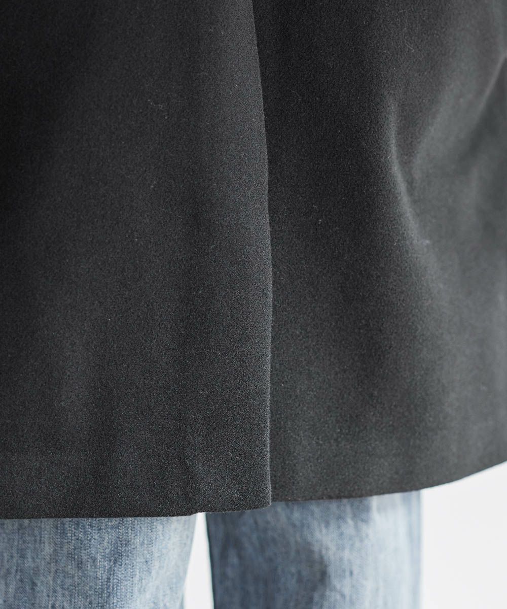 ポリエステル100%のメルトン素材を使用しています。ウールの入っていないメルトンなのでチクチク感がなく、肌に優しい質感です。起毛感のあるメルトン素材は温かみを感じさせ、見た目にも季節感を演出してくれます。