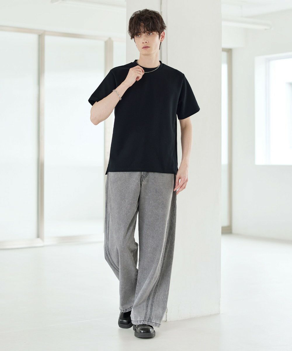 膨らみ感のある優しい着心地のポンチ生地を採用。生地表面はさらっと滑らかで、ヘビーウェイトでありながらもキレイめな表情です。さらに肌に触れるとひんやり感じられる接触冷感機能、抗菌防臭加工も施しました。素材の綿による吸湿性の高さと抗菌防臭機能が合わさり、汗ばむ季節の着用でも清潔感が続きます。ストレッチ性にも富んでおり、着心地の良さも抜群。見た目の良さだけでなく、機能面にも優れた生地です。