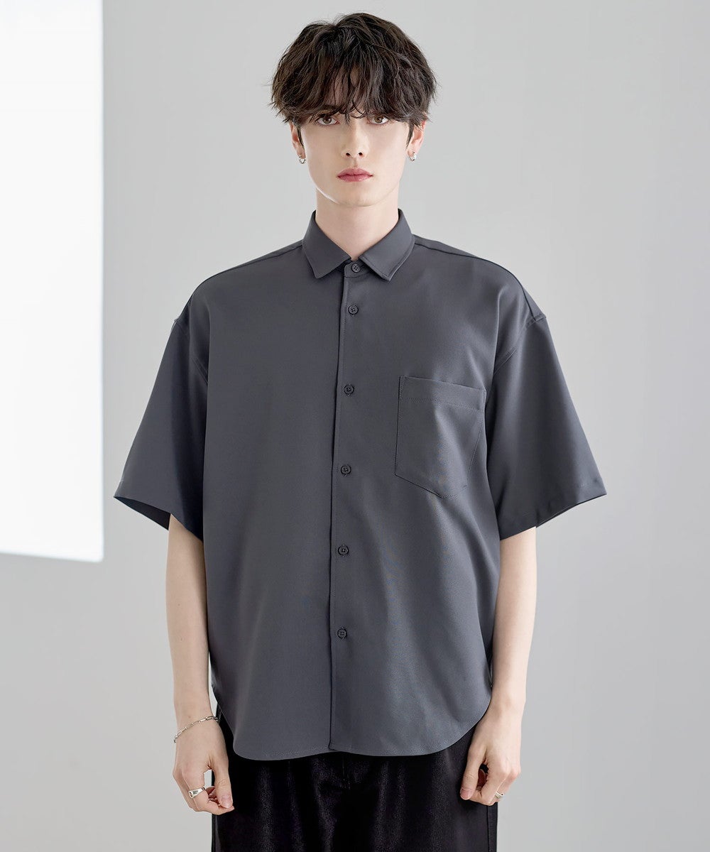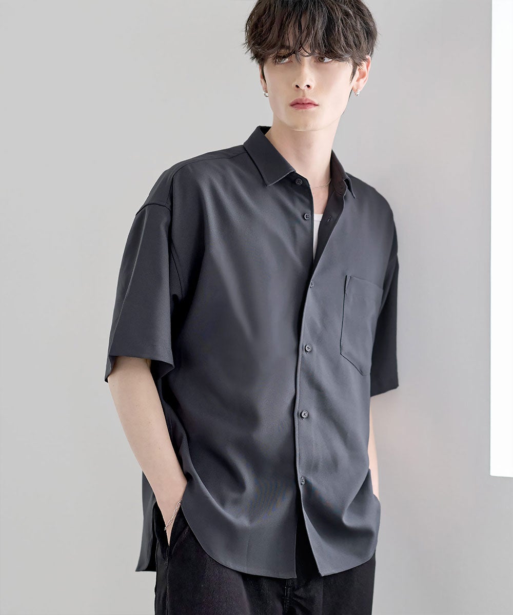 ミニマルなデザインで着回し力の高い、レギュラーカラーのベーシック半袖シャツ。程よくゆとりを持たせたシルエットが、抜け感のあるリラックスした印象を演出します。装飾を抑えたシンプルなルックスに、胸ポケットをさりげないアクセントとしてプラス。クリーンな表情で、カジュアルからきれいめまで幅広いスタイリングに馴染みます。一枚着としてはもちろん、羽織としても使いやすい汎用性の高さが魅力です。シーンを問わず活躍する、ワードローブに取り入れておきたい定番アイテム。