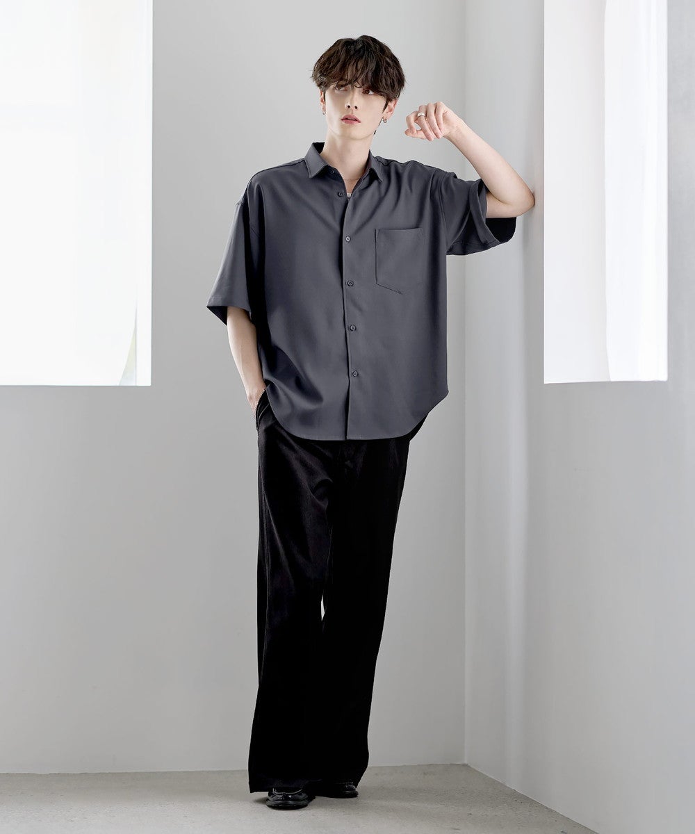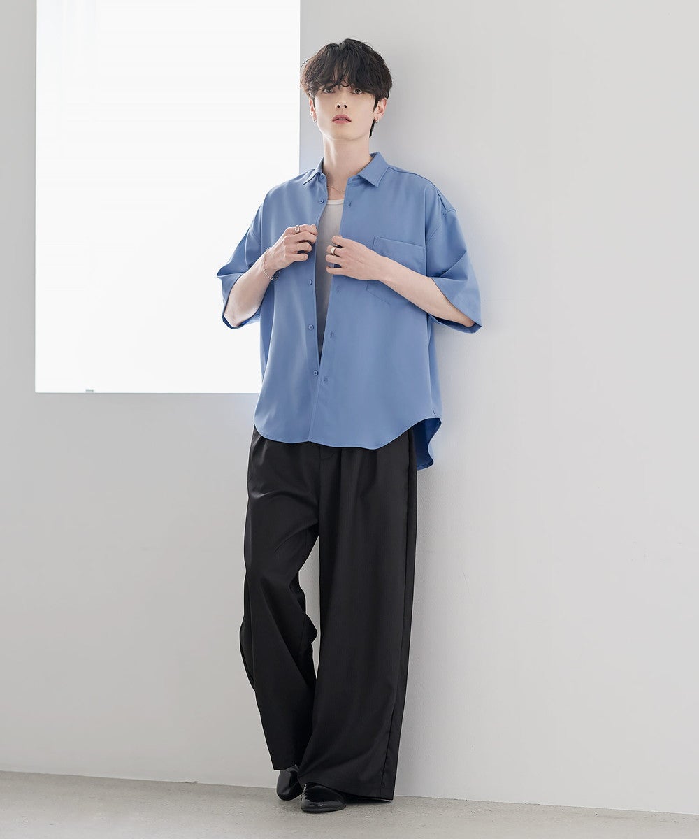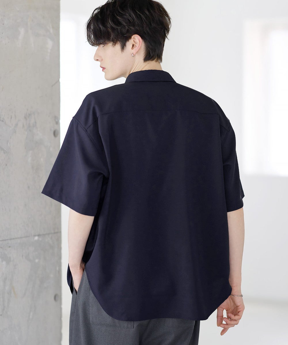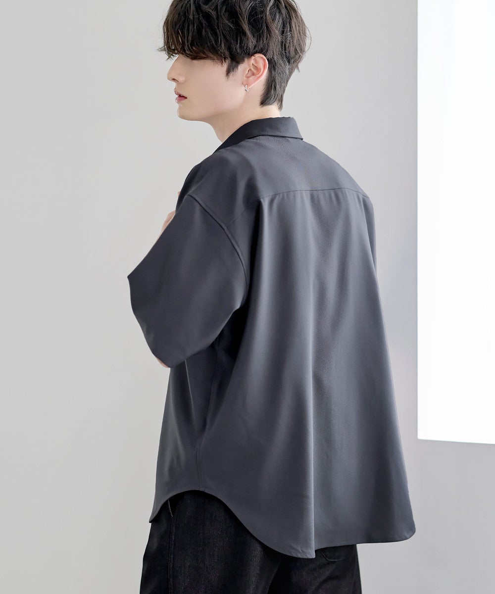 ポリエステルをベースにした軽やかなシャツ生地を使用。さらっとした肌触りと程よい落ち感が特徴で、上品な印象に仕上がっています。接触冷感機能により、肌に触れた際にひんやりとした着心地を実感でき、暑い季節でも快適に着用可能。さらに防シワ性にも優れており、お手入れがしやすく、きれいな見た目をキープしやすいのもポイントです。