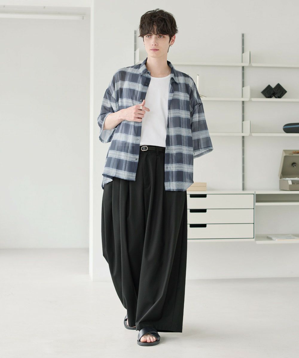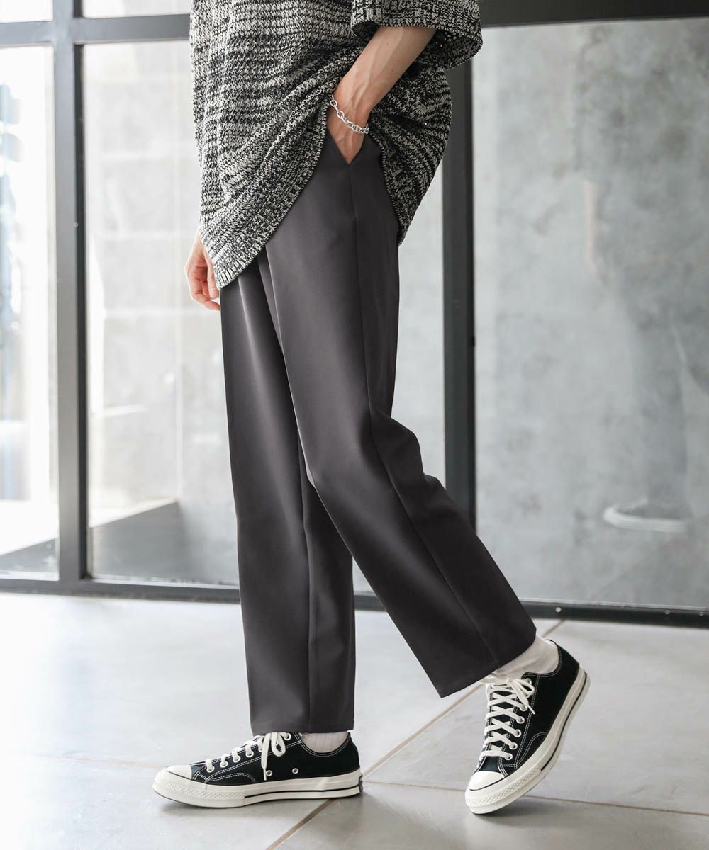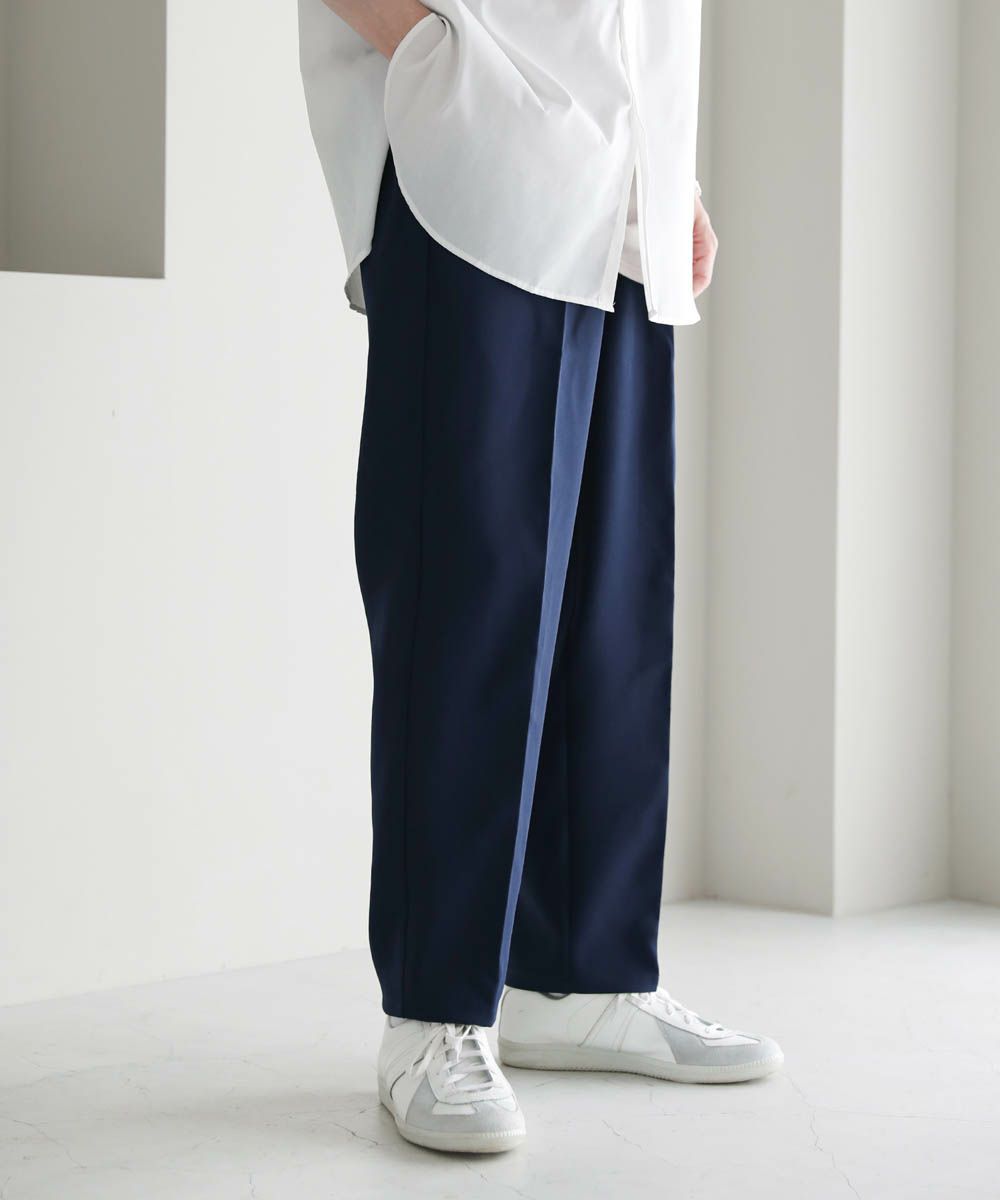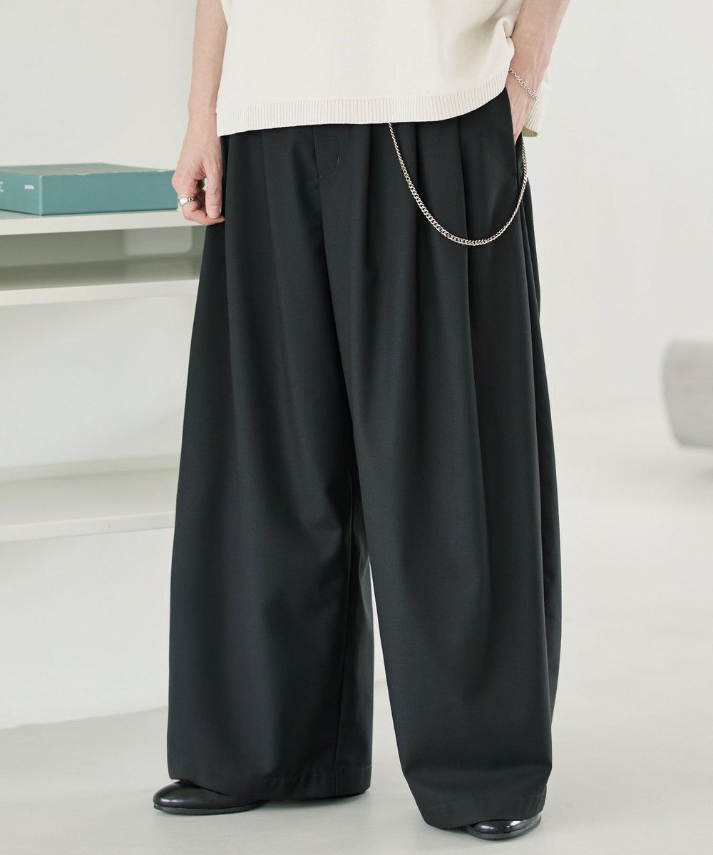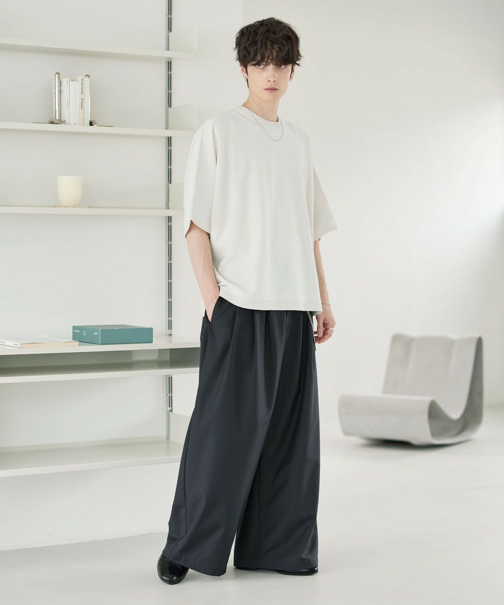 2タックワイドバギーデニム/シンセティックレザーパンツ