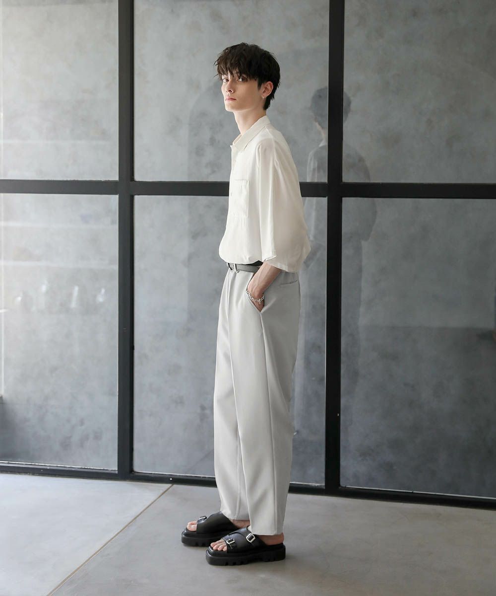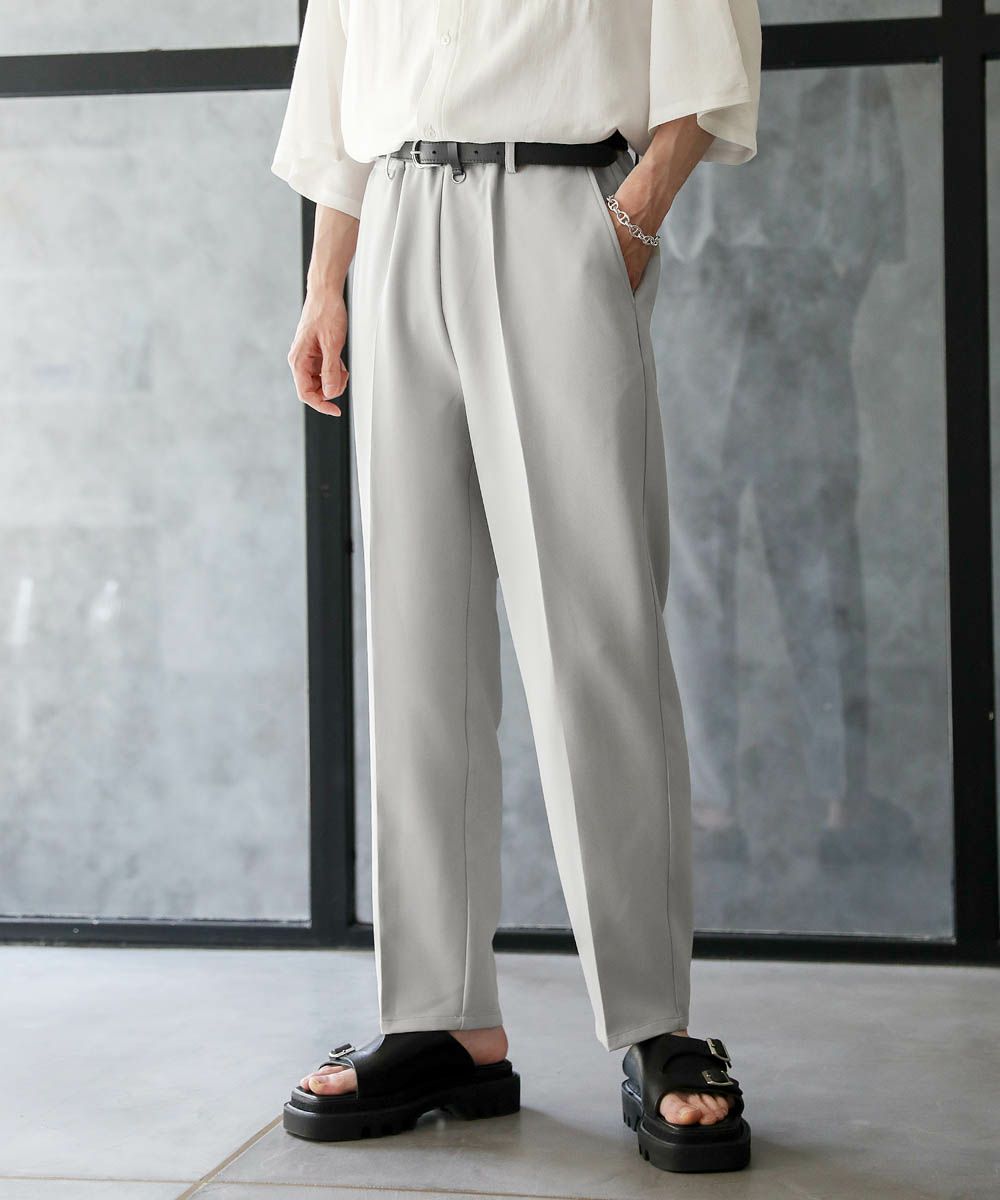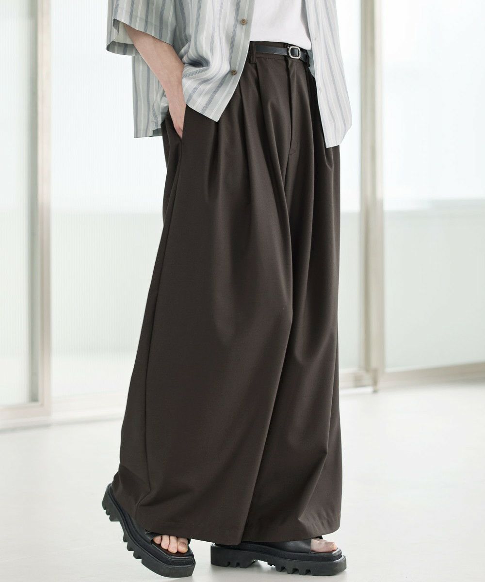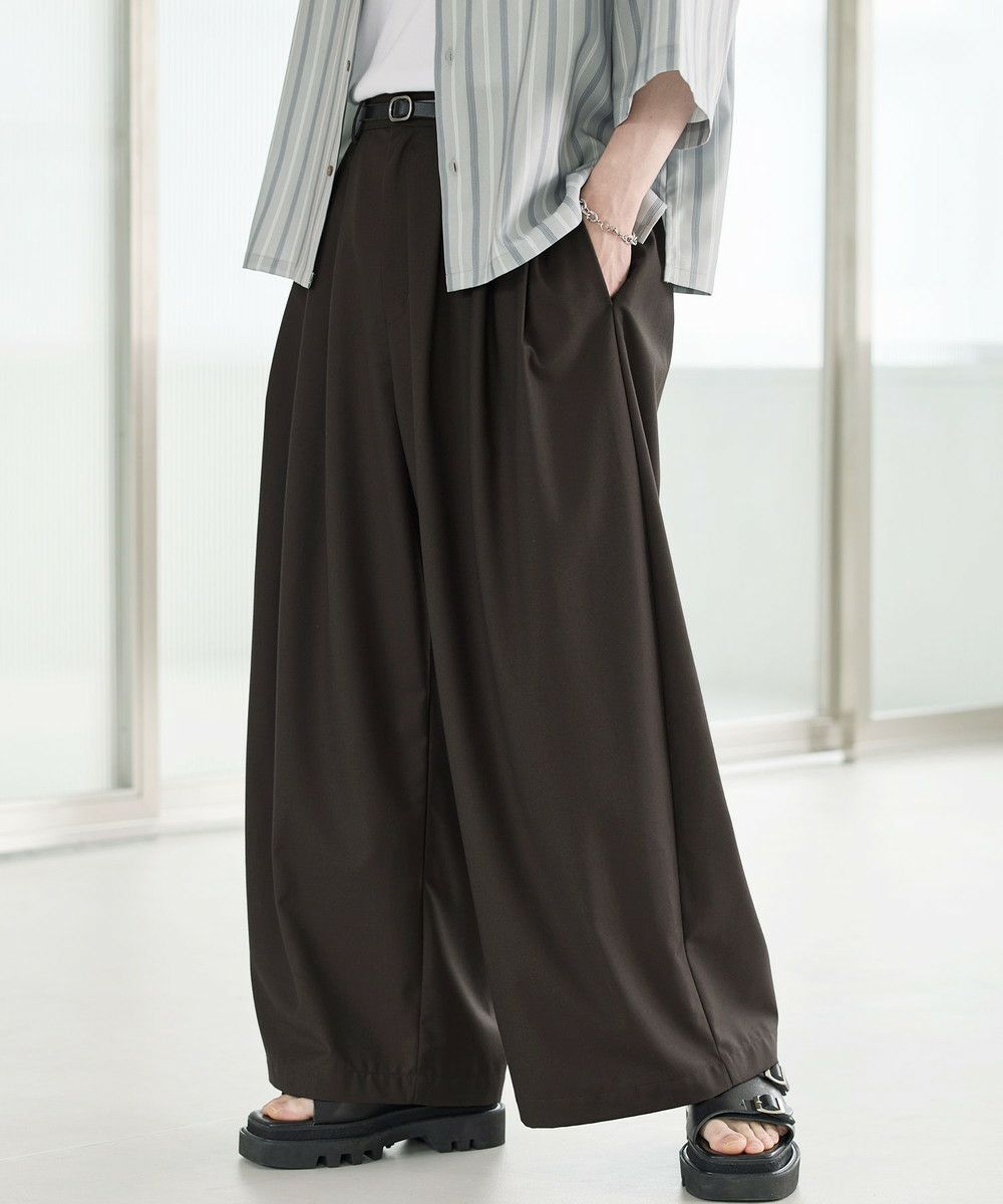 2タックワイドバギーデニム/シンセティックレザーパンツ
