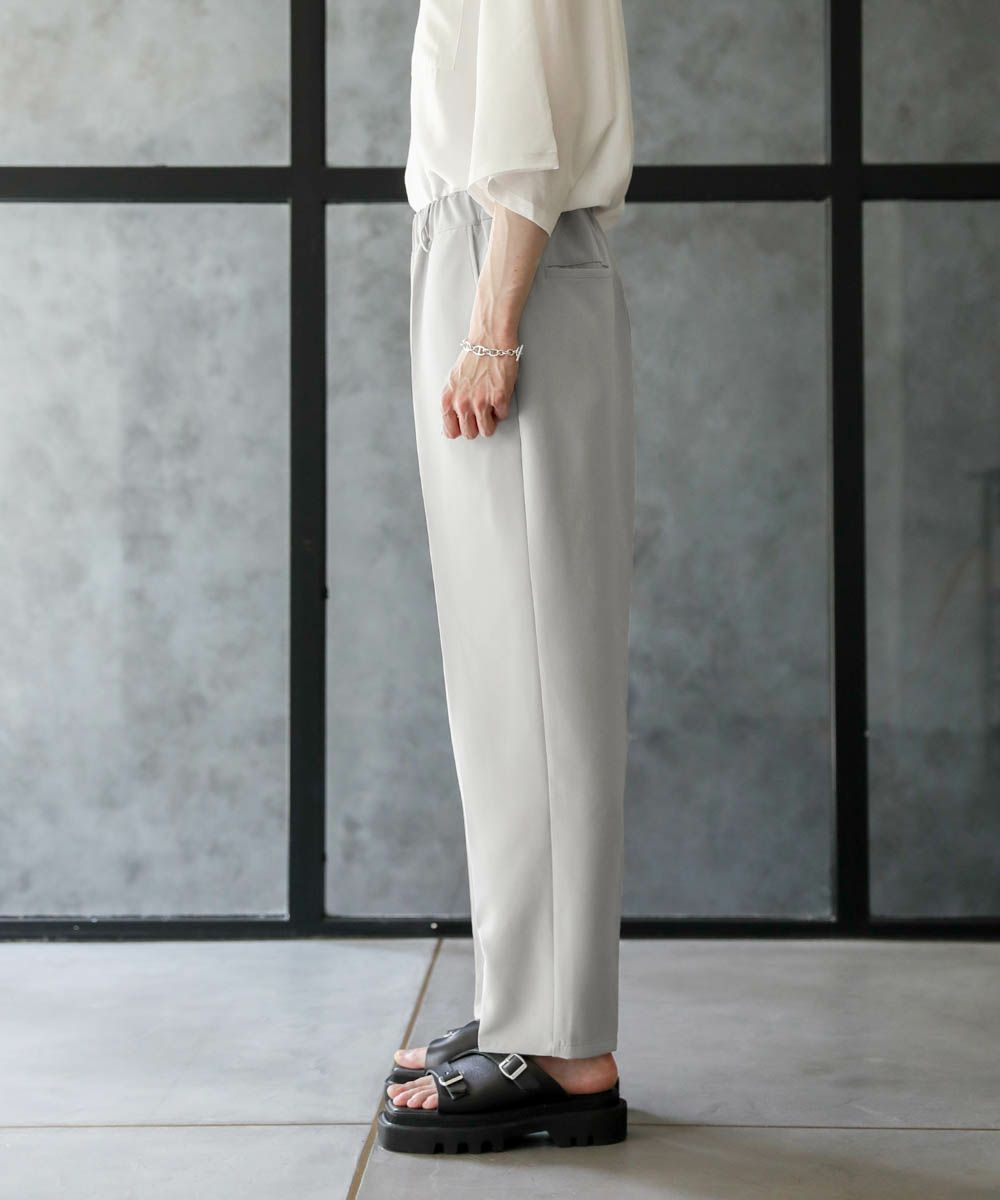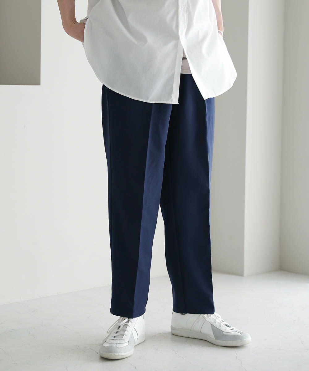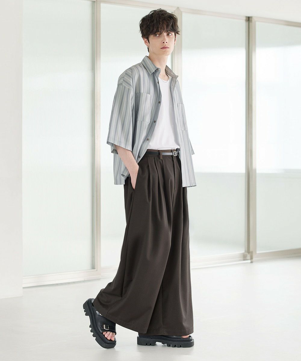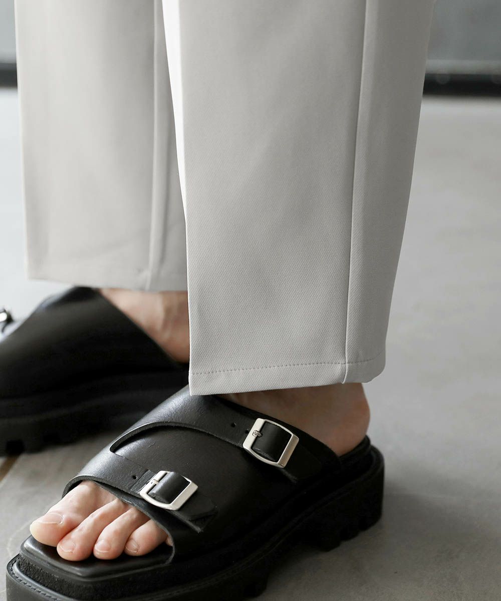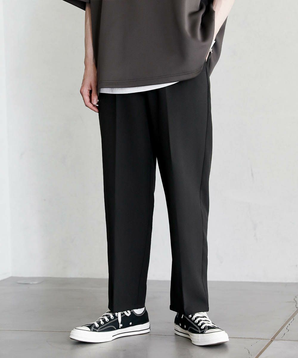 2タックワイドバギーデニム/シンセティックレザーパンツ