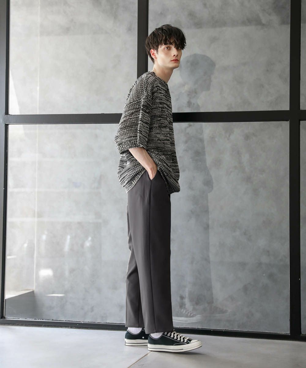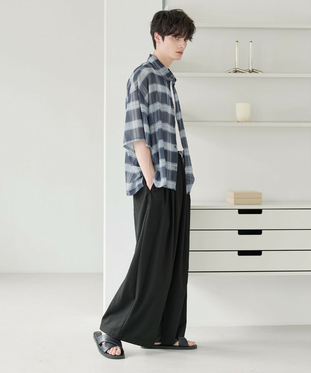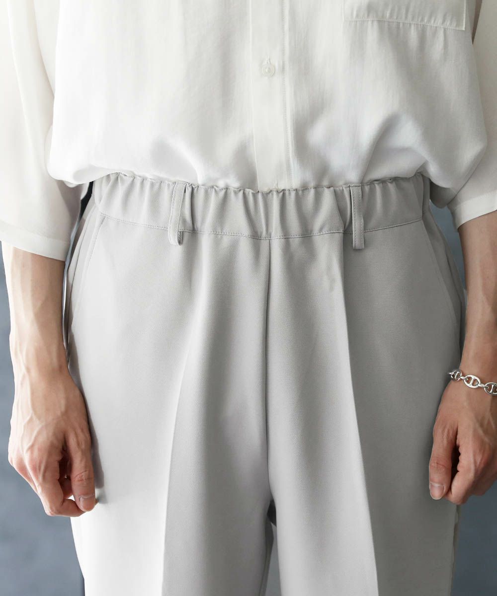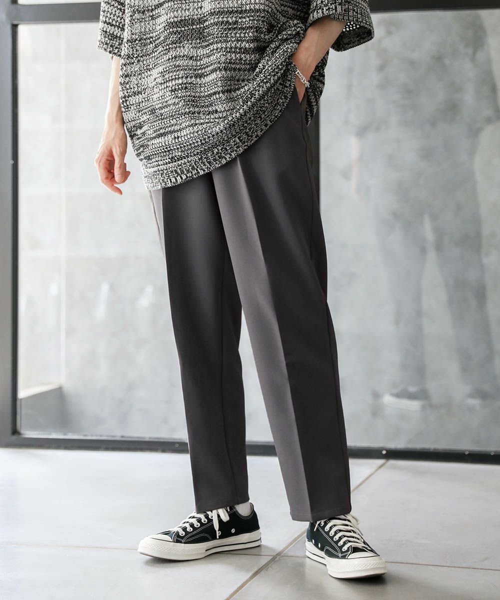 2タックワイドバギーデニム/シンセティックレザーパンツ