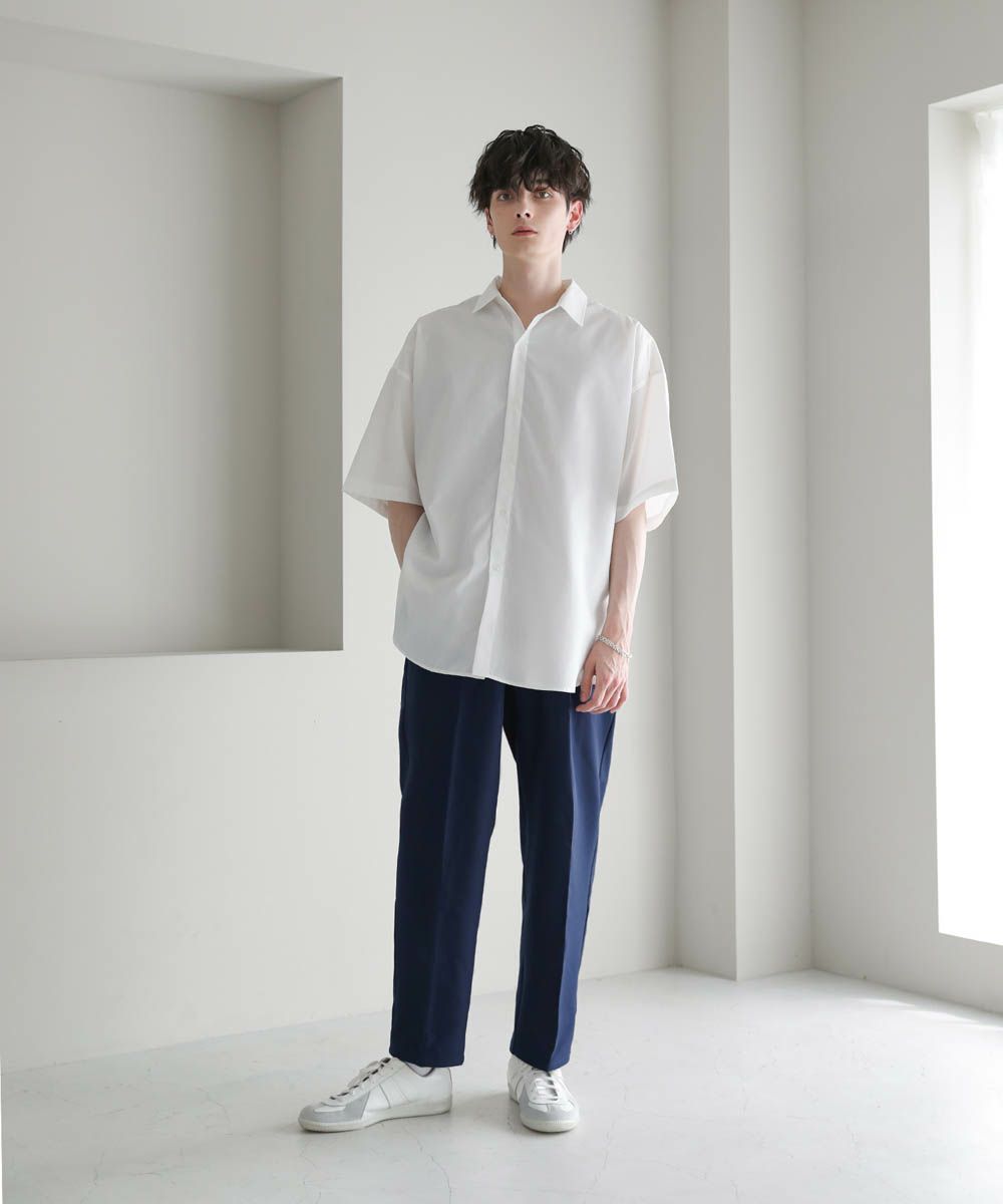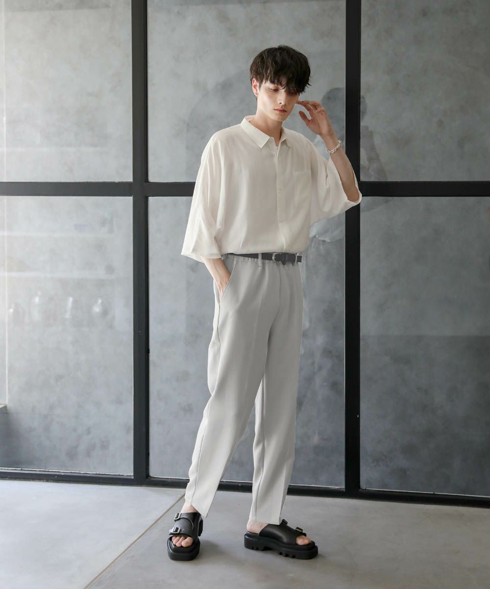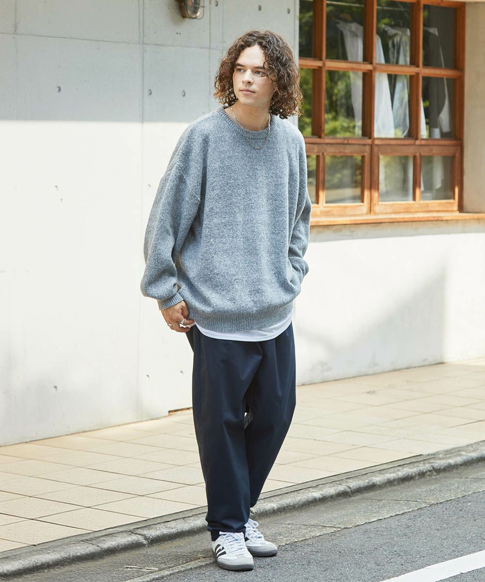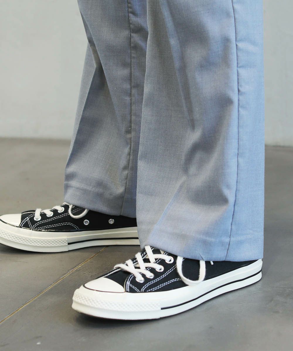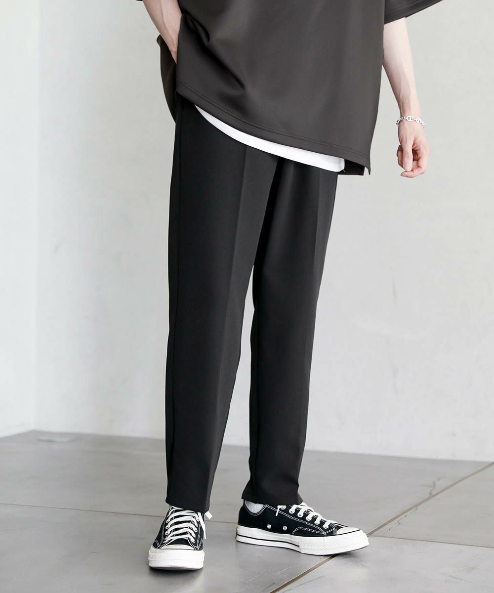 2タックワイドバギーデニム/シンセティックレザーパンツ