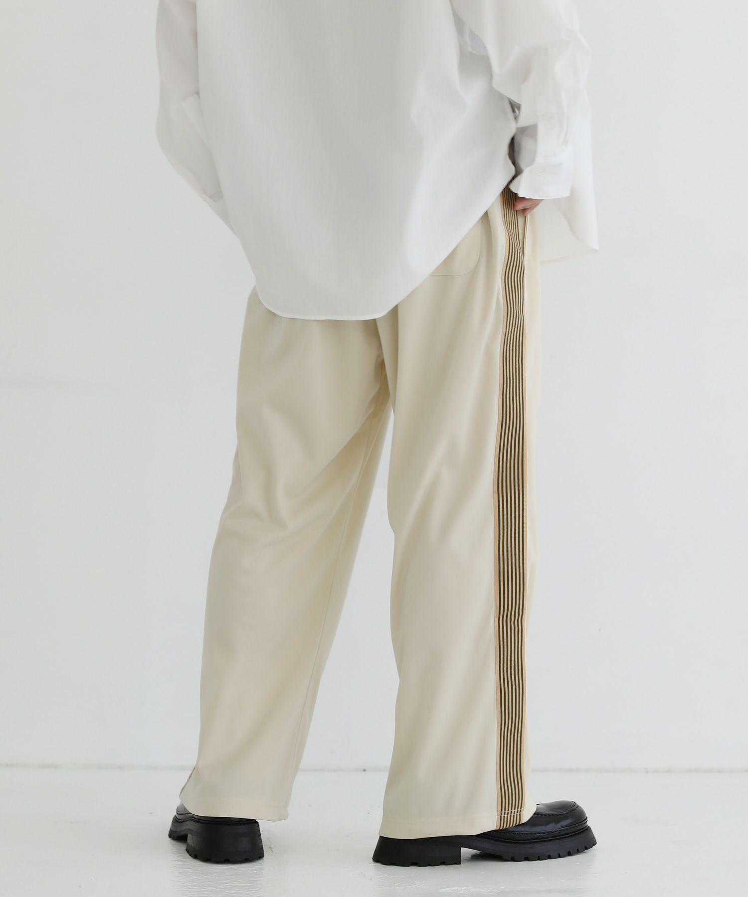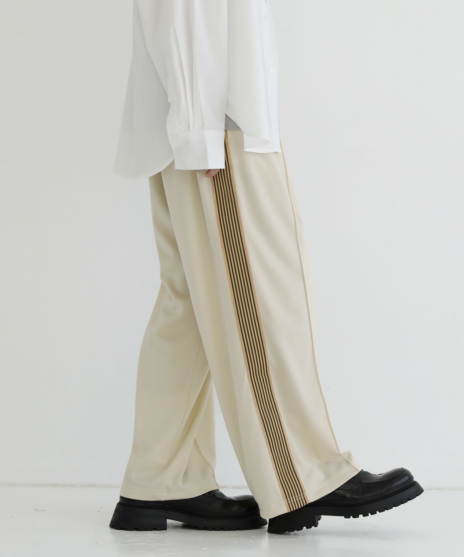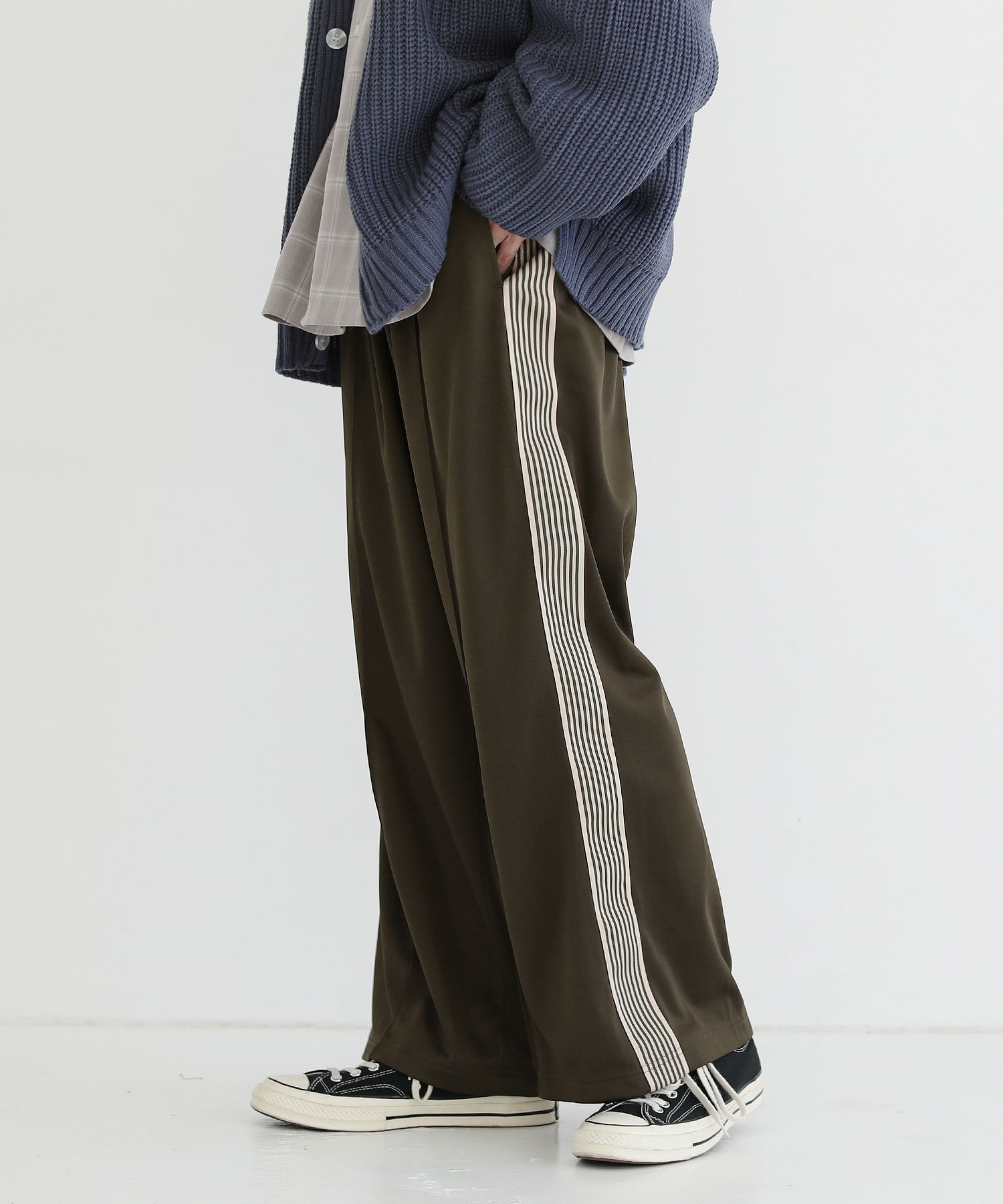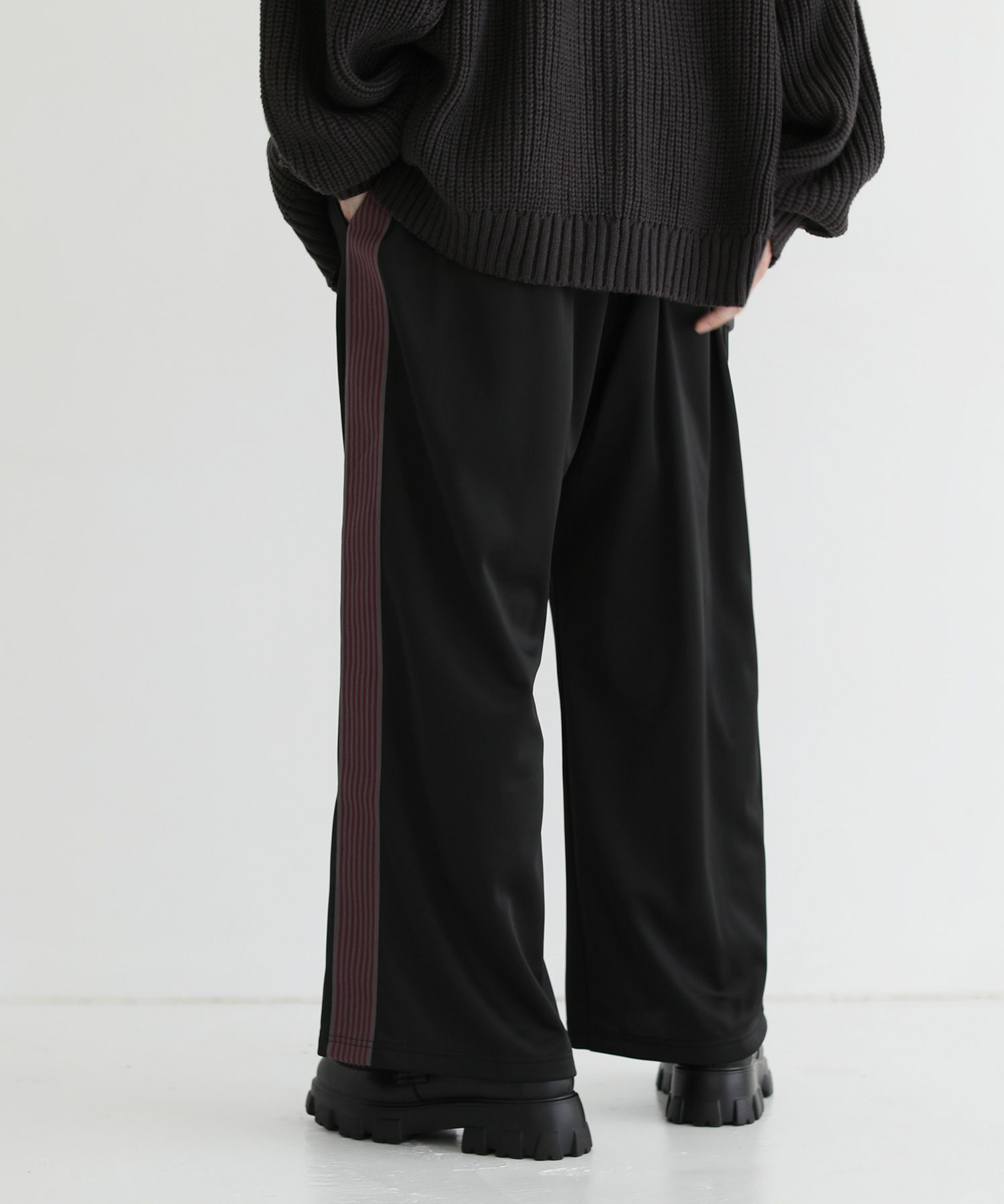 トレンド感のあるワイドシルエットのトラックパンツ。