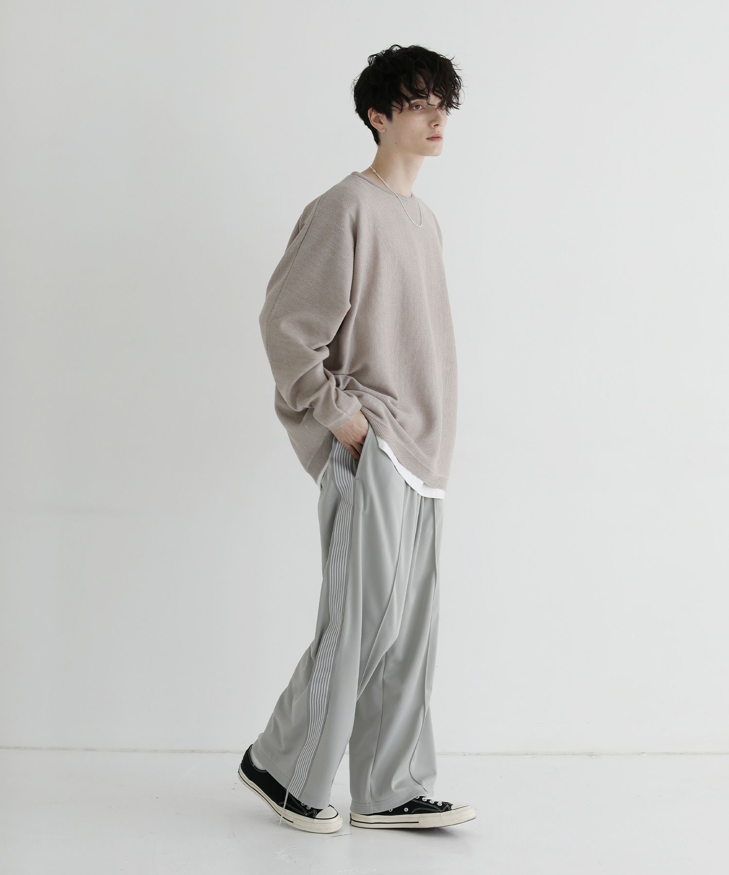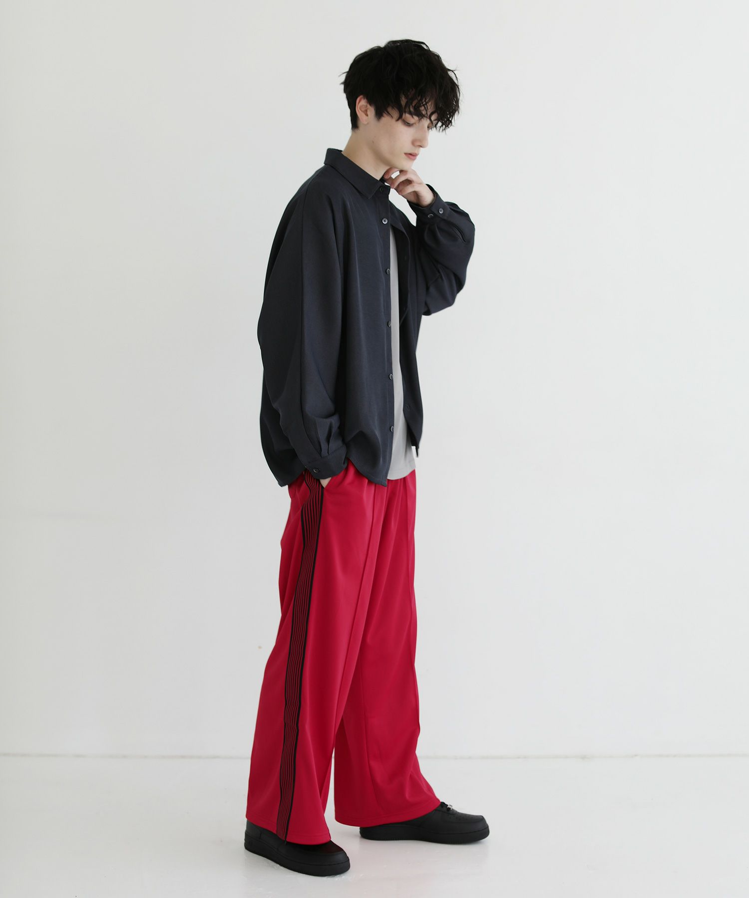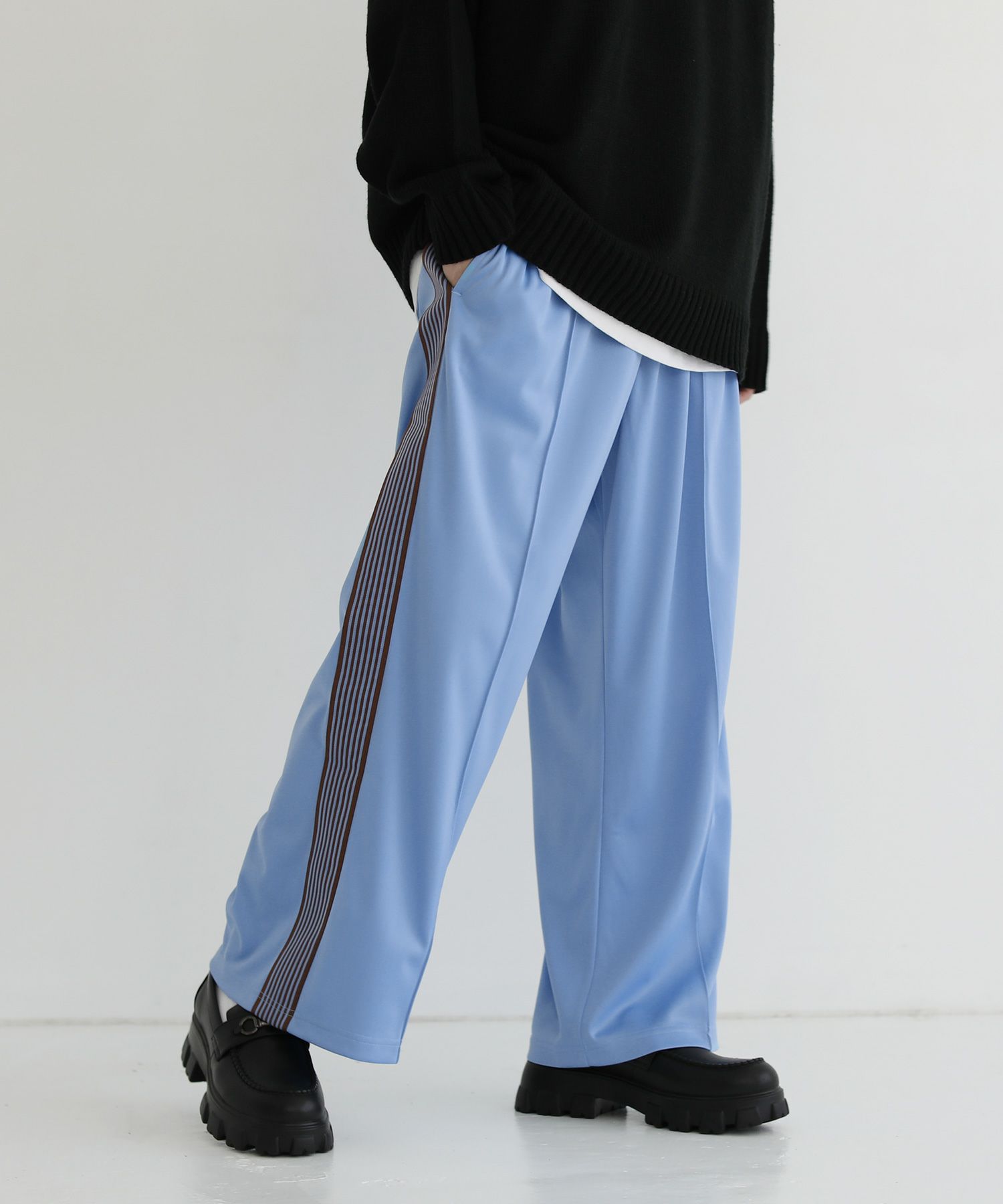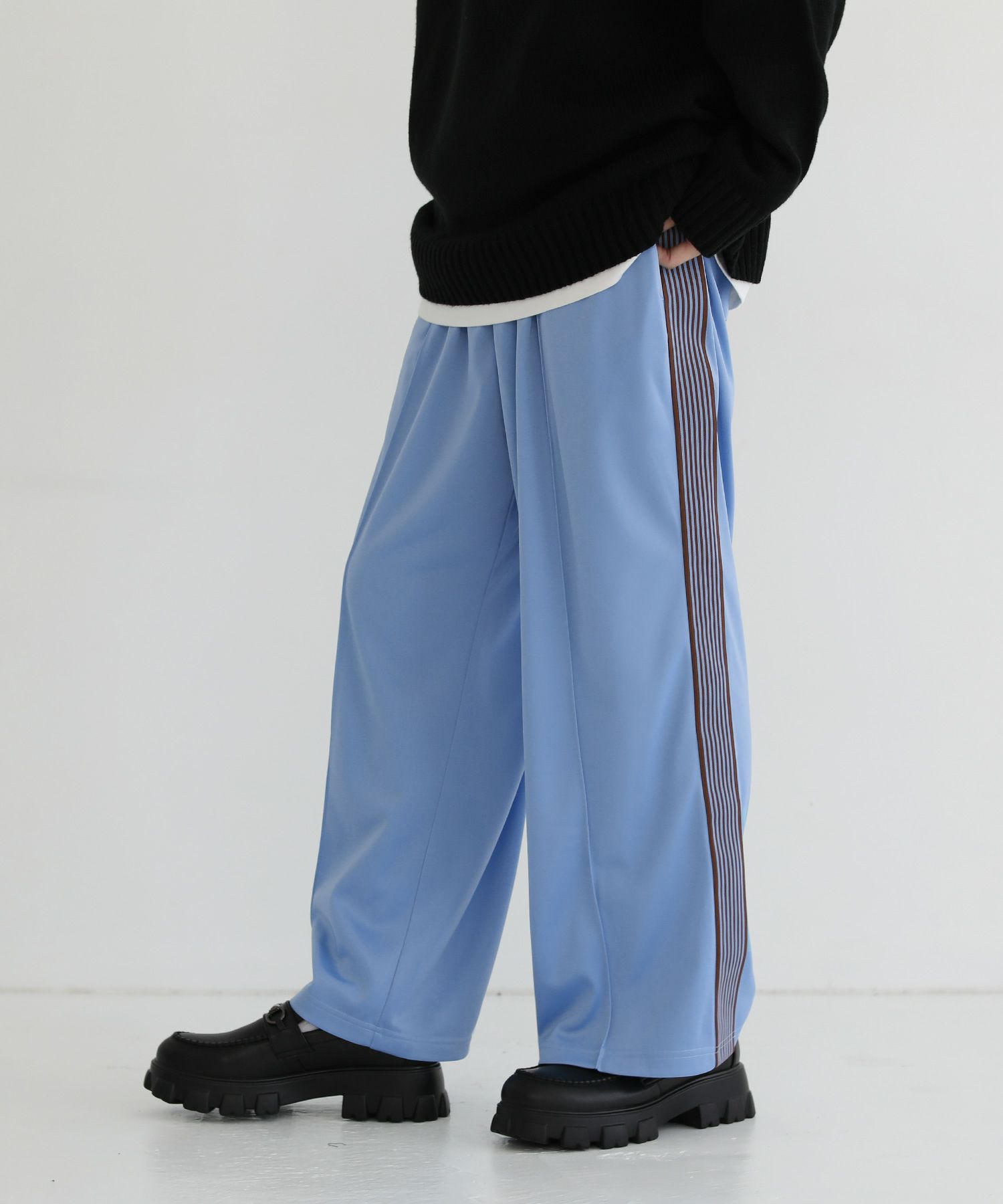 トレンド感のあるワイドシルエットのトラックパンツ。