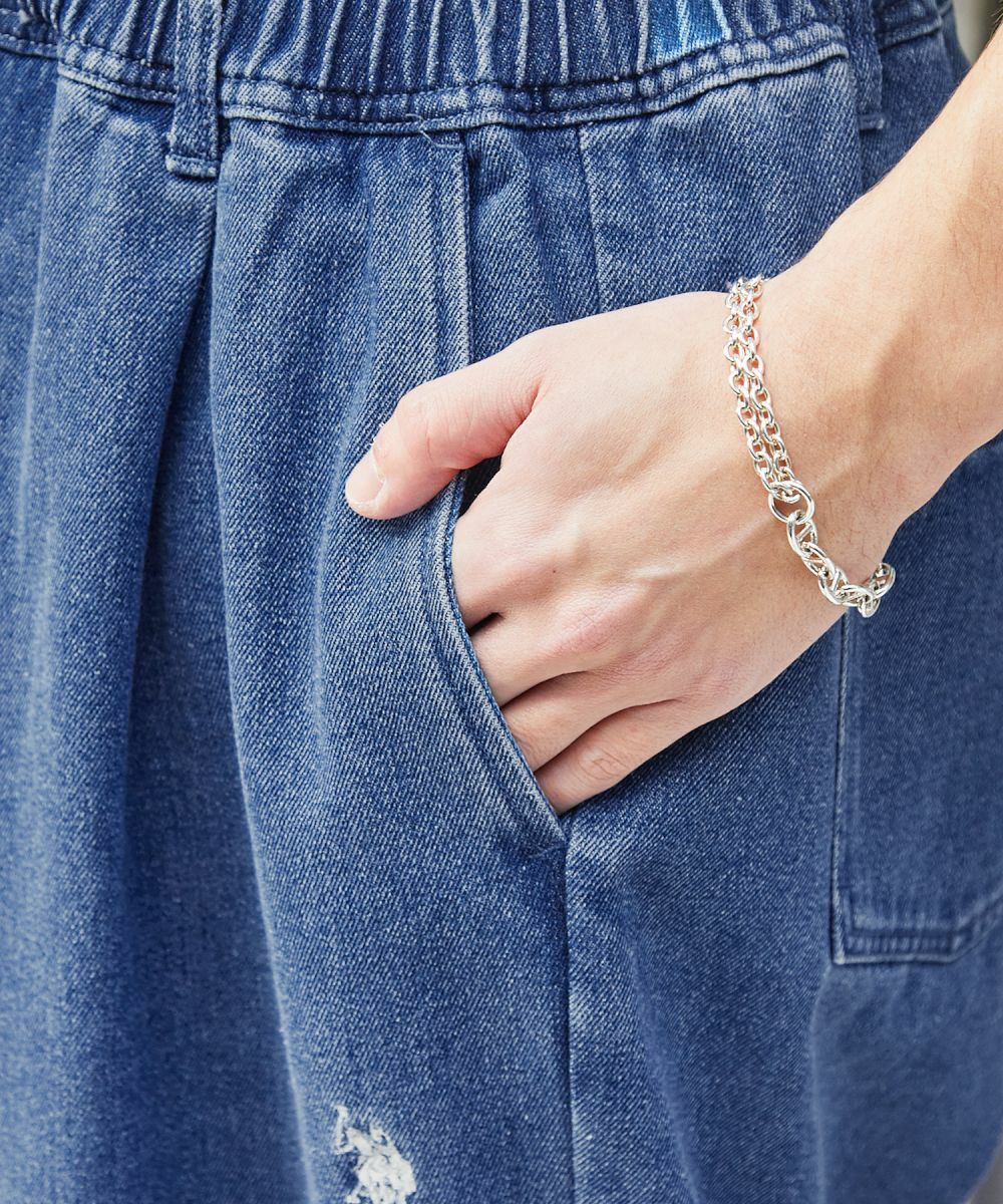 【U.S. POLO ASSN.】からワンポイントのブランドロゴ刺繍がアクセントのシェフパンツが登場。シンプルなデザインでどんな着こなしにも合わせやすいコーディネートの定番アイテムとして使える1本です。丸みのあるバルーンシルエットでゆったりとした穿き心地。ウエストは全周ゴム&紐で調節ができるイージー仕様となっており、ベルト要らずで楽に着用できます。また、ウエスト部分にワンタックを施すことで、立体的なシルエットを実現。カジュアルなトップスとの合わせはもちろん、キレイめなアイテムとのコーディネートにも活躍する汎用性の高いアイテムです。ツイル生地、デニム生地、コーデュロイ生地、シアサッカー生地の4種類の素材からお選びいただけます。