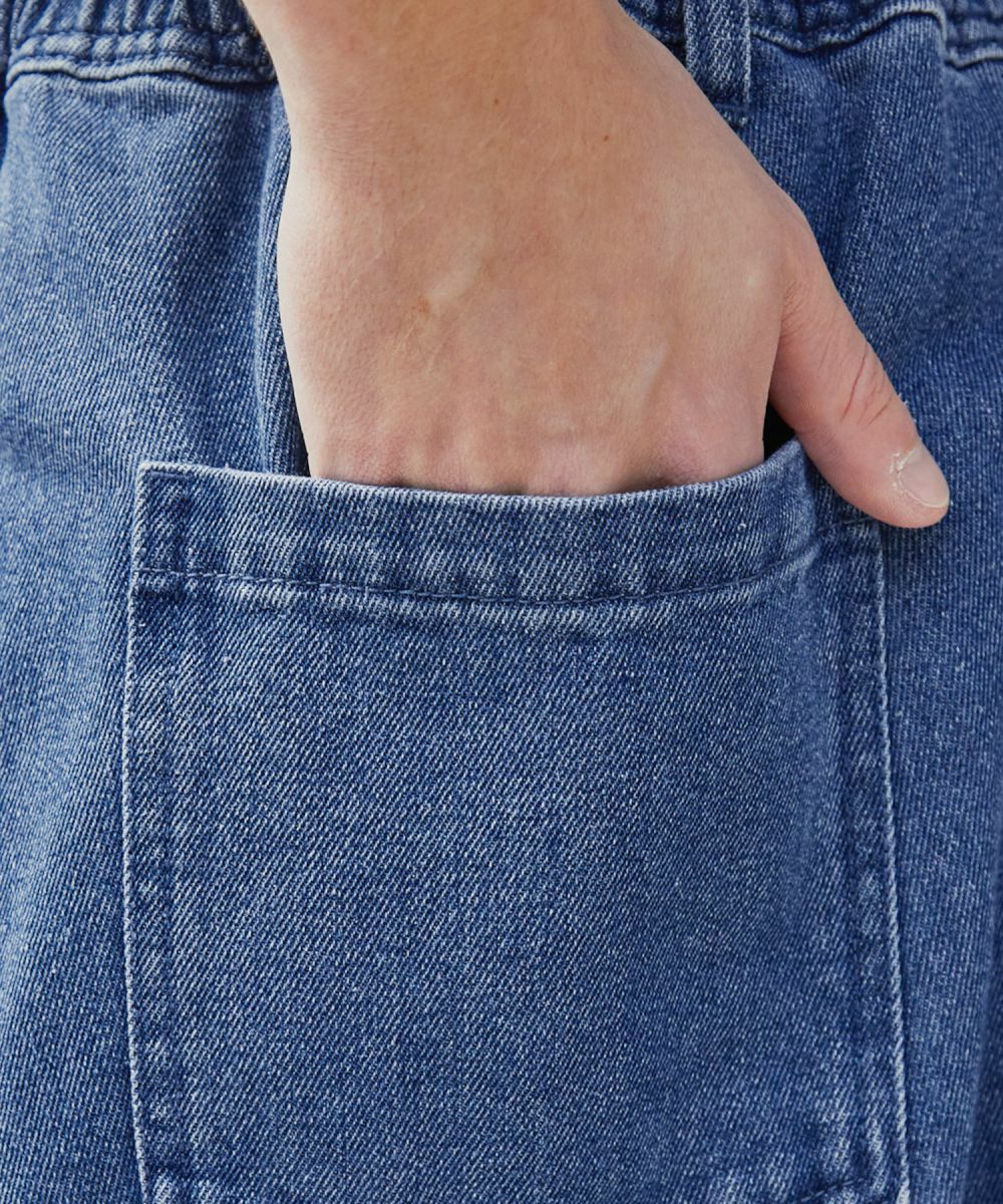 デニム生地:綿混の柔らかなデニム地を使用。適度な厚みでロングシーズン着用可能です。